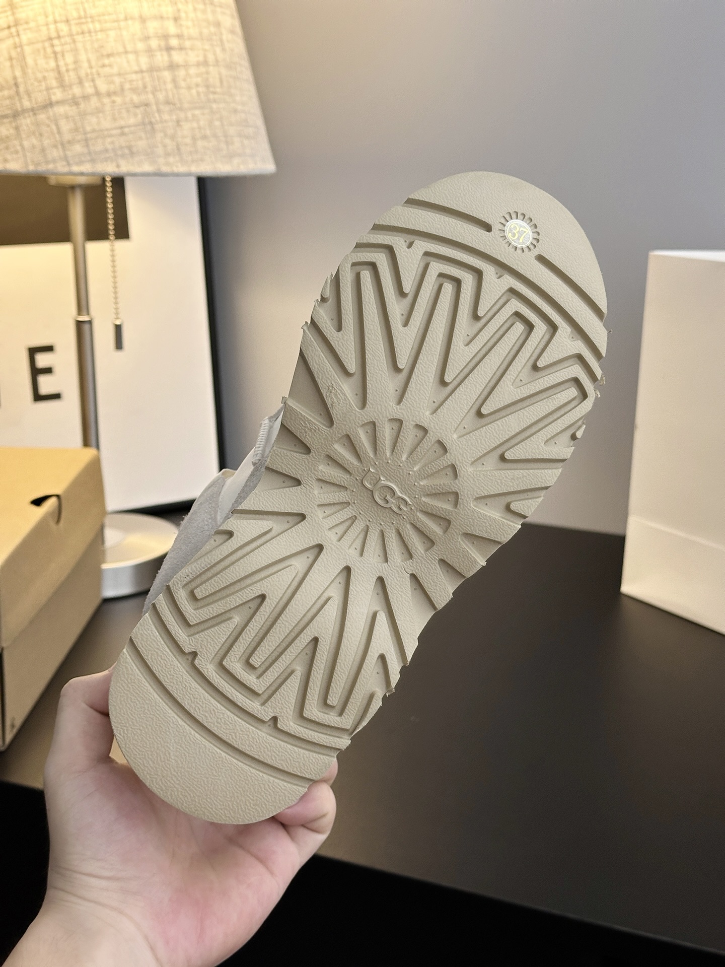 这款鞋子是AAAAA 1:1 质量 (非常棒). 使用了和原版一模一样的材料. 商标部分也保持了和UGG雪地靴一样. 图片拍摄是实物鞋子拍摄, 您所收到的实物保证和我们图片一模一样.