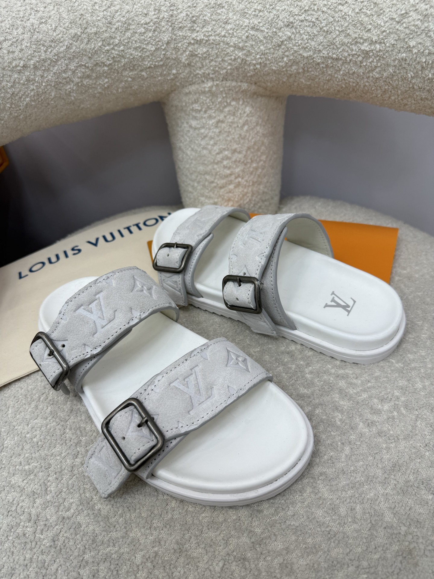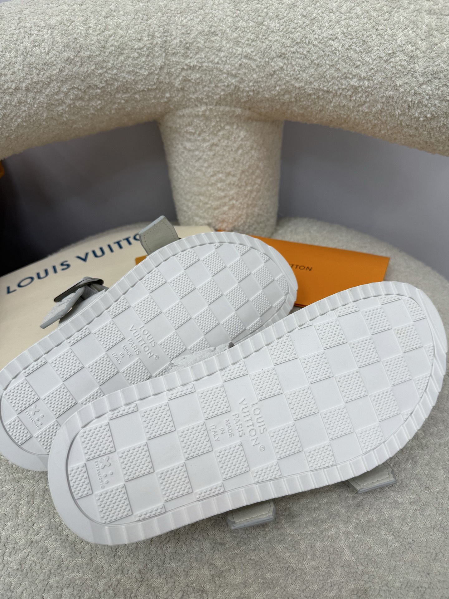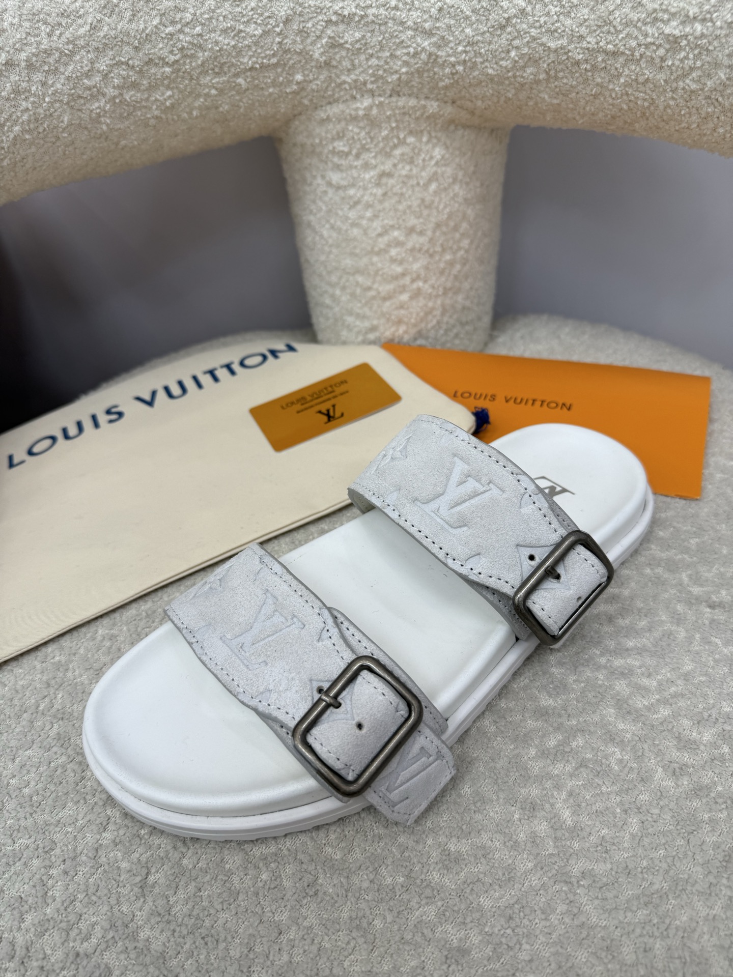 这款鞋子是AAAAA 1:1 质量 (非常棒). 使用了和原版一模一样的材料. 商标部分也保持了和路易威登/Louis Vuitton一样. 图片拍摄是实物鞋子拍摄, 您所收到的实物保证和我们图片一模一样.