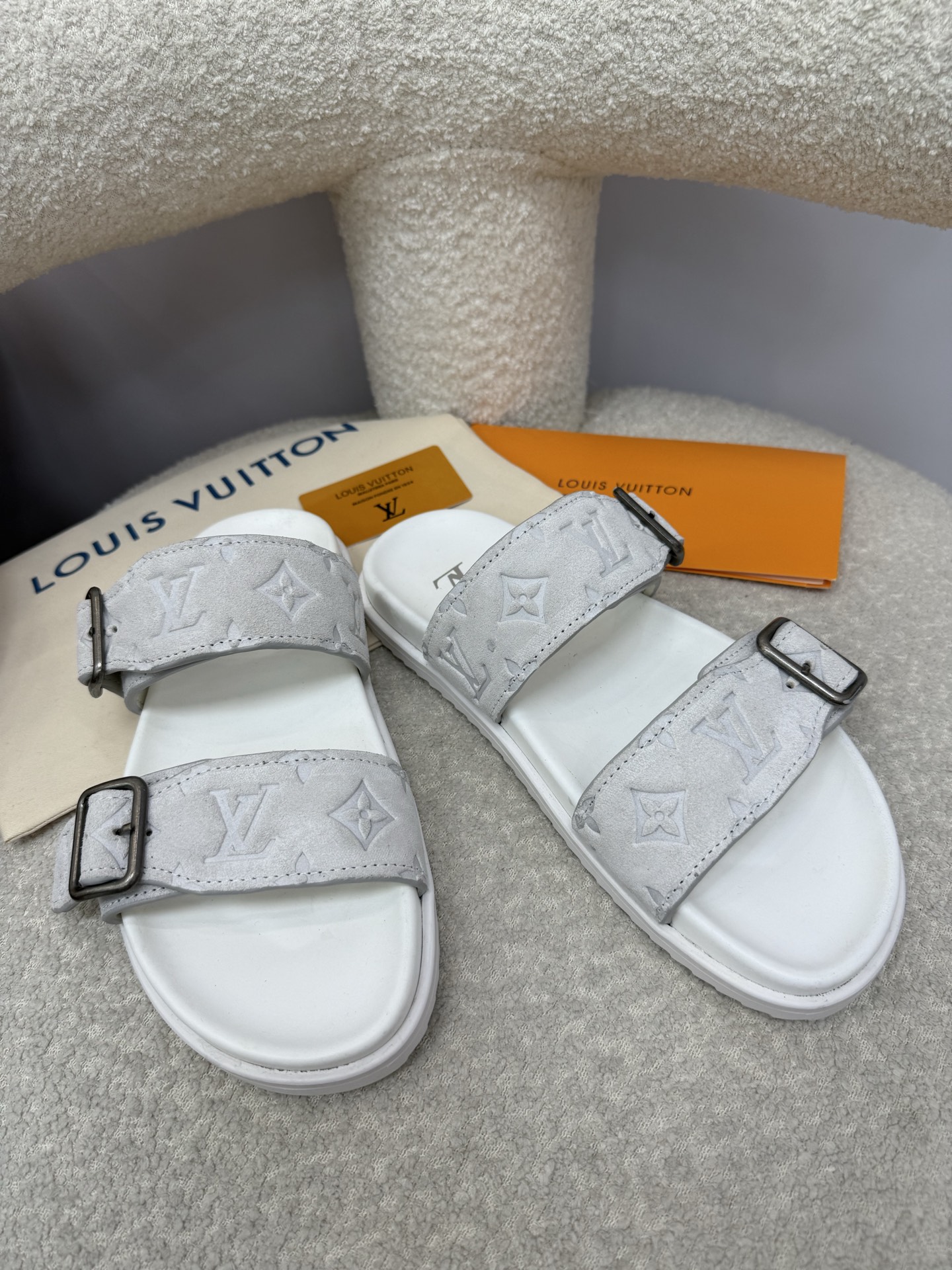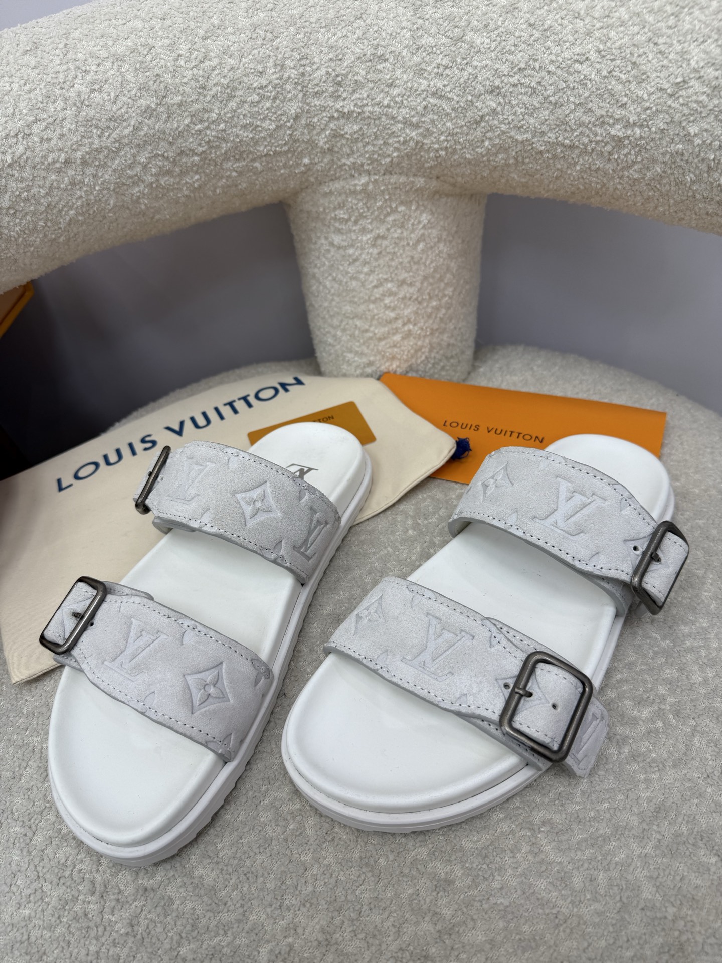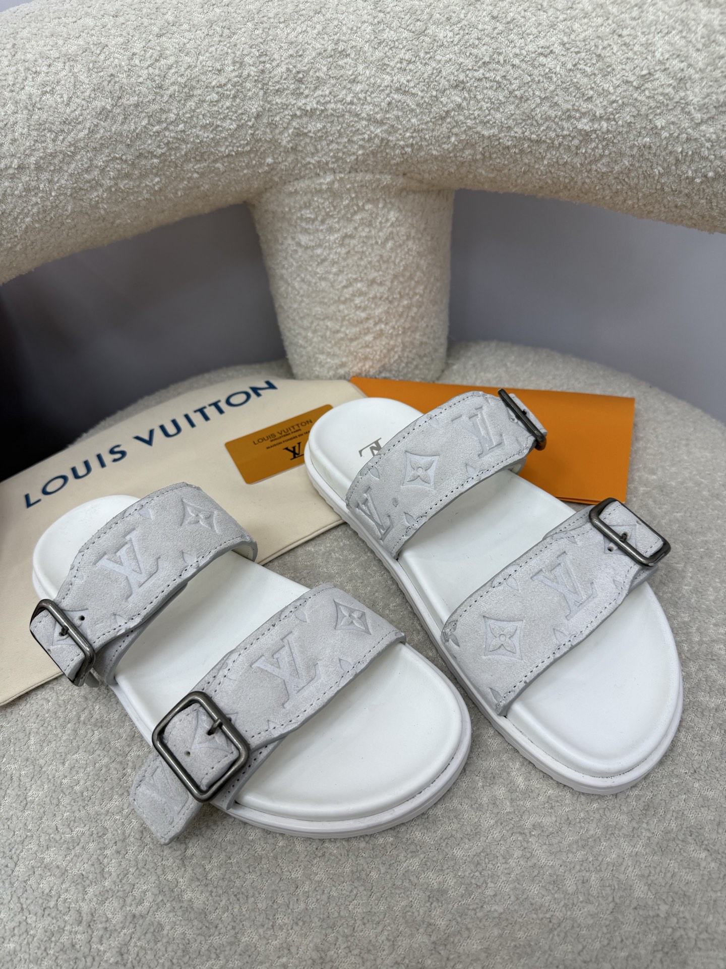 这款鞋子是AAAAA 1:1 质量 (非常棒). 使用了和原版一模一样的材料. 商标部分也保持了和路易威登/Louis Vuitton一样. 图片拍摄是实物鞋子拍摄, 您所收到的实物保证和我们图片一模一样.
