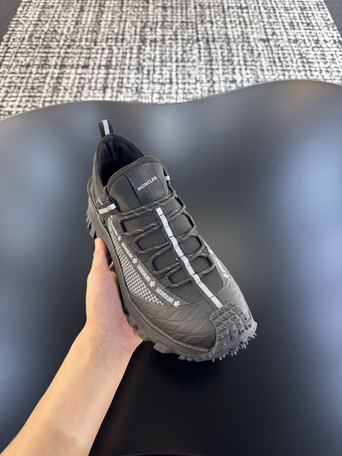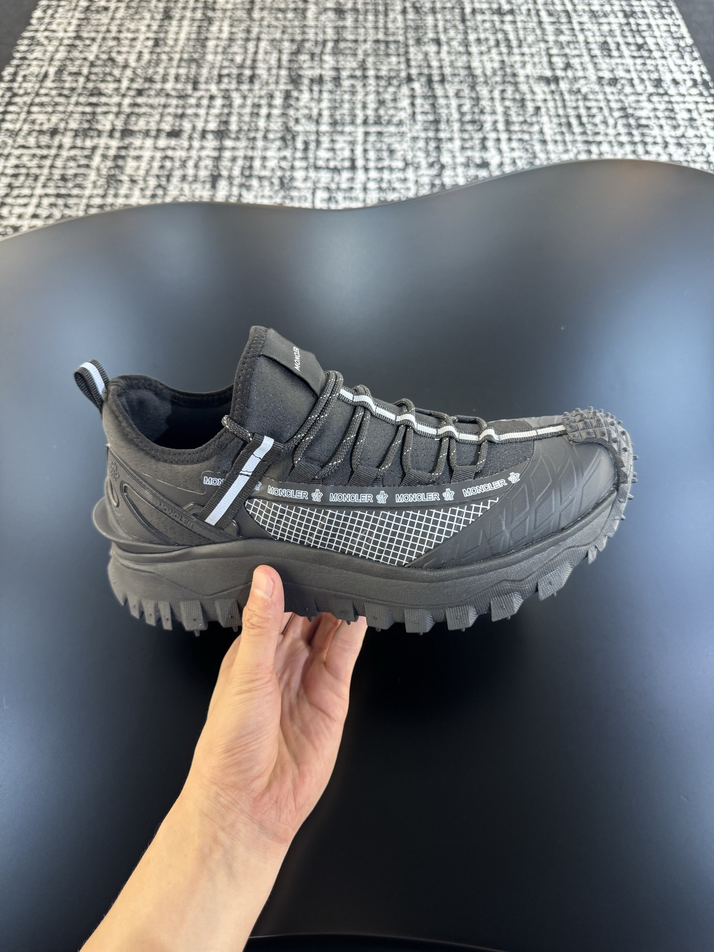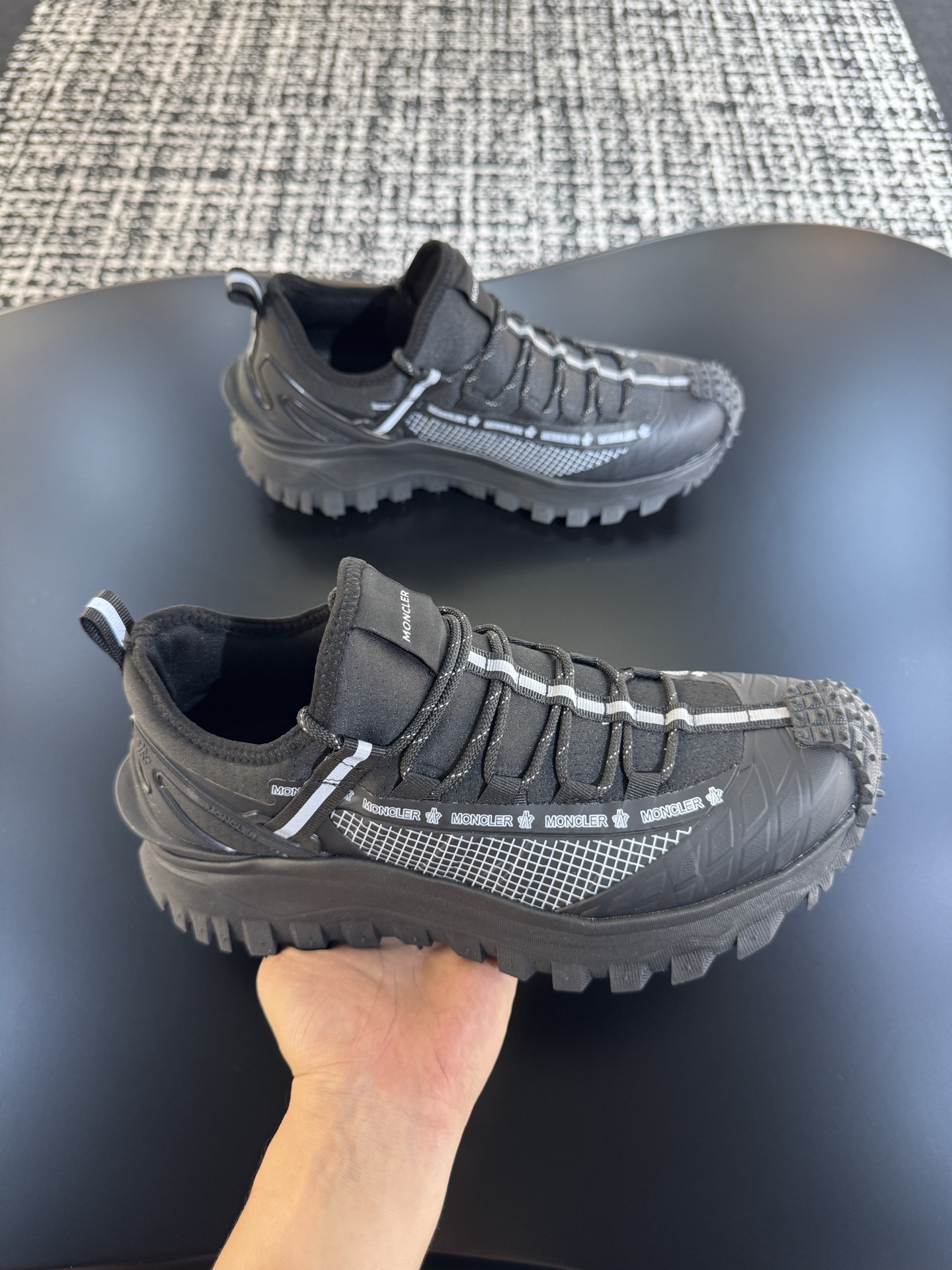 这款鞋子是AAAAA 1:1 质量 (非常棒). 使用了和原版一模一样的材料. 商标部分也保持了和盟可睐/moncler一样. 图片拍摄是实物鞋子拍摄, 您所收到的实物保证和我们图片一模一样.