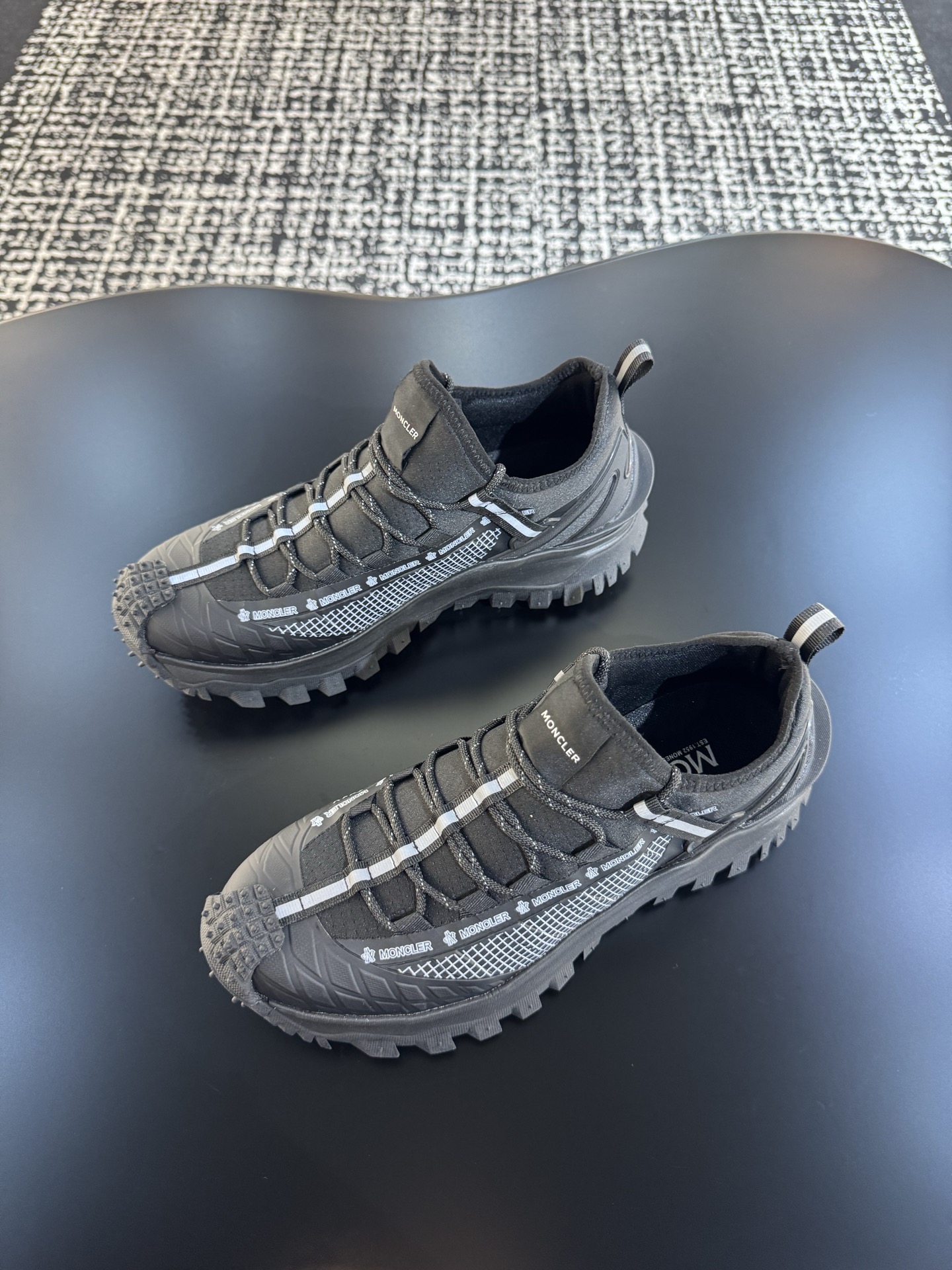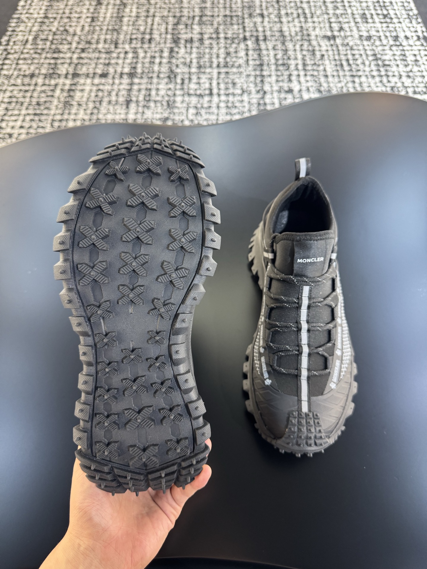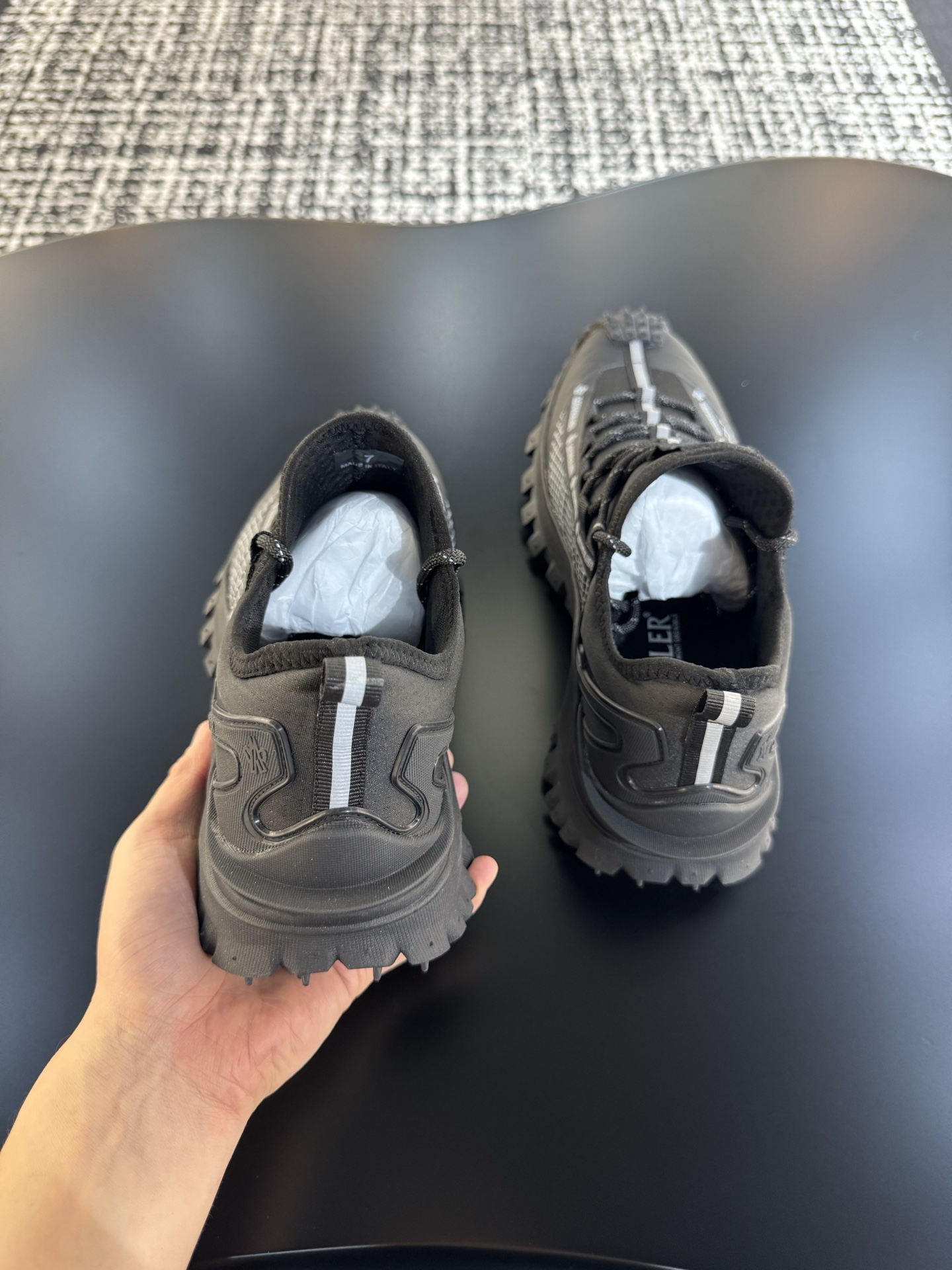 这款鞋子是AAAAA 1:1 质量 (非常棒). 使用了和原版一模一样的材料. 商标部分也保持了和盟可睐/moncler一样. 图片拍摄是实物鞋子拍摄, 您所收到的实物保证和我们图片一模一样.