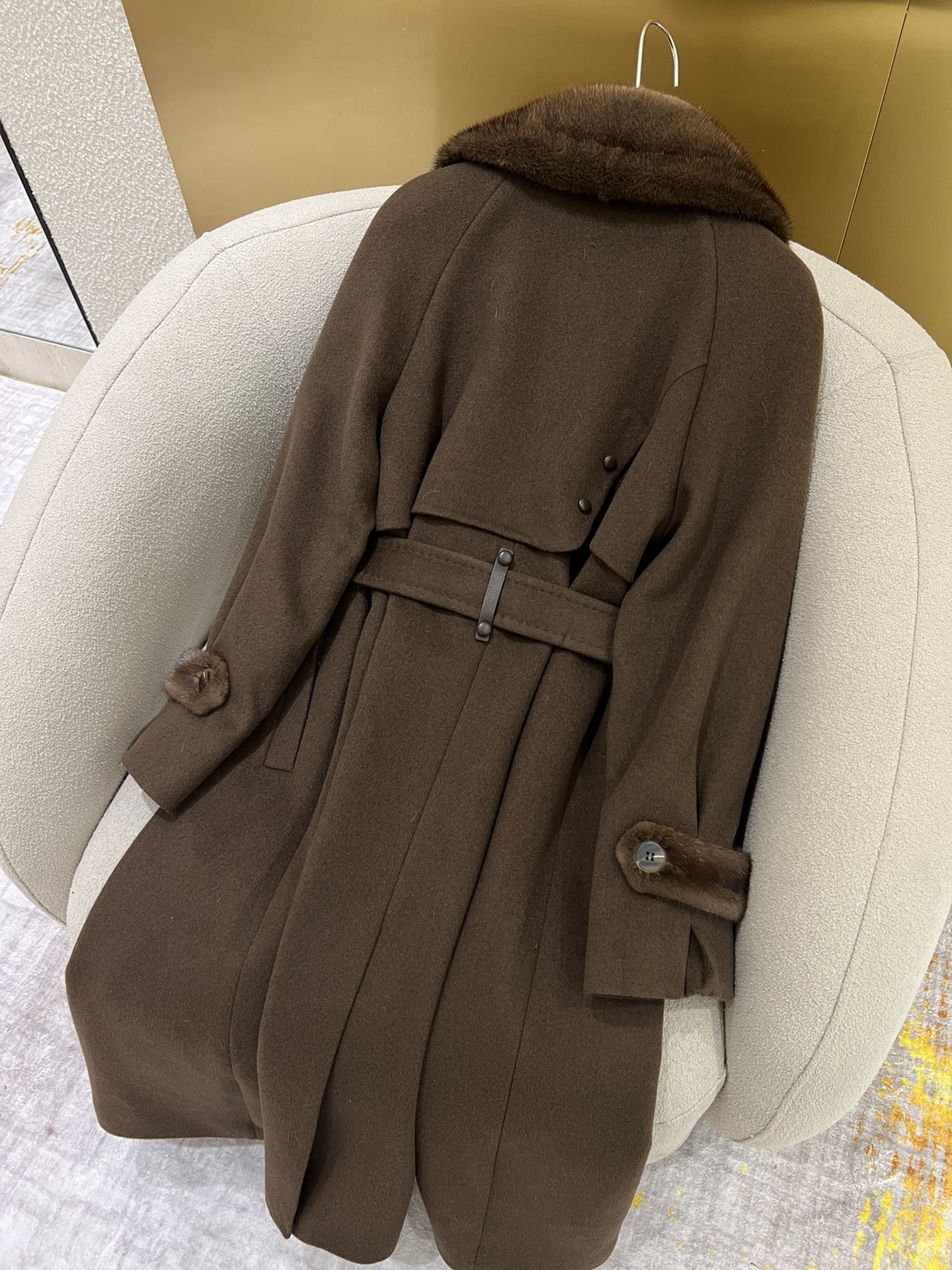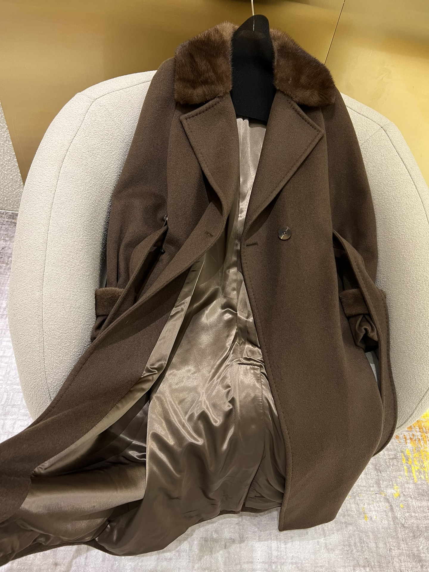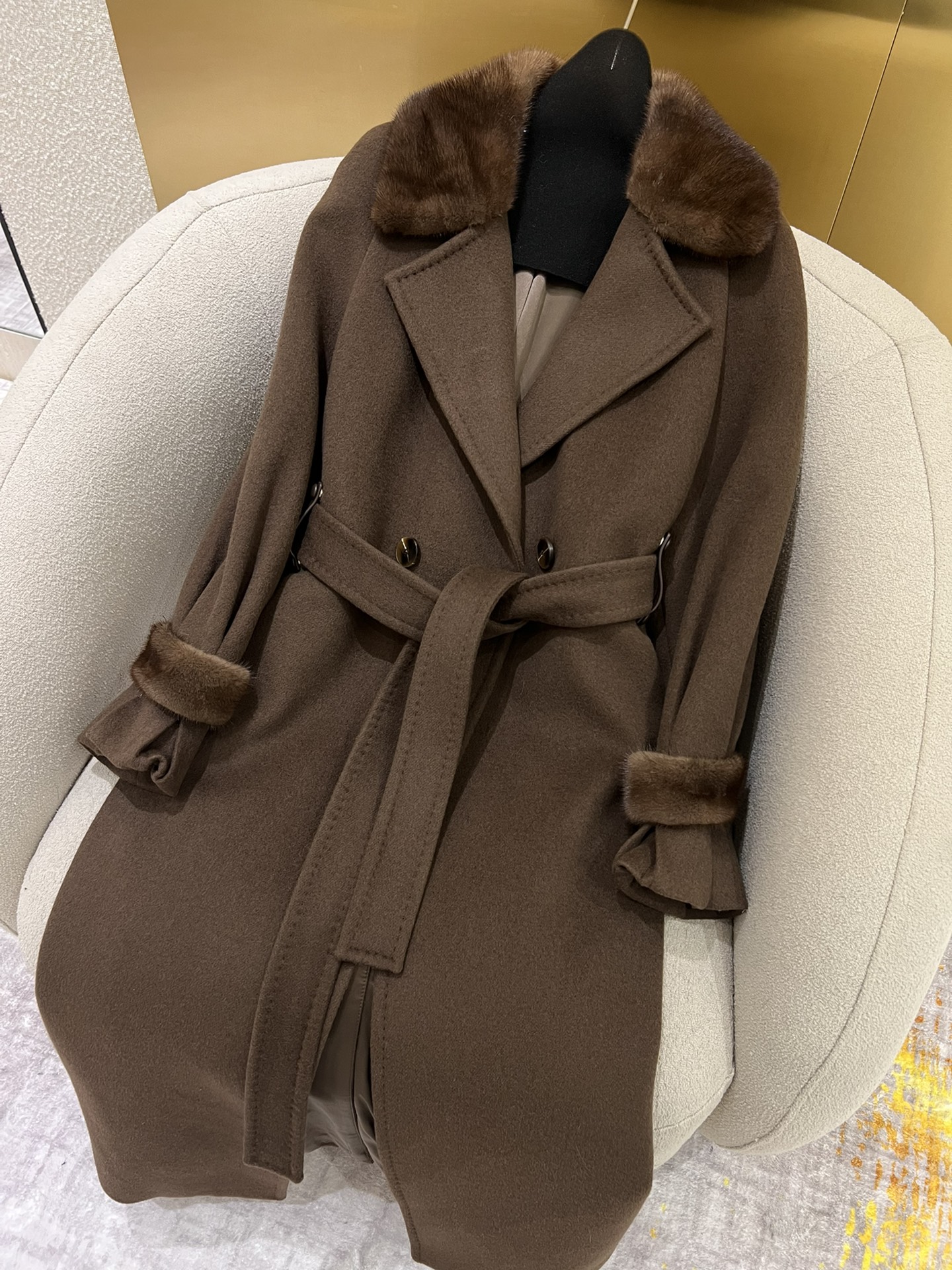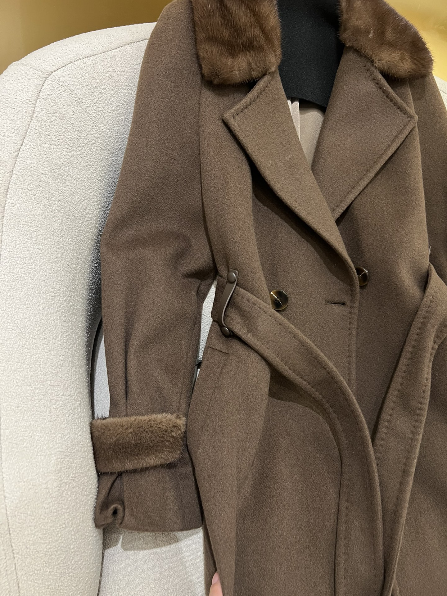 这款衣服是AAAAA 1:1 质量 (非常棒). 使用了和原版一模一样的材料. 商标部分也保持了和Max Mara一样. 图片拍摄是实物衣服拍摄, 您所收到的实物保证和我们图片一模一样.
