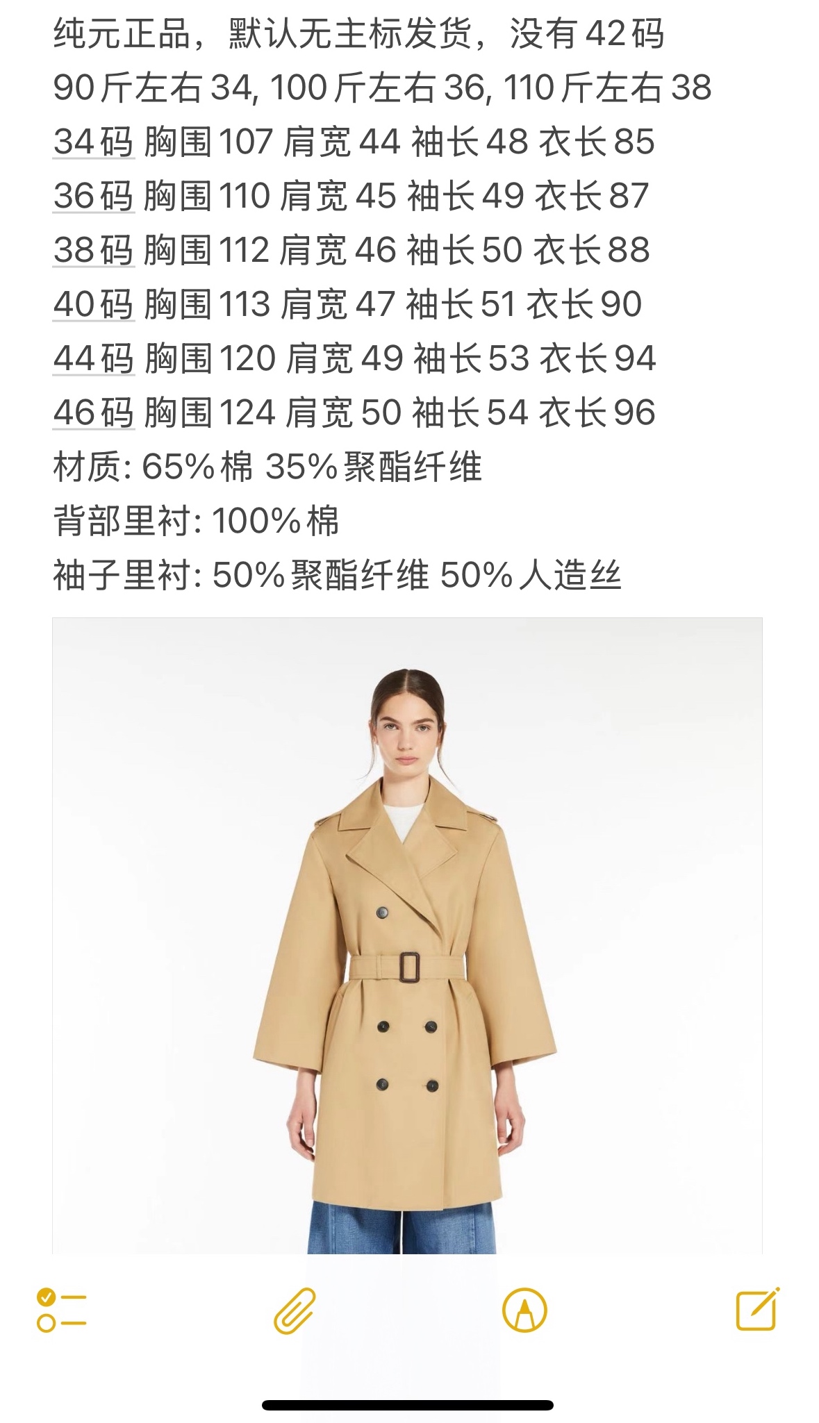 这款衣服是AAAAA 1:1 质量 (非常棒). 使用了和原版一模一样的材料. 商标部分也保持了和Max Mara一样. 图片拍摄是实物衣服拍摄, 您所收到的实物保证和我们图片一模一样.