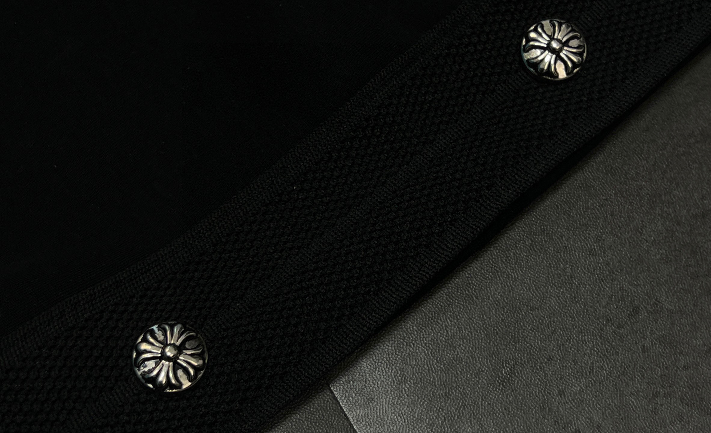 这款衣服是AAAAA 1:1 质量 (非常棒). 使用了和原版一模一样的材料. 商标部分也保持了和克罗心/Chrome Hearts一样. 图片拍摄是实物衣服拍摄, 您所收到的实物保证和我们图片一模一样.