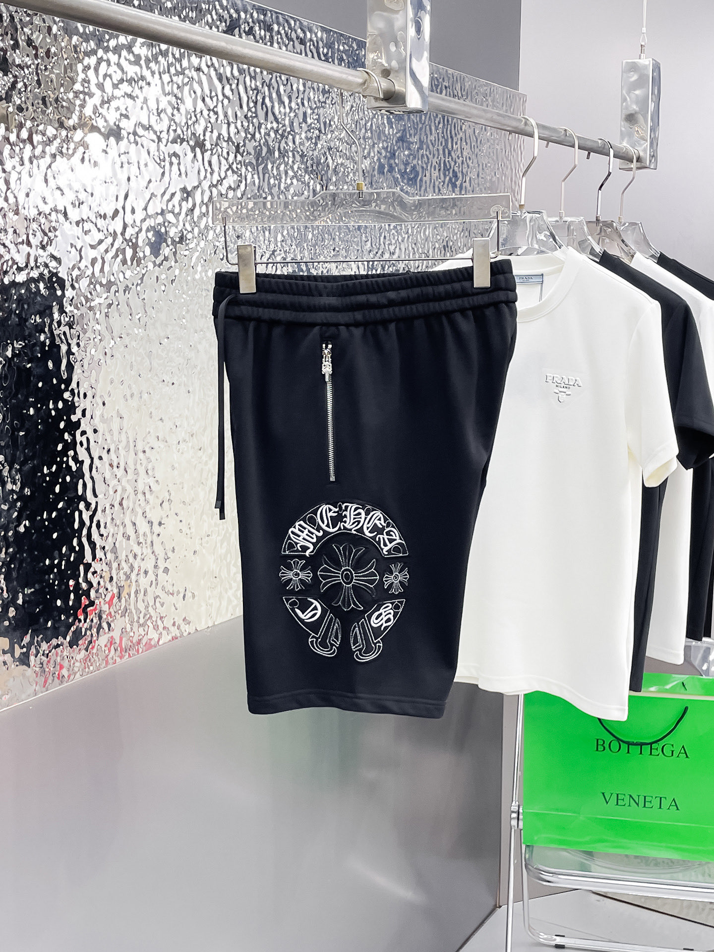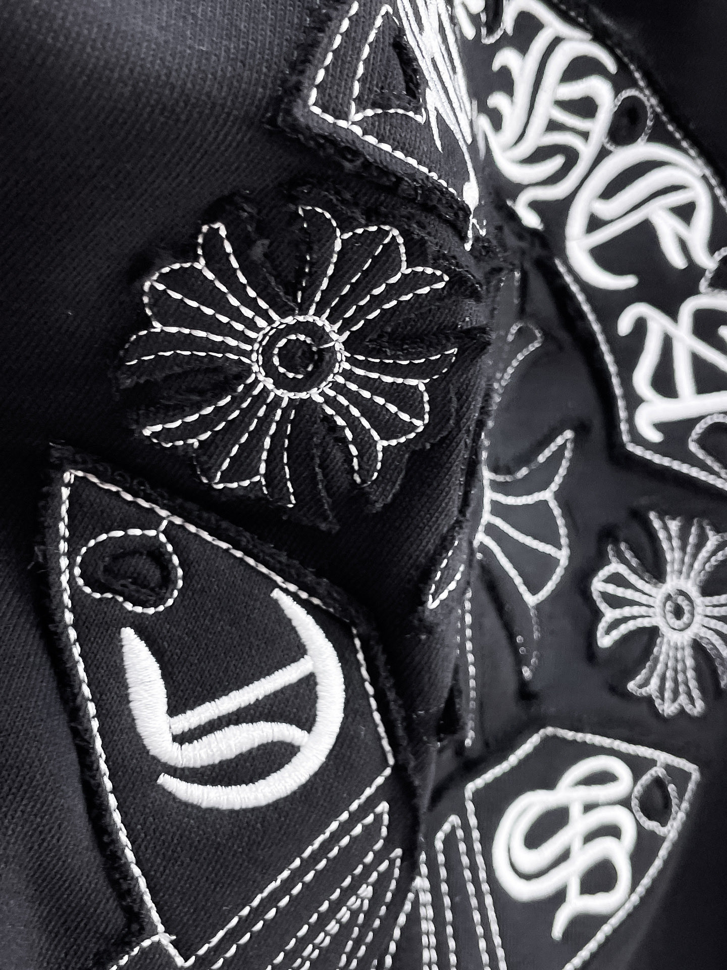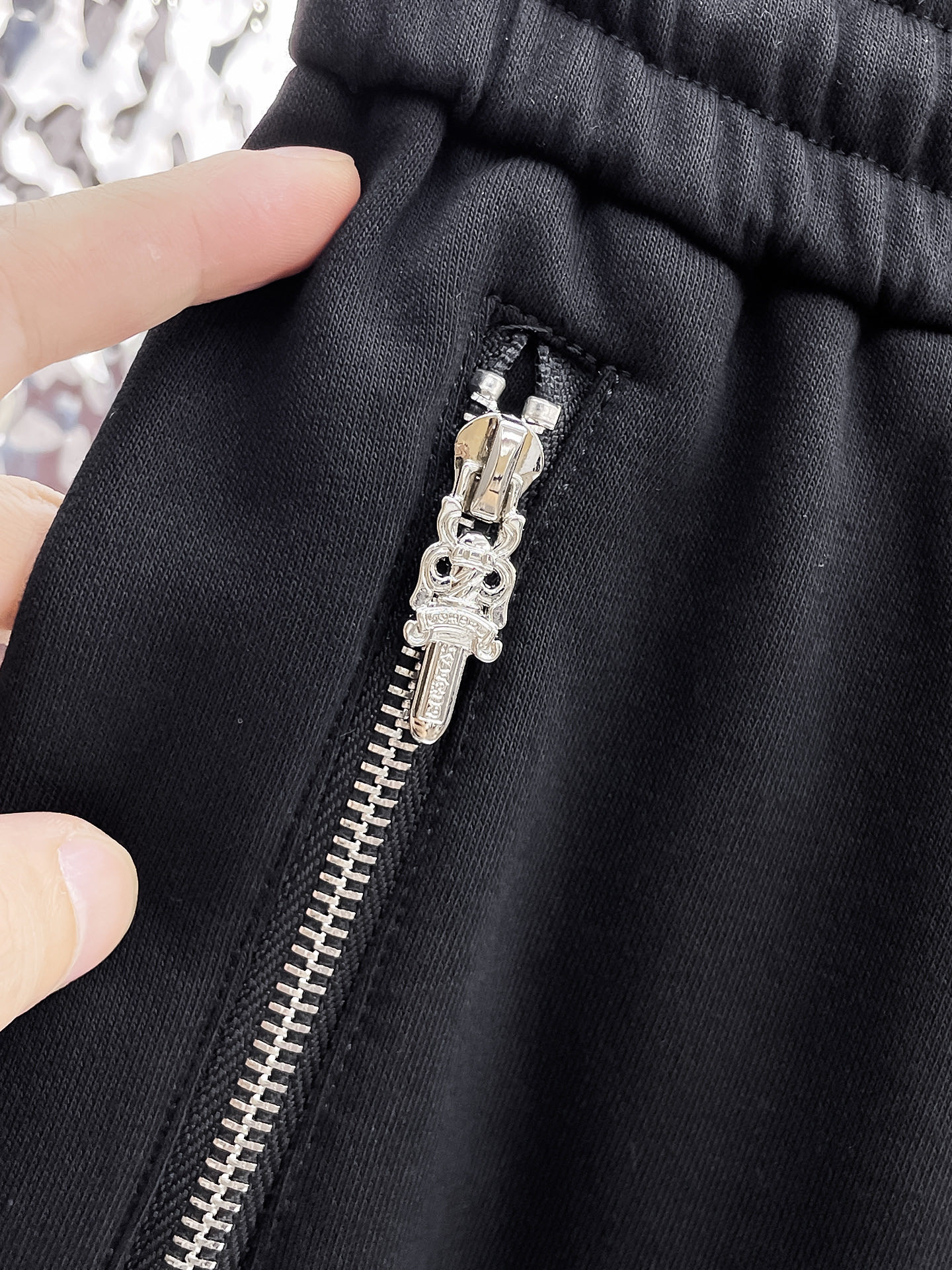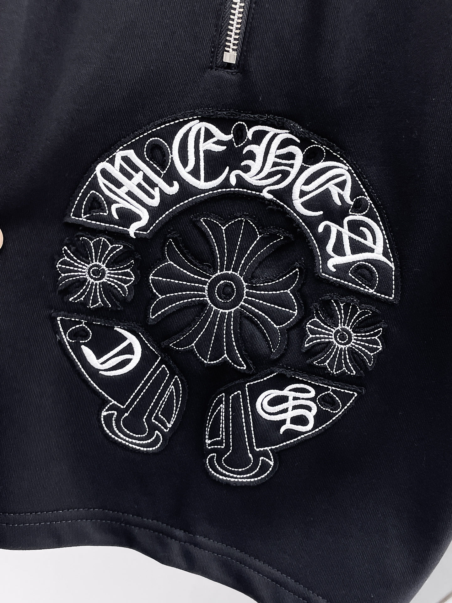 这款衣服是AAAAA 1:1 质量 (非常棒). 使用了和原版一模一样的材料. 商标部分也保持了和克罗心/Chrome Hearts一样. 图片拍摄是实物衣服拍摄, 您所收到的实物保证和我们图片一模一样.