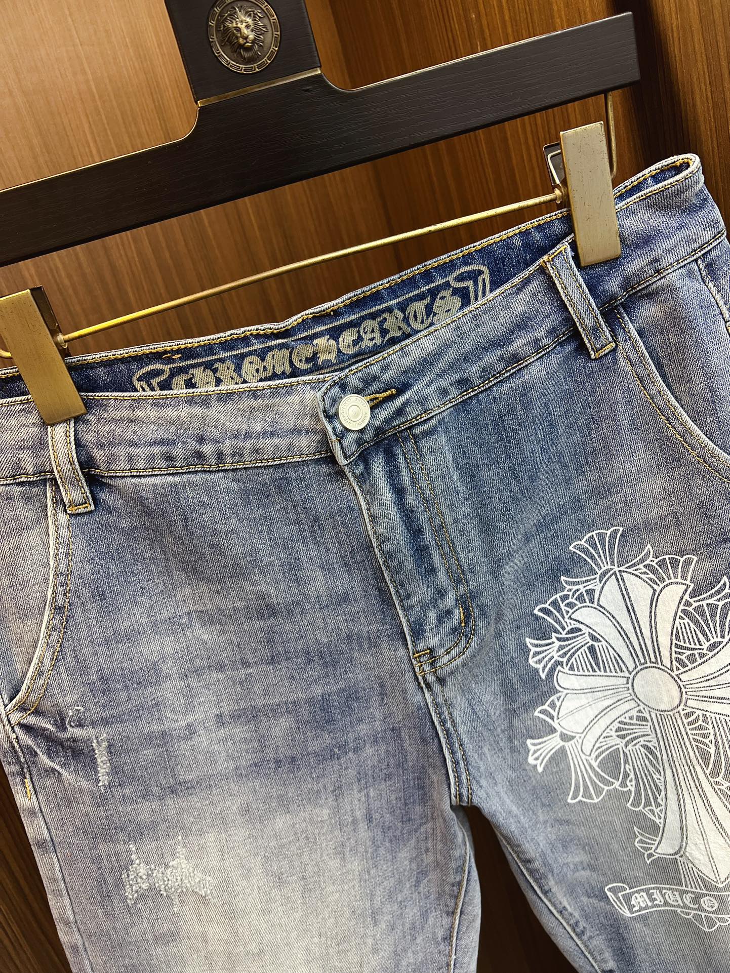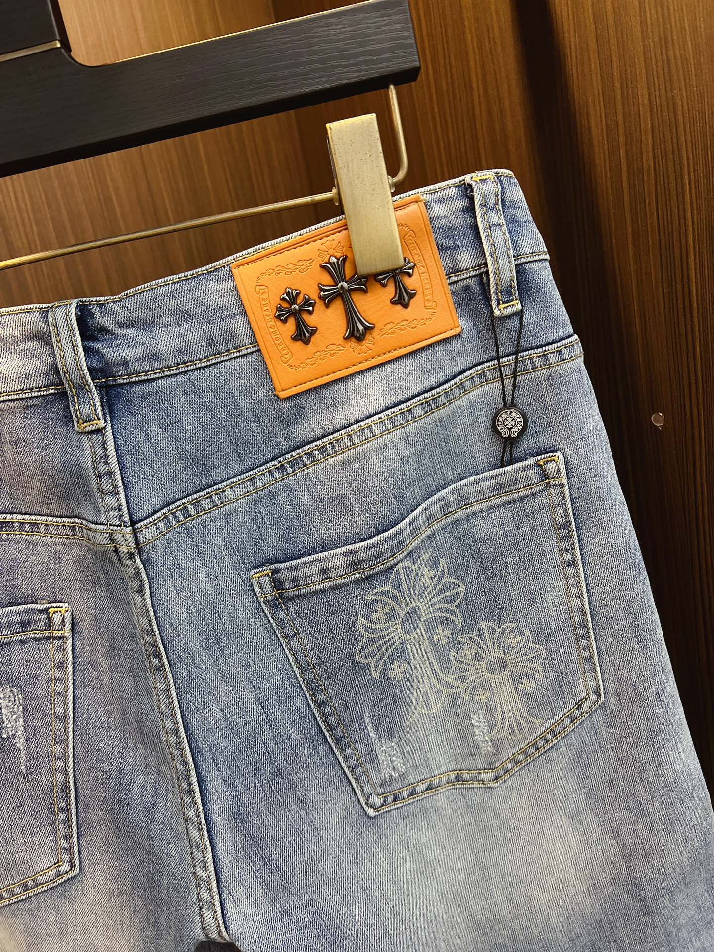 这款衣服是AAAAA 1:1 质量 (非常棒). 使用了和原版一模一样的材料. 商标部分也保持了和克罗心/Chrome Hearts一样. 图片拍摄是实物衣服拍摄, 您所收到的实物保证和我们图片一模一样.
