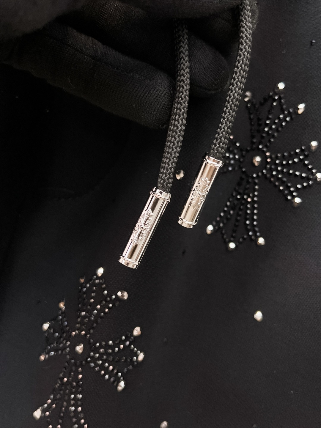 这款衣服是AAAAA 1:1 质量 (非常棒). 使用了和原版一模一样的材料. 商标部分也保持了和克罗心/Chrome Hearts一样. 图片拍摄是实物衣服拍摄, 您所收到的实物保证和我们图片一模一样.
