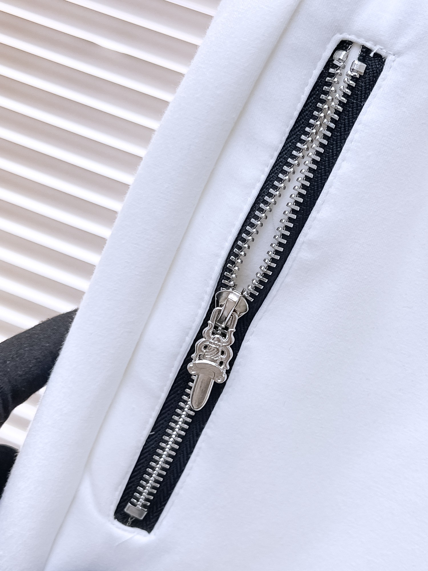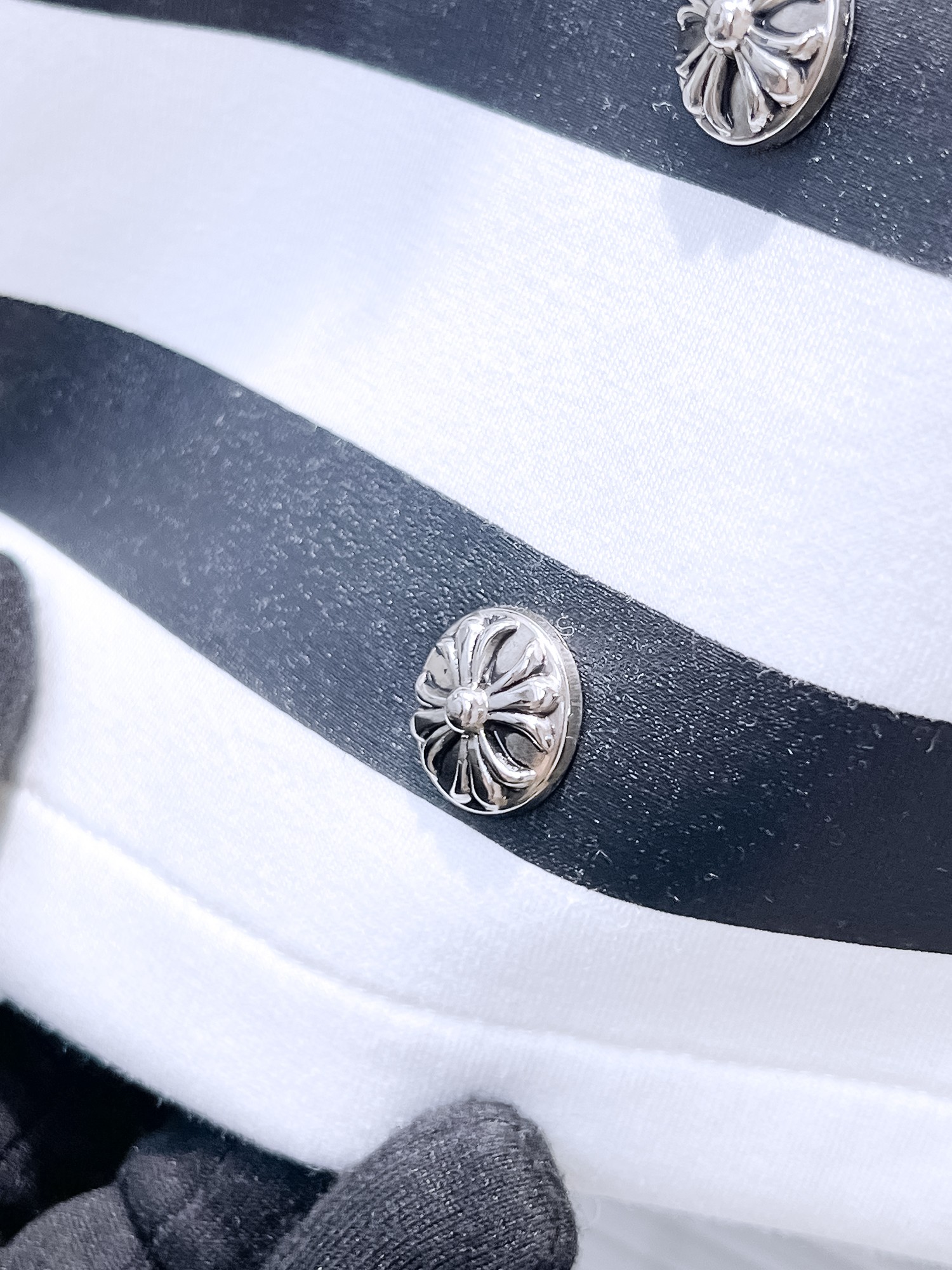 这款衣服是AAAAA 1:1 质量 (非常棒). 使用了和原版一模一样的材料. 商标部分也保持了和克罗心/Chrome Hearts一样. 图片拍摄是实物衣服拍摄, 您所收到的实物保证和我们图片一模一样.