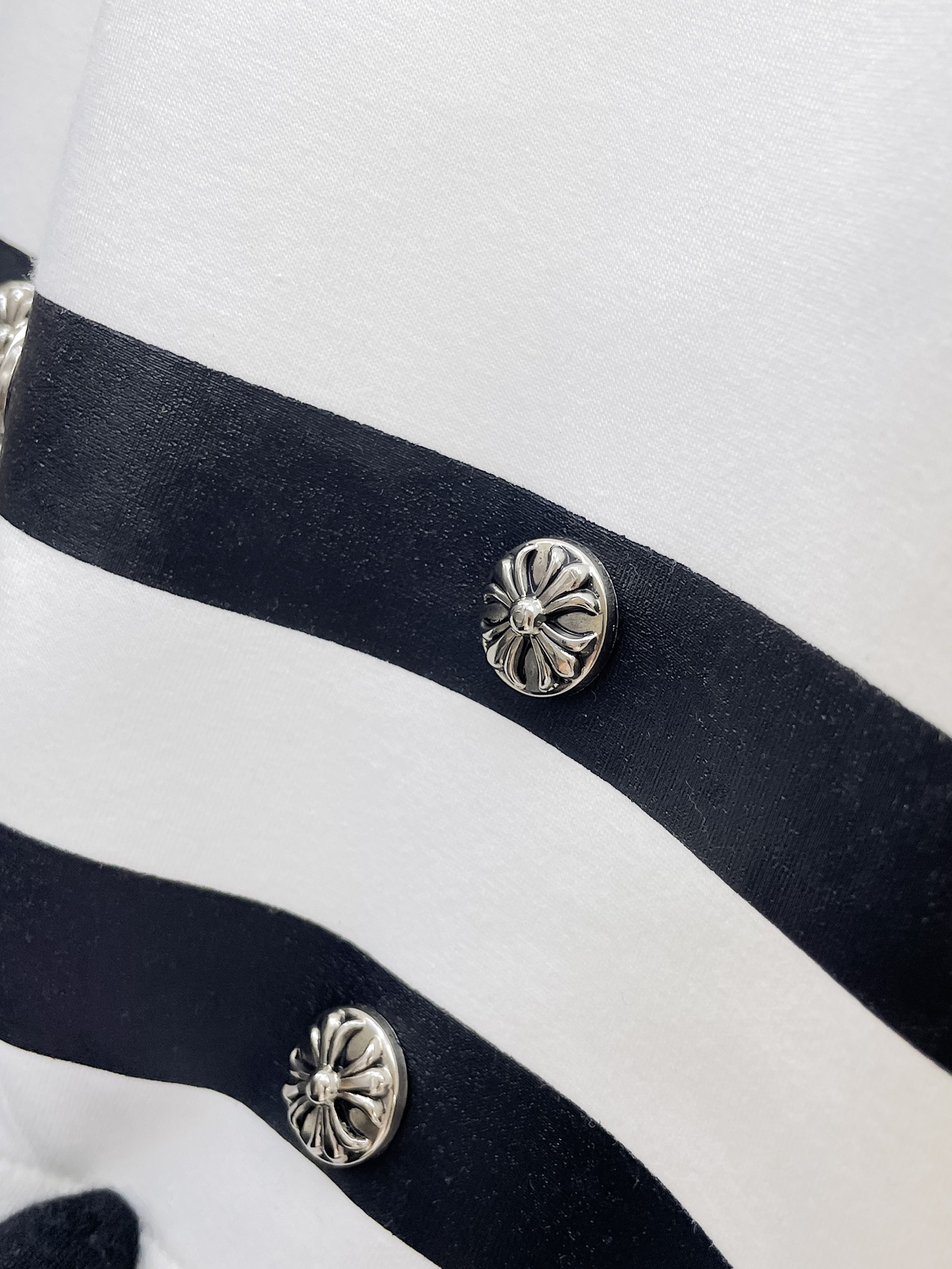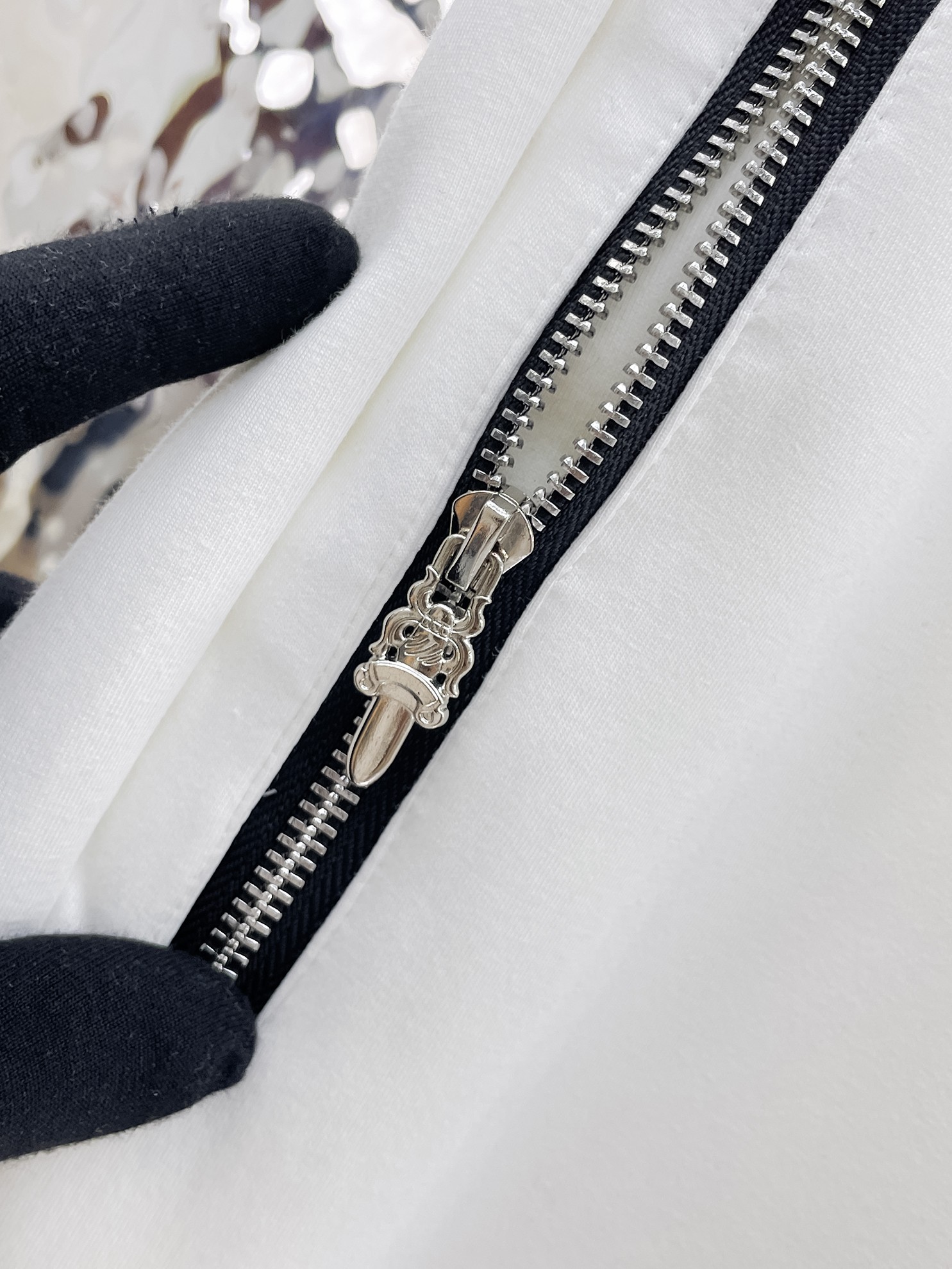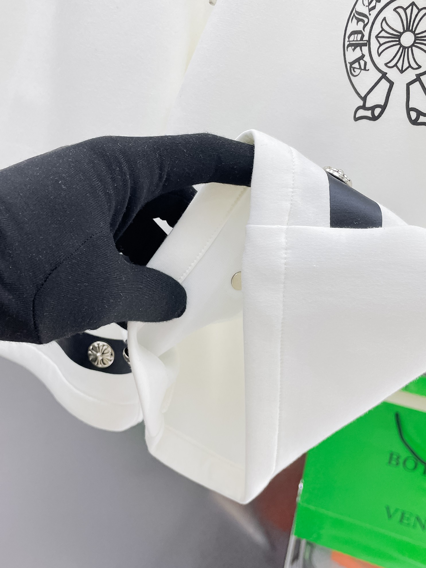 这款衣服是AAAAA 1:1 质量 (非常棒). 使用了和原版一模一样的材料. 商标部分也保持了和克罗心/Chrome Hearts一样. 图片拍摄是实物衣服拍摄, 您所收到的实物保证和我们图片一模一样.