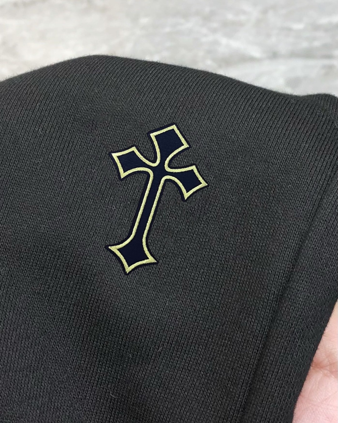 这款衣服是AAAAA 1:1 质量 (非常棒). 使用了和原版一模一样的材料. 商标部分也保持了和克罗心/Chrome Hearts一样. 图片拍摄是实物衣服拍摄, 您所收到的实物保证和我们图片一模一样.