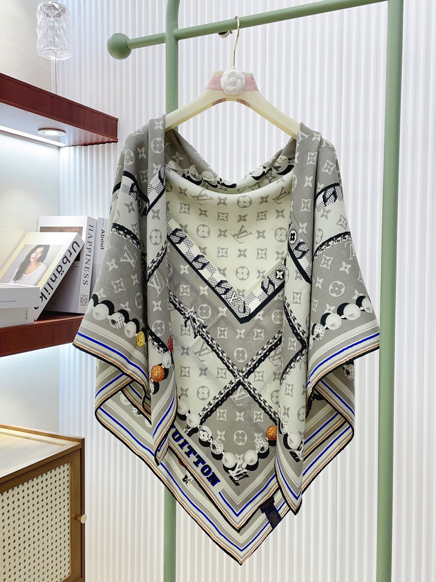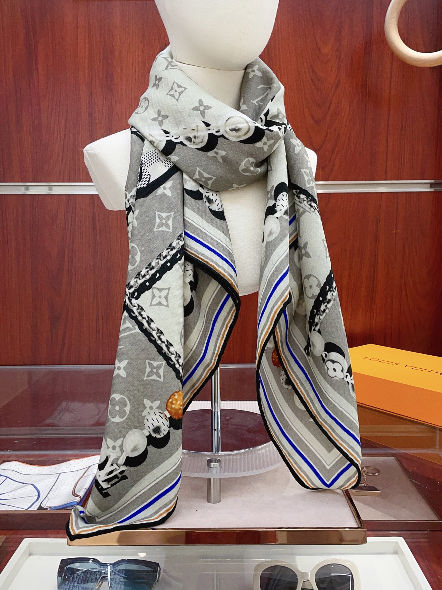 这款围巾是AAAAA 1:1 质量 (非常棒). 使用了和原版一模一样的材料. 商标部分也保持了和路易威登/Louis Vuitton一样. 图片拍摄是实物围巾拍摄, 您所收到的实物保证和我们图片一模一样.
