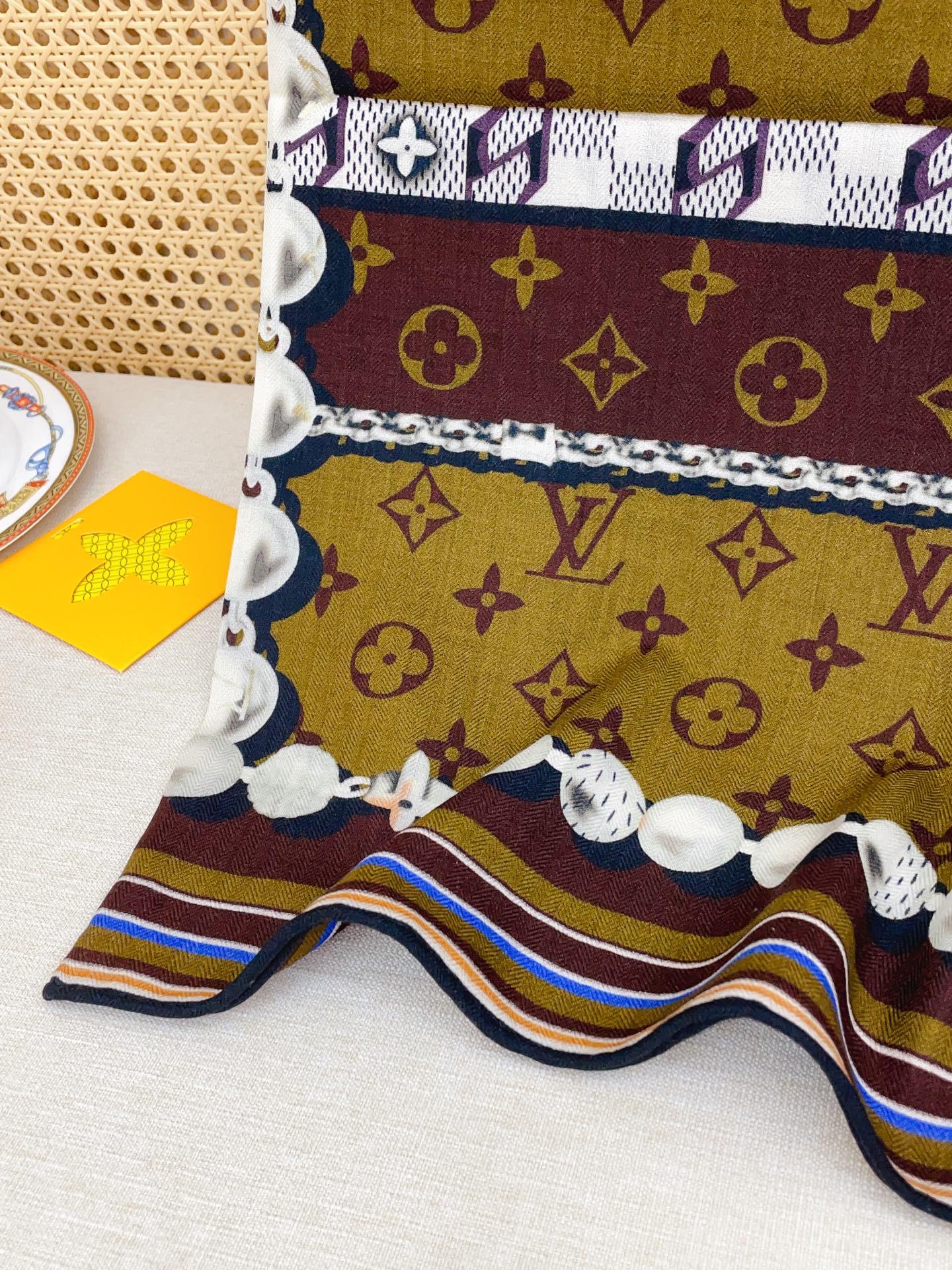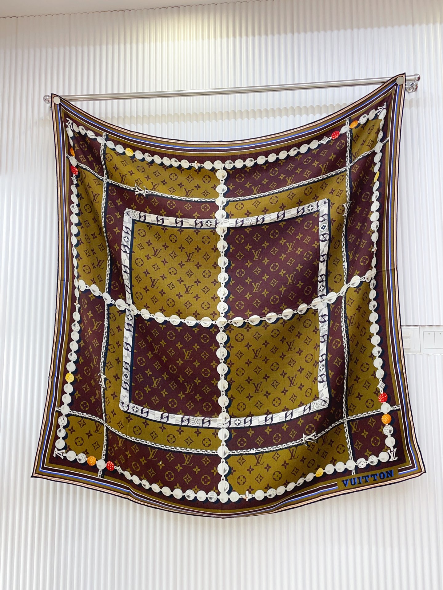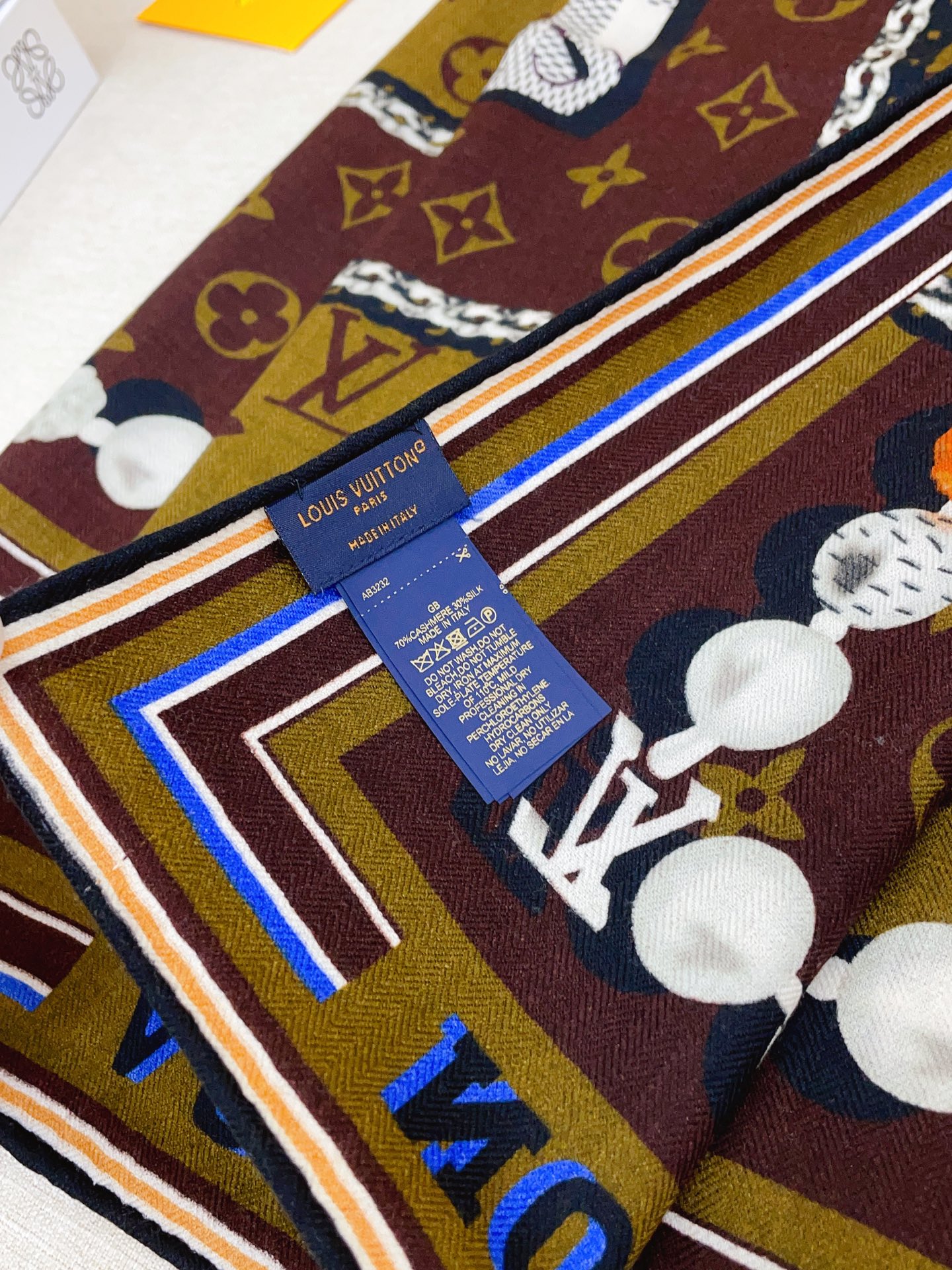 这款围巾是AAAAA 1:1 质量 (非常棒). 使用了和原版一模一样的材料. 商标部分也保持了和路易威登/Louis Vuitton一样. 图片拍摄是实物围巾拍摄, 您所收到的实物保证和我们图片一模一样.
