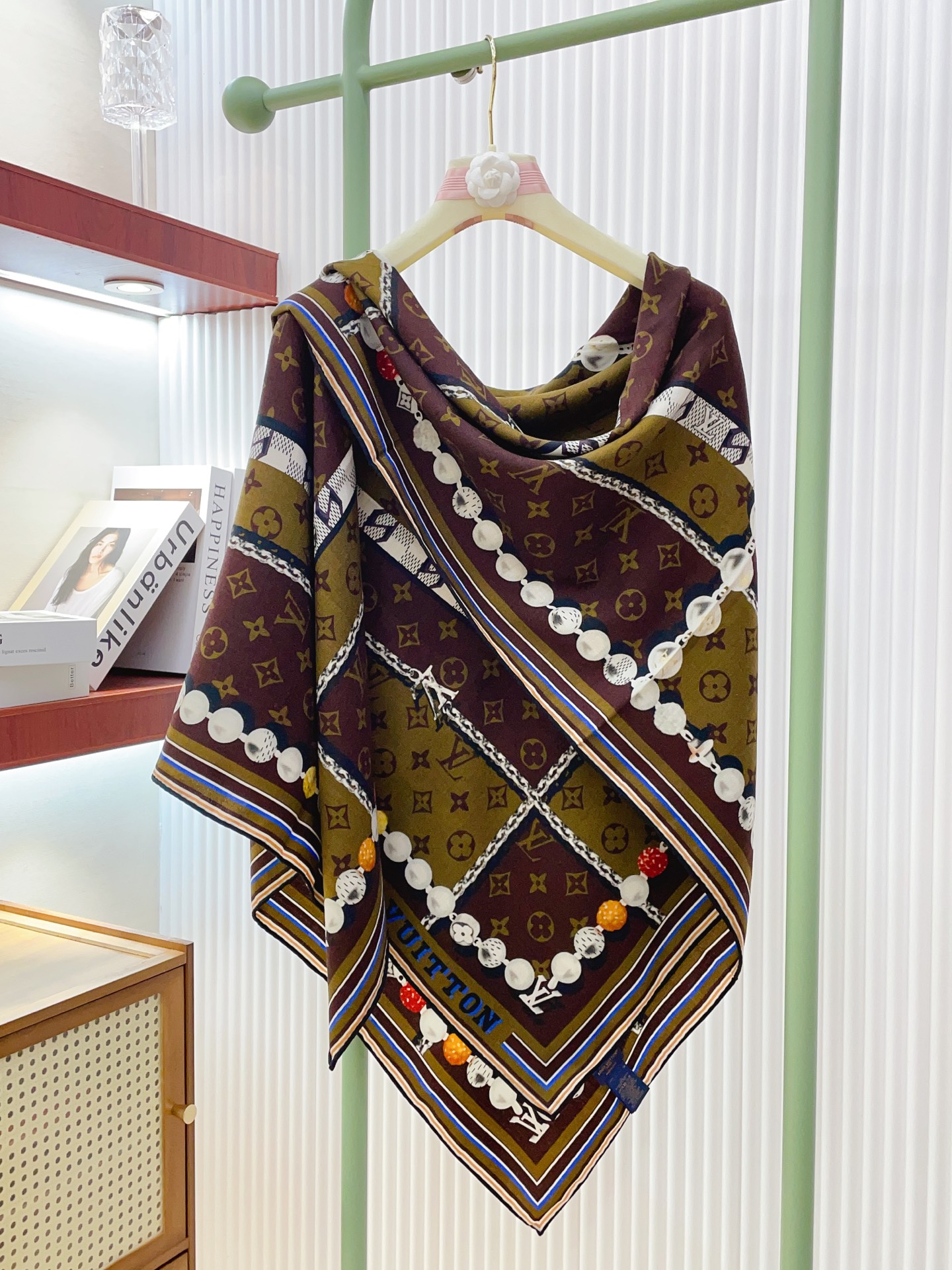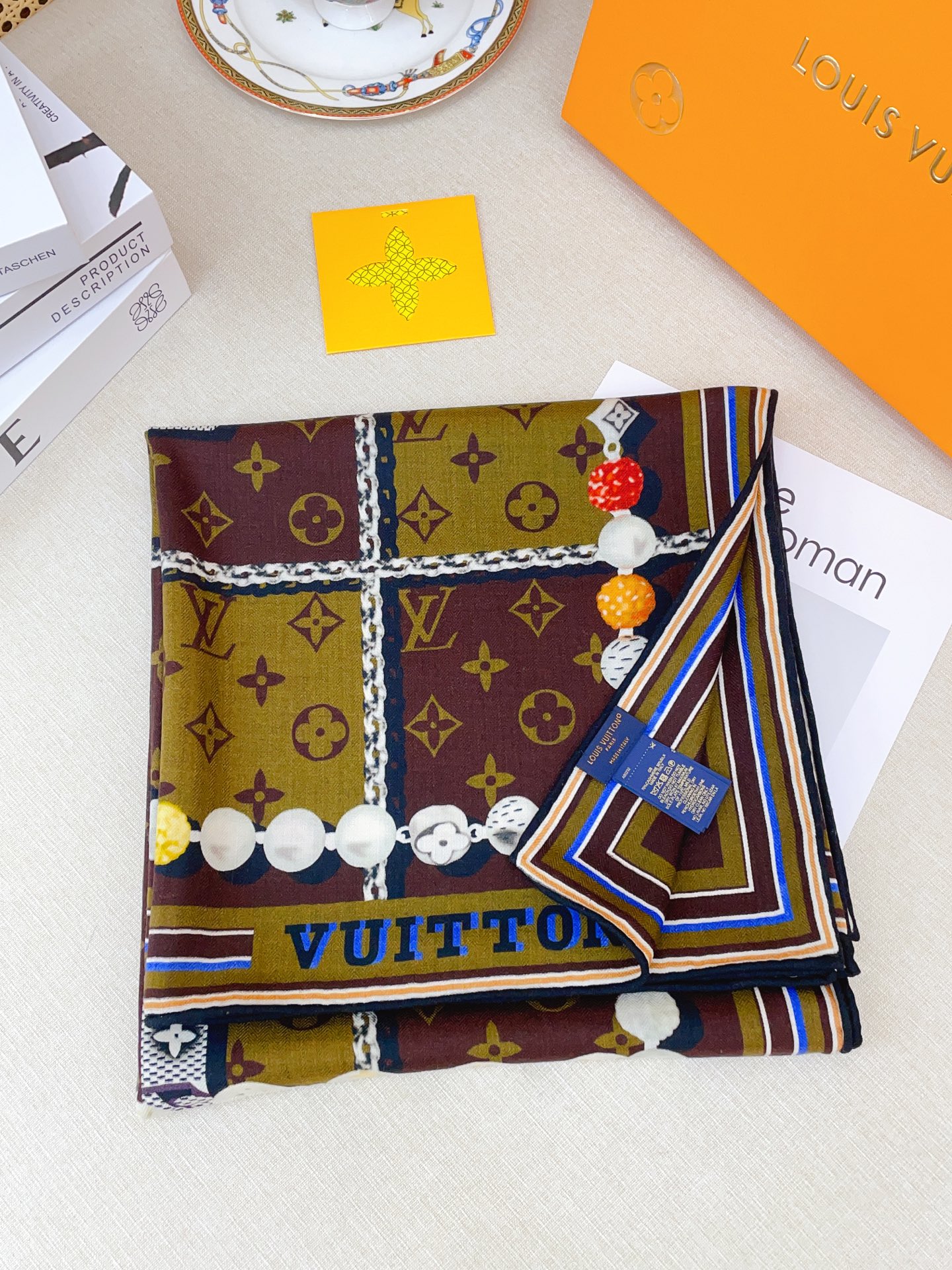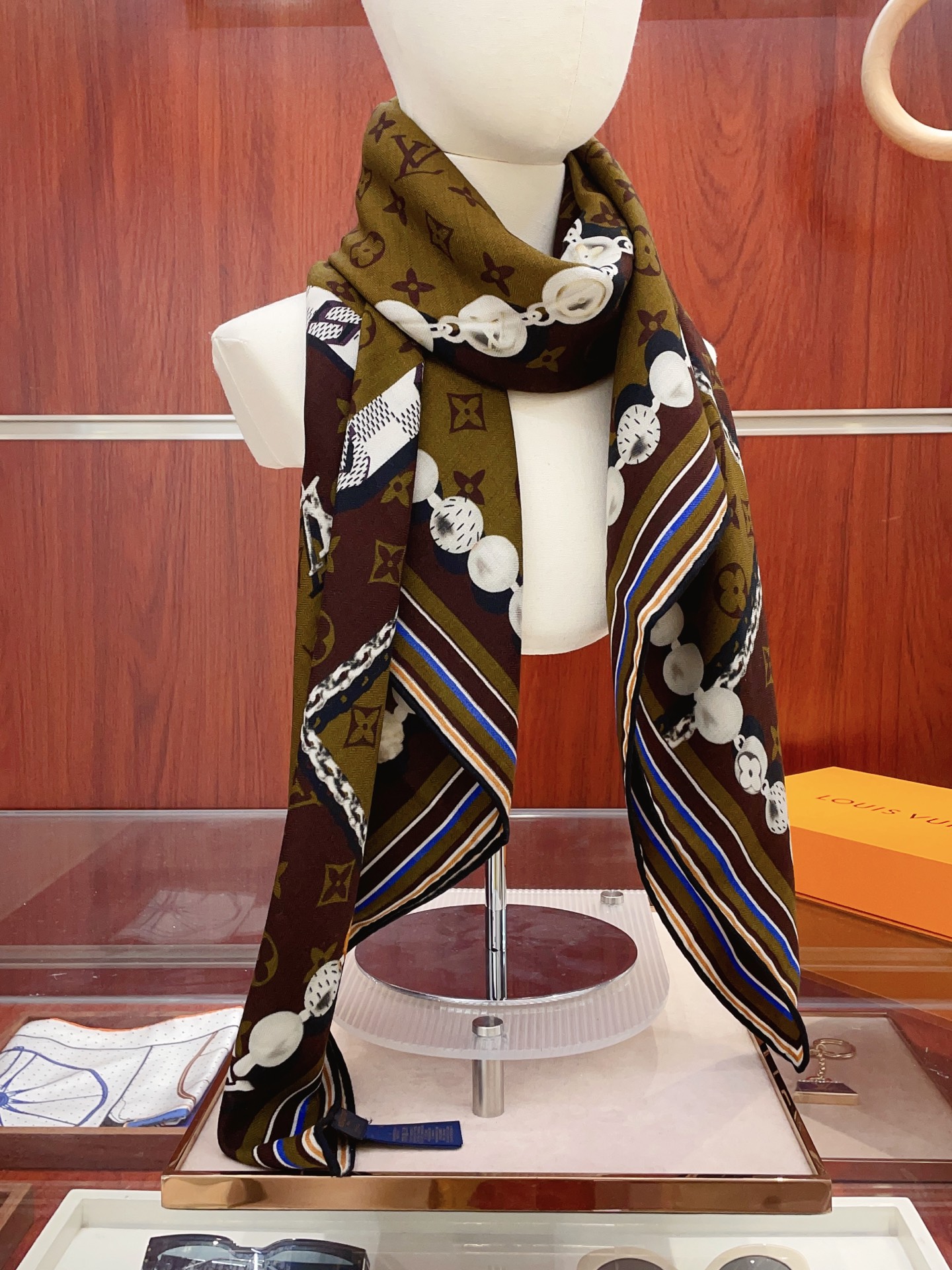 这款围巾是AAAAA 1:1 质量 (非常棒). 使用了和原版一模一样的材料. 商标部分也保持了和路易威登/Louis Vuitton一样. 图片拍摄是实物围巾拍摄, 您所收到的实物保证和我们图片一模一样.