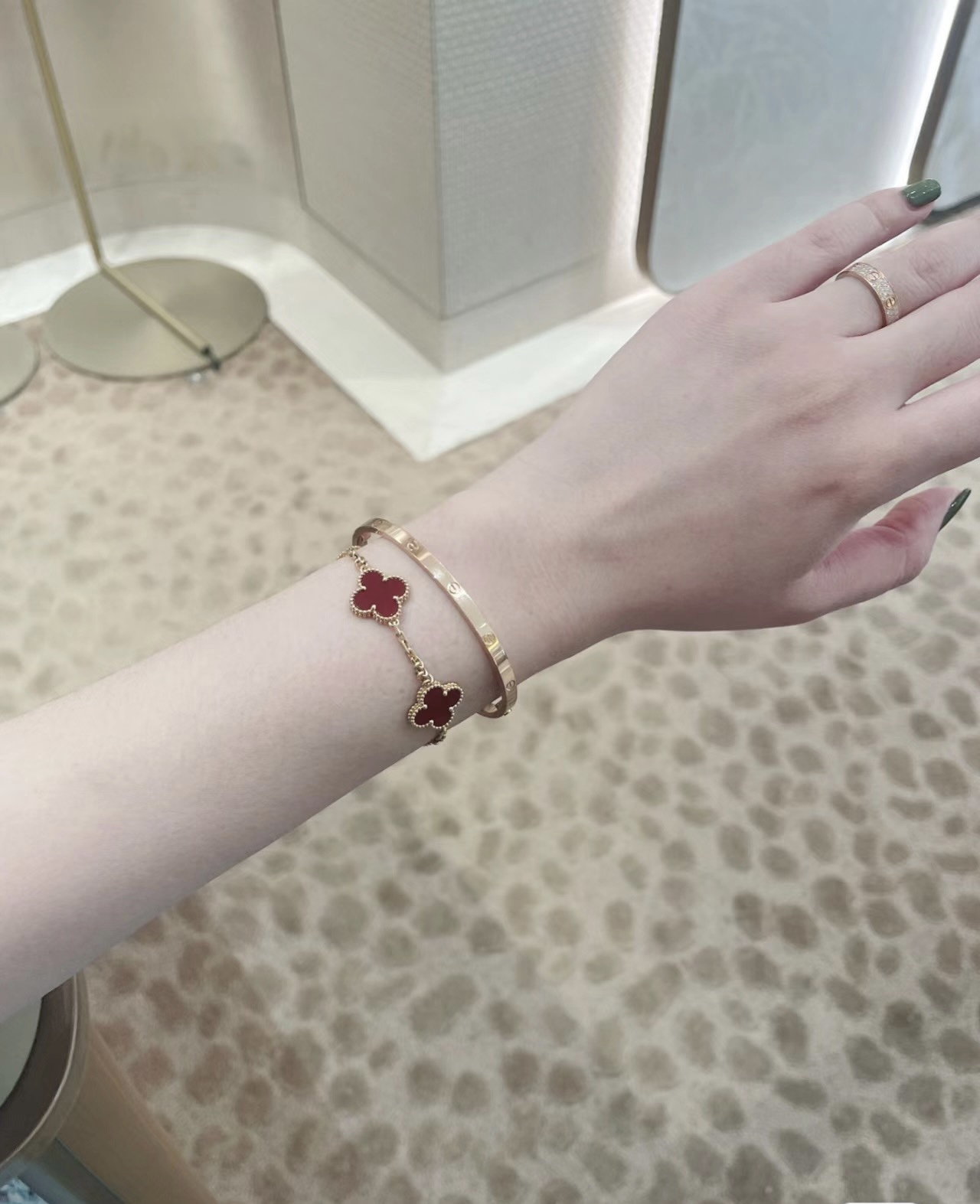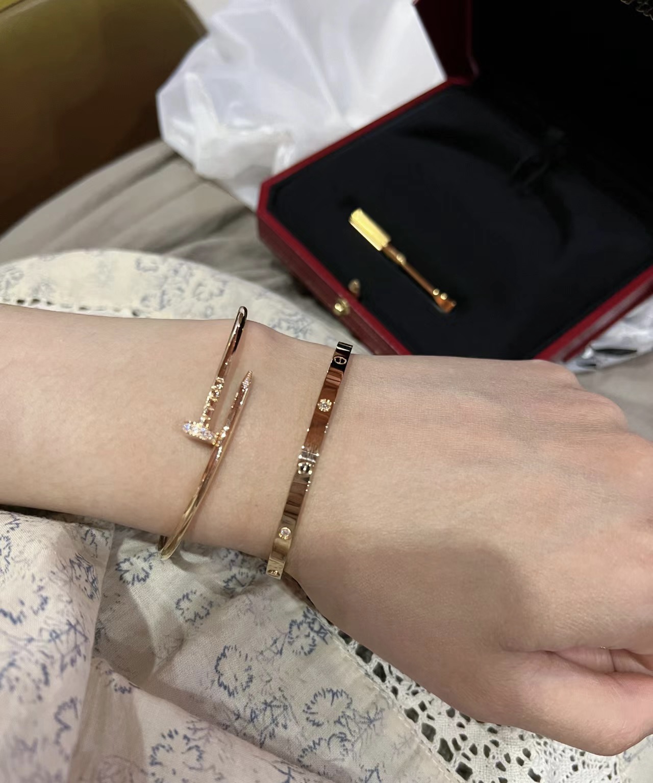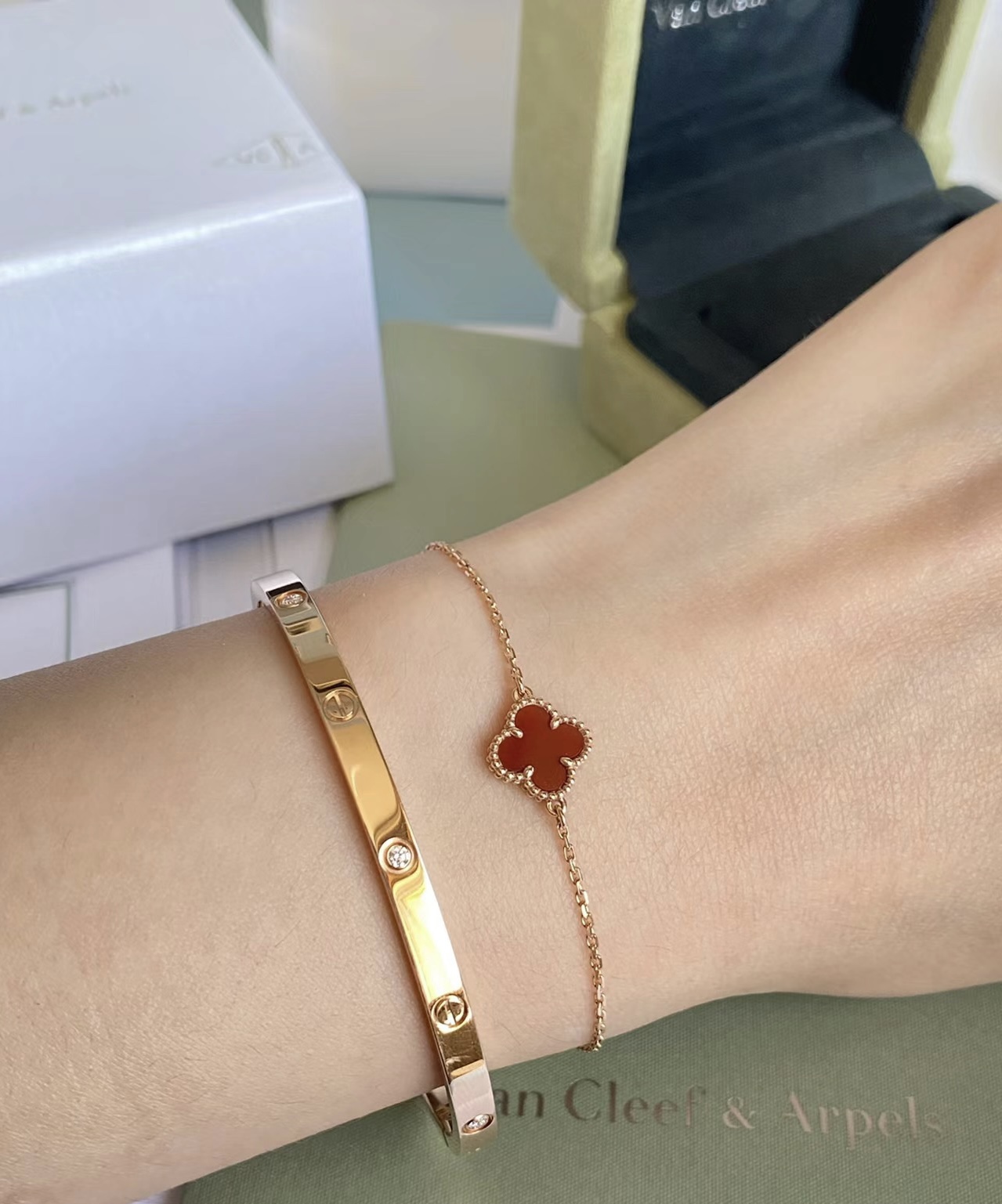 这款首饰是AAAAA 1:1 质量 (非常棒). 使用了和原版一模一样的材料. 商标部分也保持了和一样. 图片拍摄是实物首饰拍摄, 您所收到的实物保证和我们图片一模一样.
