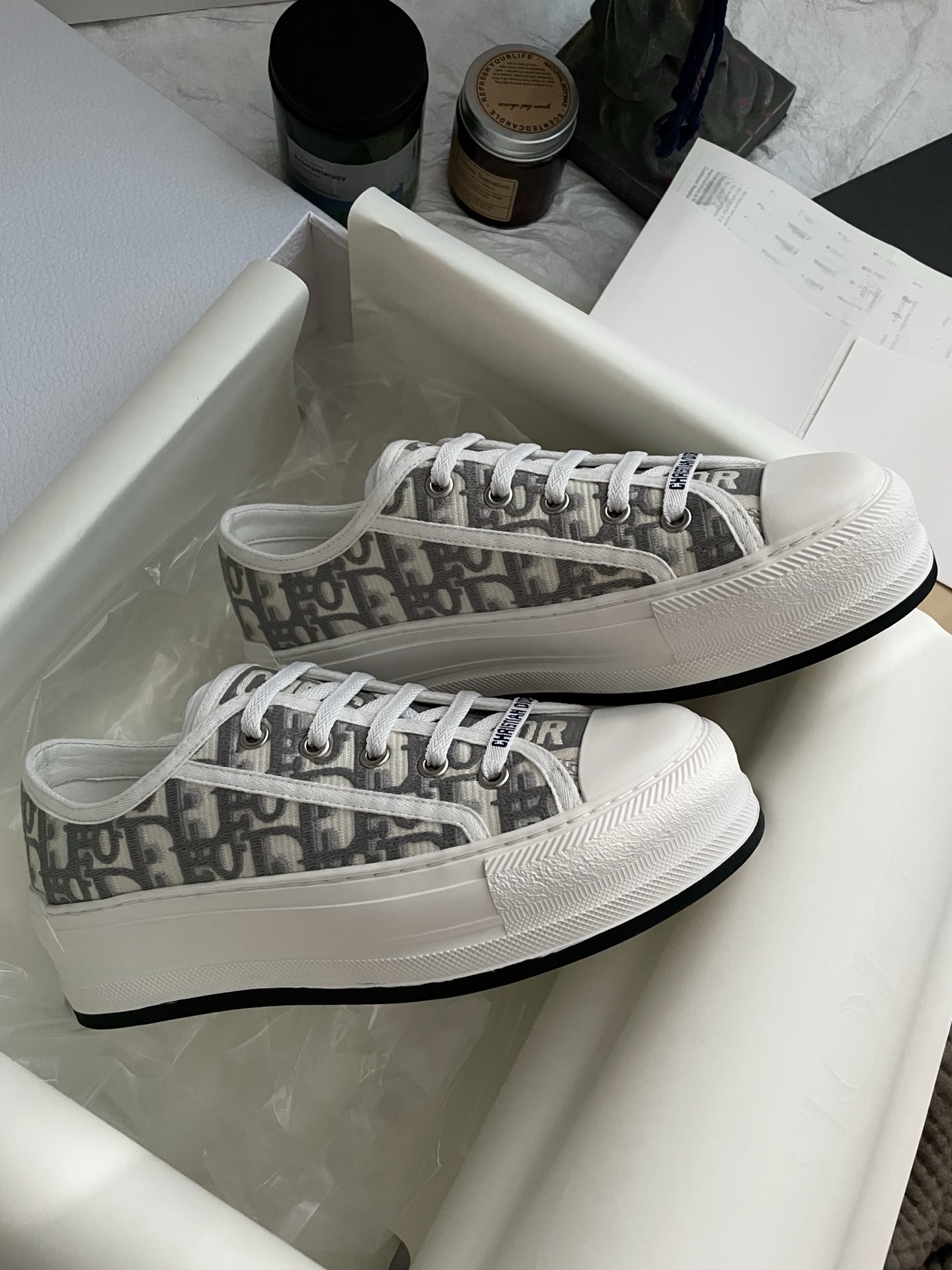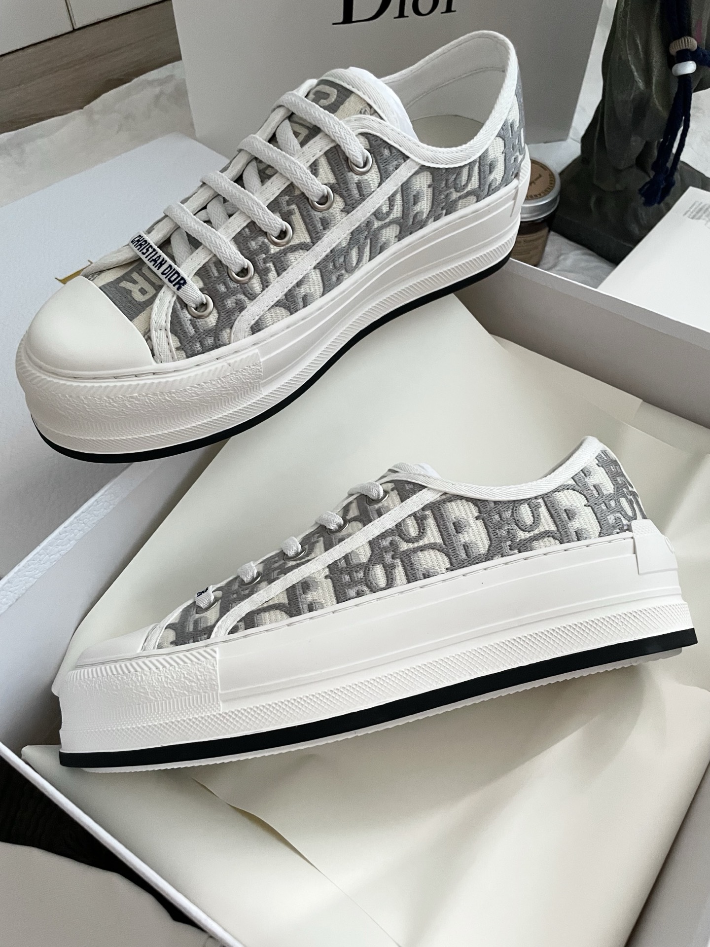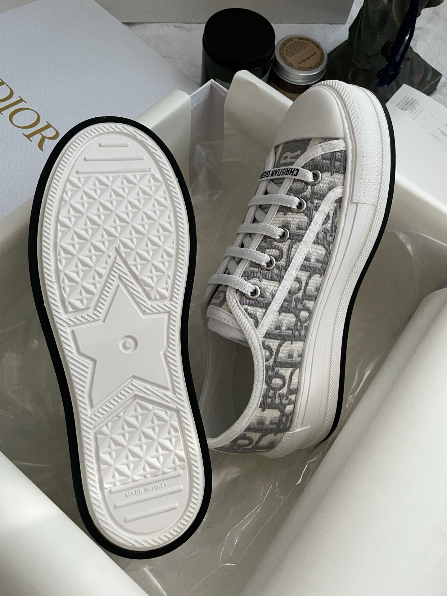 这款鞋子是AAAAA 1:1 质量 (非常棒). 使用了和原版一模一样的材料. 商标部分也保持了和迪奥/Dior一样. 图片拍摄是实物鞋子拍摄, 您所收到的实物保证和我们图片一模一样.