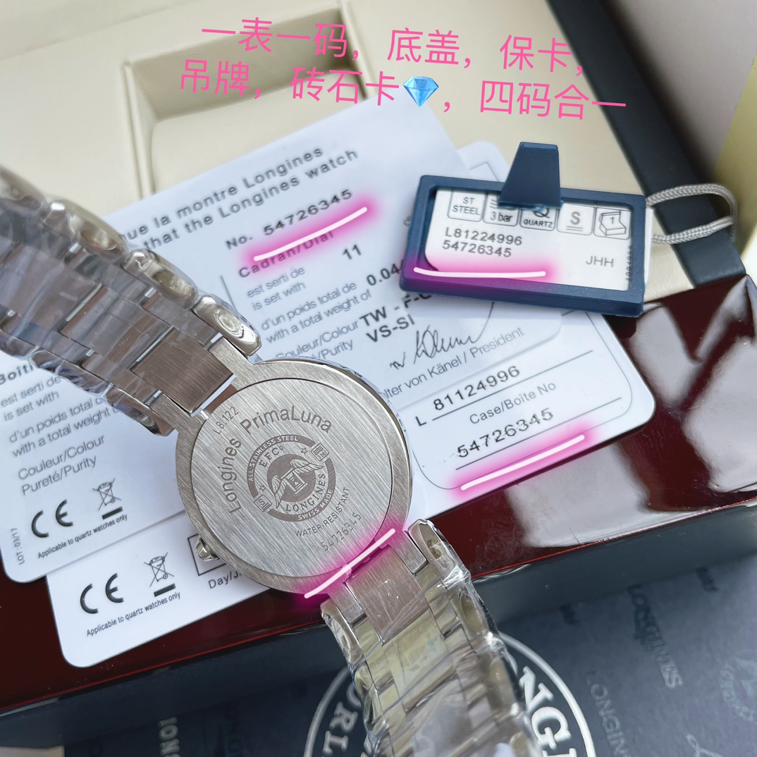 这款手表是AAAAA 1:1 质量 (非常棒). 使用了和原版一模一样的材料. 商标部分也保持了和浪琴/Longines一样. 图片拍摄是实物手表拍摄, 您所收到的实物保证和我们图片一模一样.