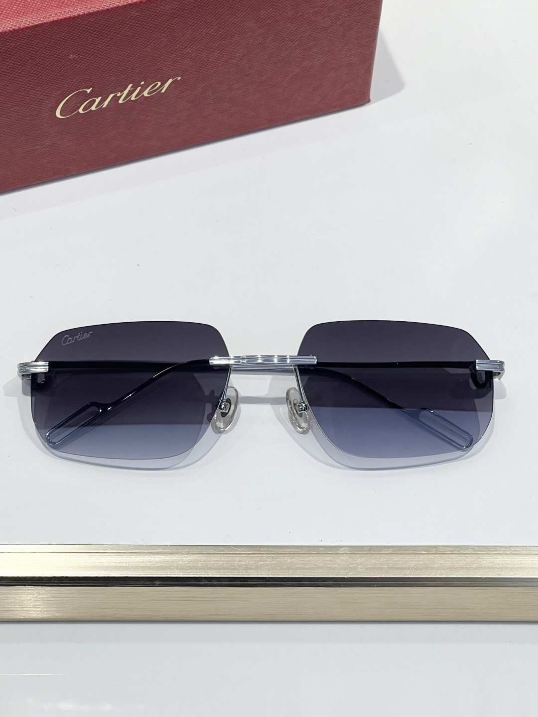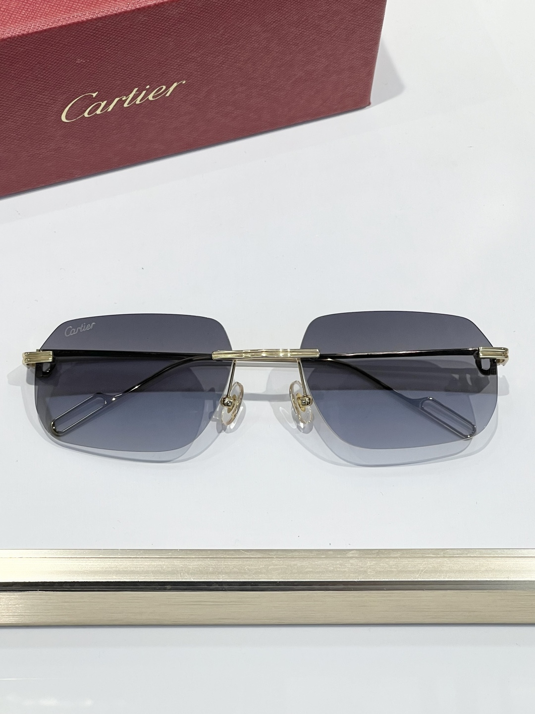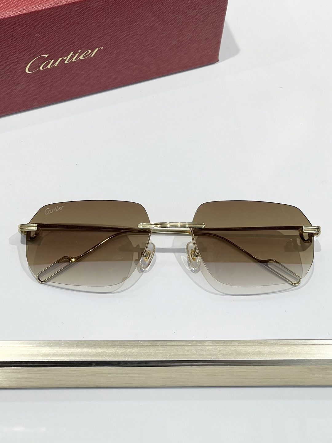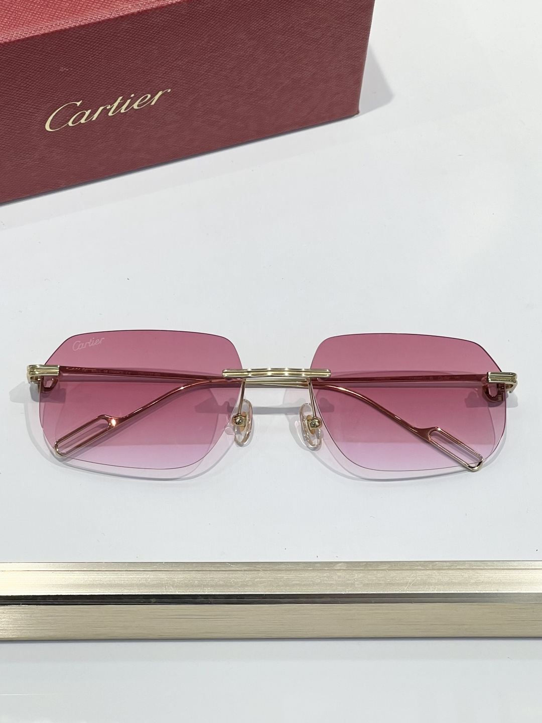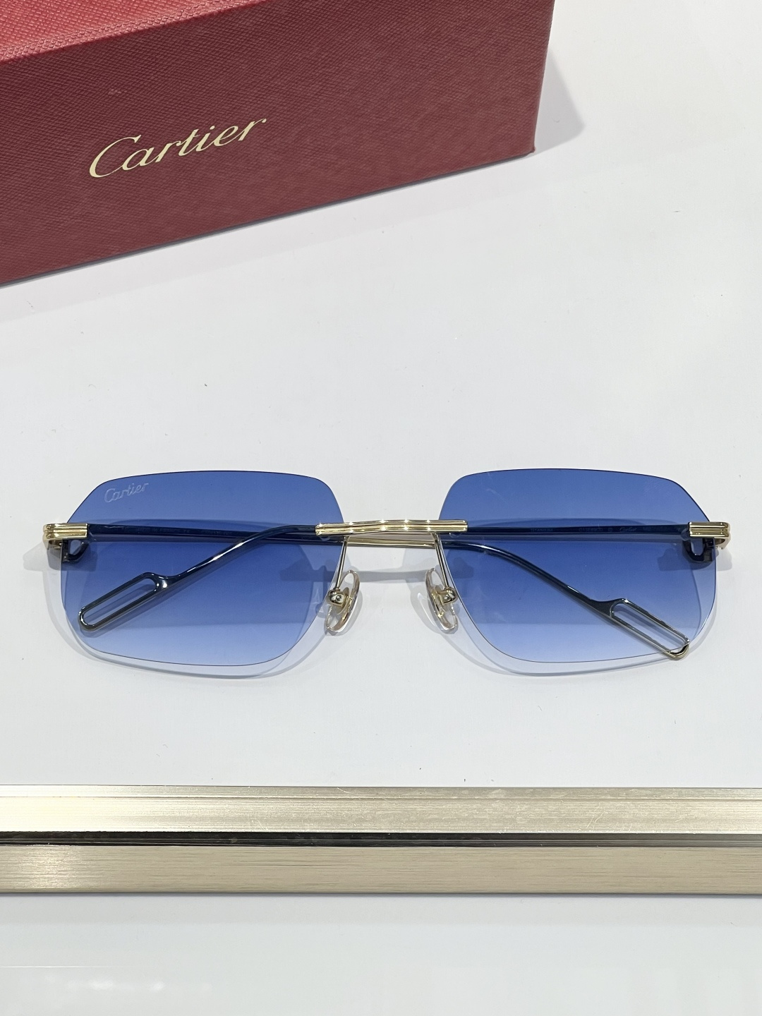 这款太阳眼镜是AAAAA 1:1 质量 (非常棒). 使用了和原版一模一样的材料. 商标部分也保持了和卡地亚/Cartier一样. 图片拍摄是实物太阳眼镜拍摄, 您所收到的实物保证和我们图片一模一样.
