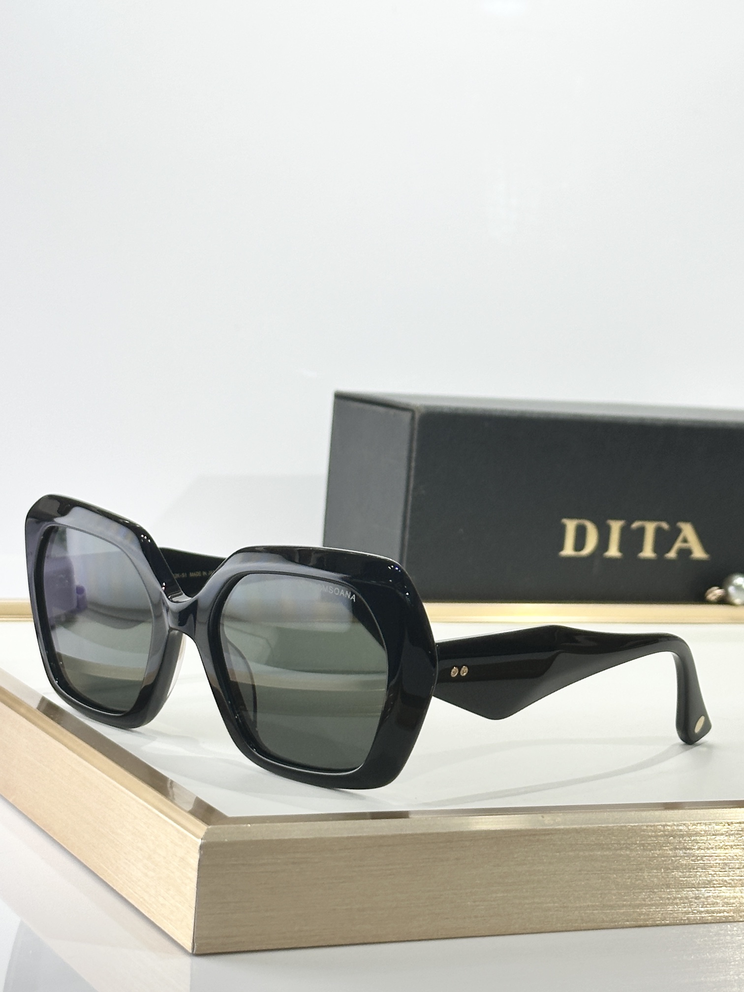 这款太阳眼镜是AAAAA 1:1 质量 (非常棒). 使用了和原版一模一样的材料. 商标部分也保持了和迪塔/Dita一样. 图片拍摄是实物太阳眼镜拍摄, 您所收到的实物保证和我们图片一模一样.