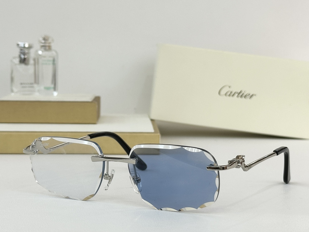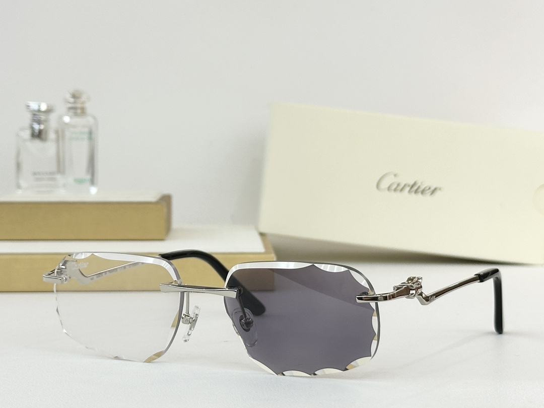 这款太阳眼镜是AAAAA 1:1 质量 (非常棒). 使用了和原版一模一样的材料. 商标部分也保持了和卡地亚/Cartier一样. 图片拍摄是实物太阳眼镜拍摄, 您所收到的实物保证和我们图片一模一样.