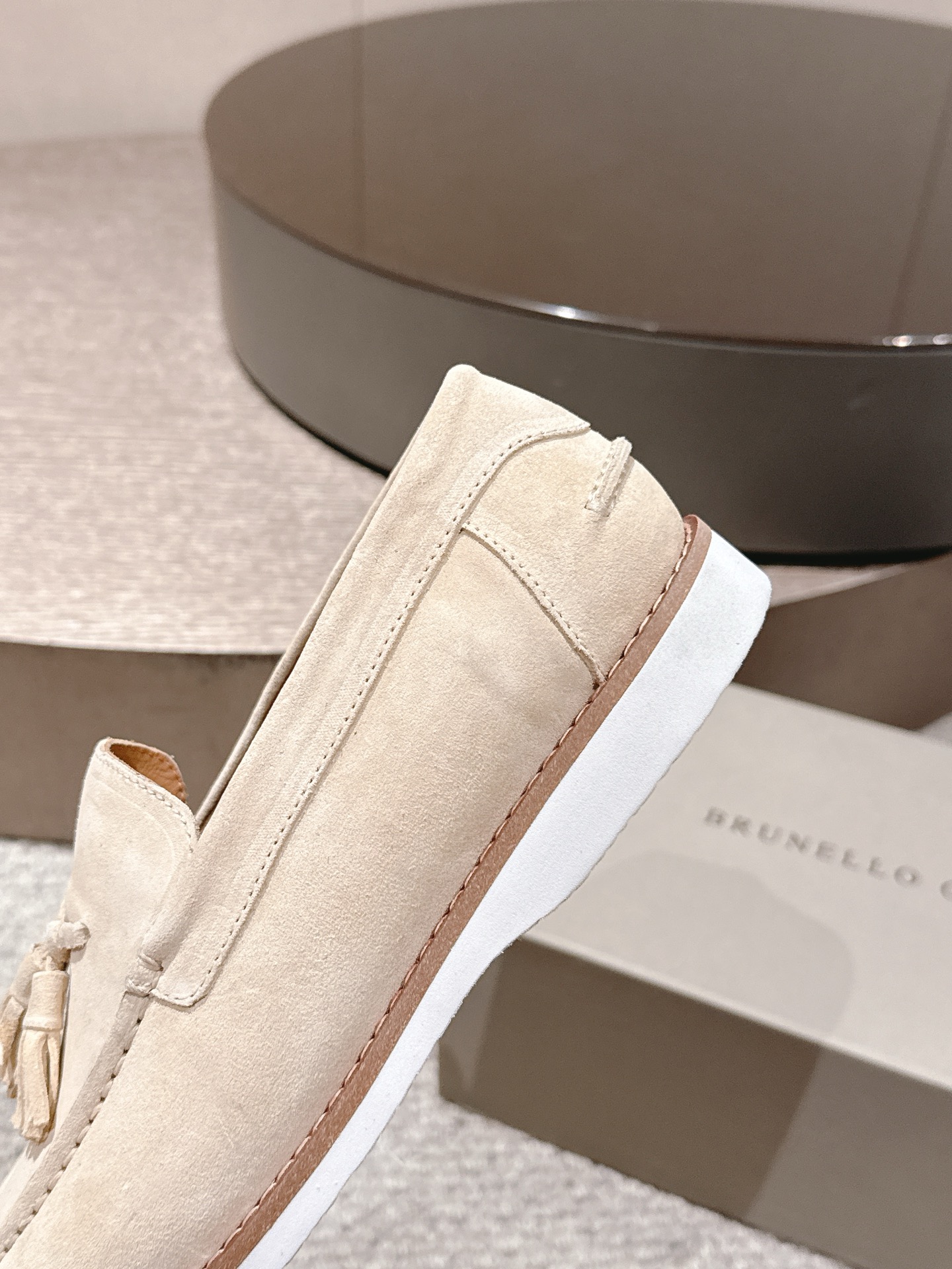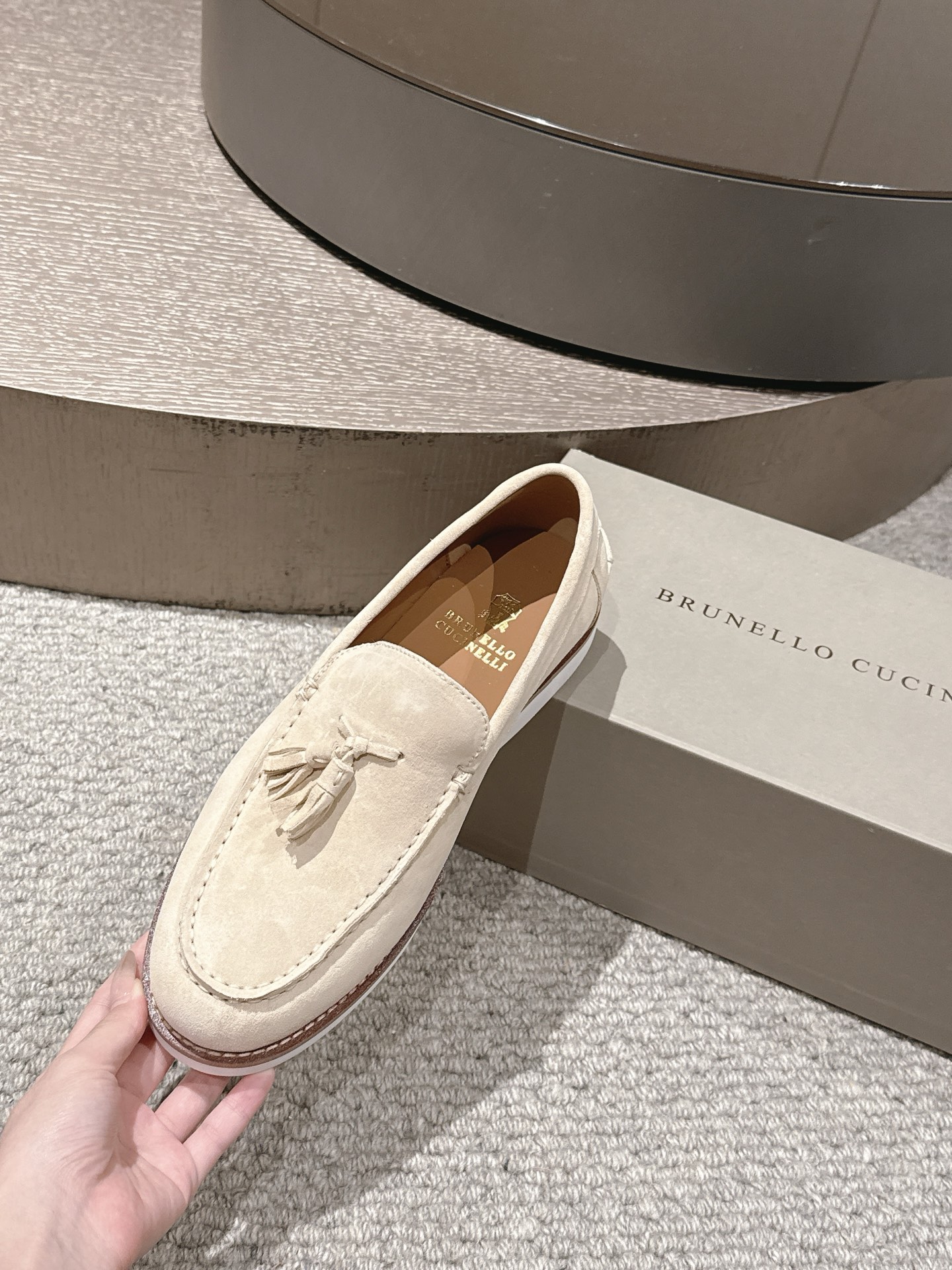这款鞋子是AAAAA 1:1 质量 (非常棒). 使用了和原版一模一样的材料. 商标部分也保持了和Brunello Cucinelli一样. 图片拍摄是实物鞋子拍摄, 您所收到的实物保证和我们图片一模一样.