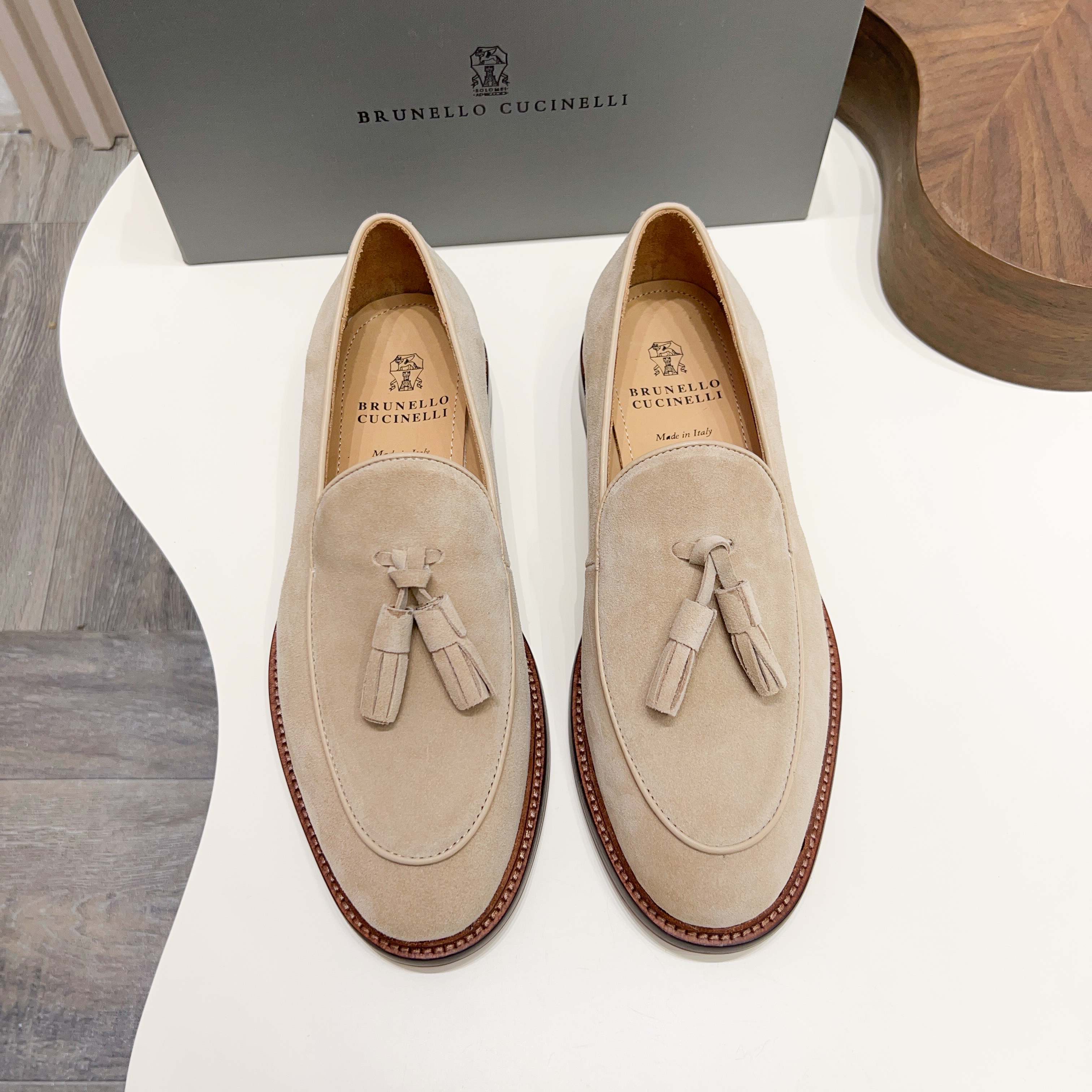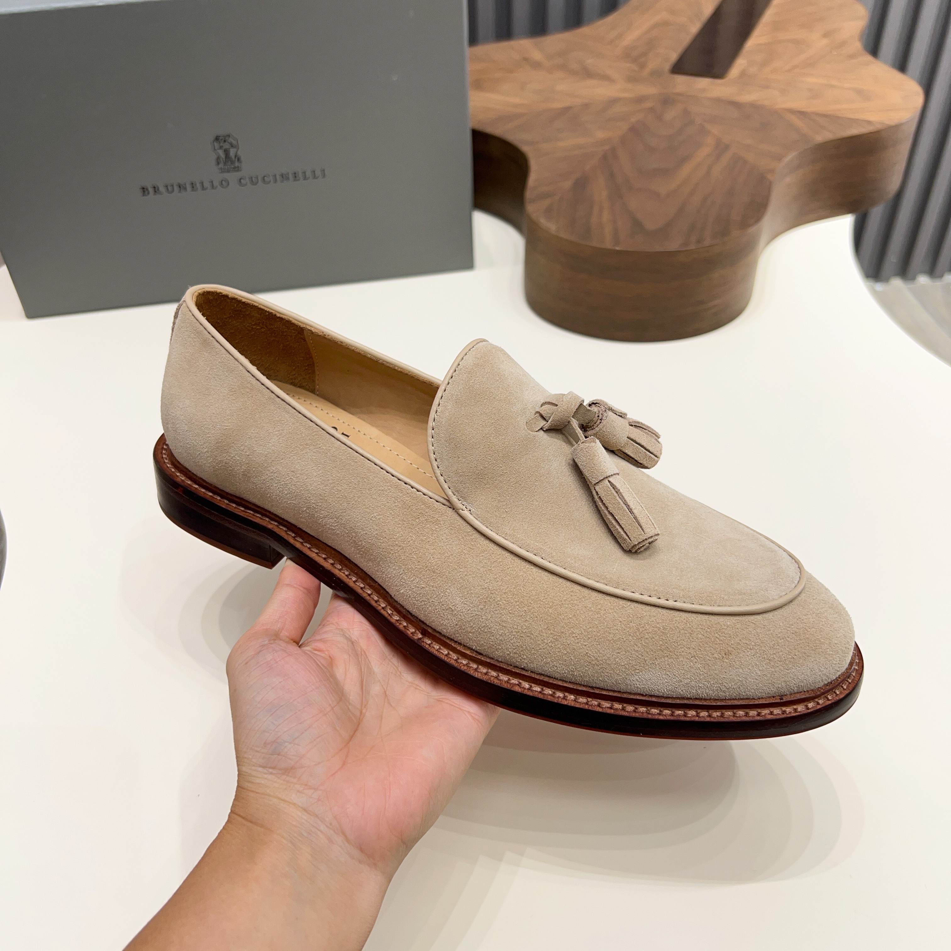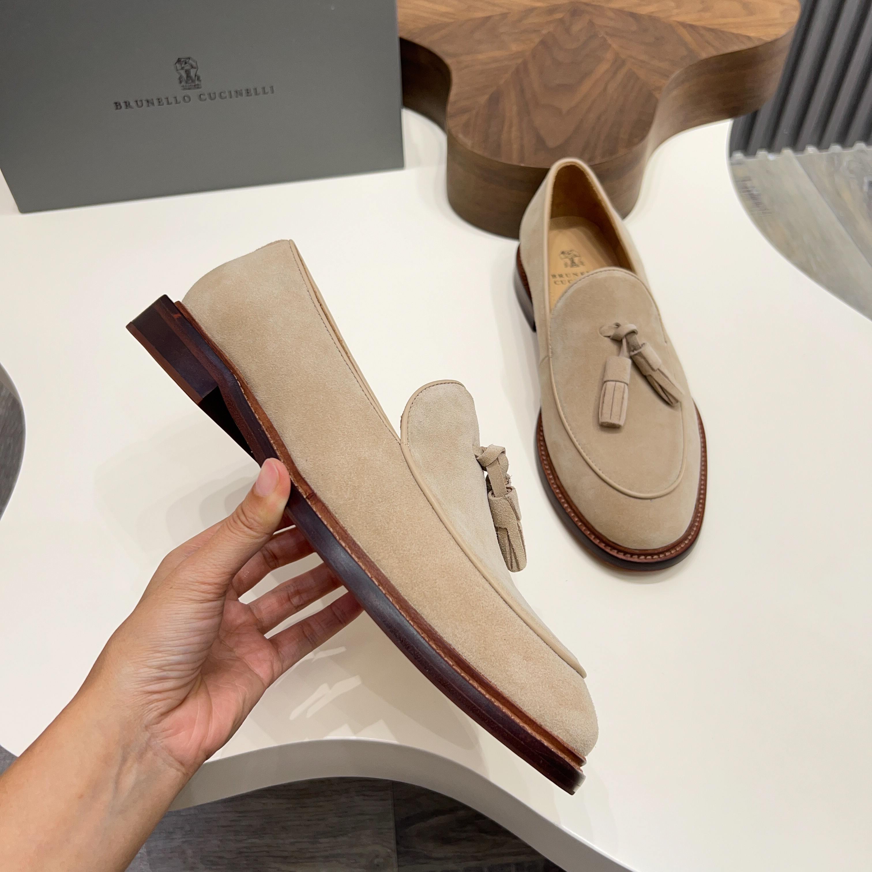 这款鞋子是AAAAA 1:1 质量 (非常棒). 使用了和原版一模一样的材料. 商标部分也保持了和Brunello Cucinelli一样. 图片拍摄是实物鞋子拍摄, 您所收到的实物保证和我们图片一模一样.