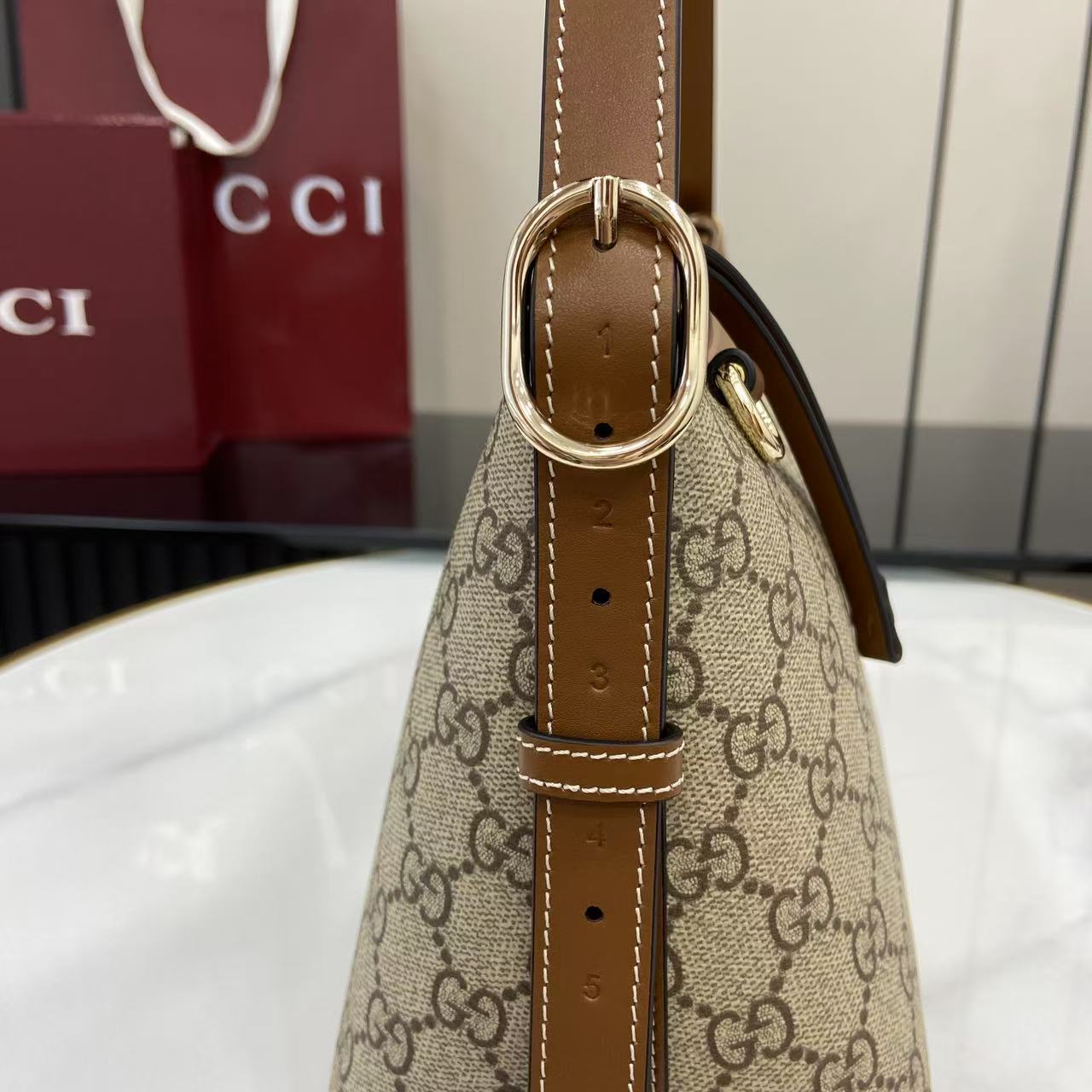 这款包包是AAAAA 1:1 质量 (非常棒). 使用了和原版一模一样的材料. 商标部分也保持了和古奇/Gucci一样. 图片拍摄是实物包包拍摄, 您所收到的实物保证和我们图片一模一样.