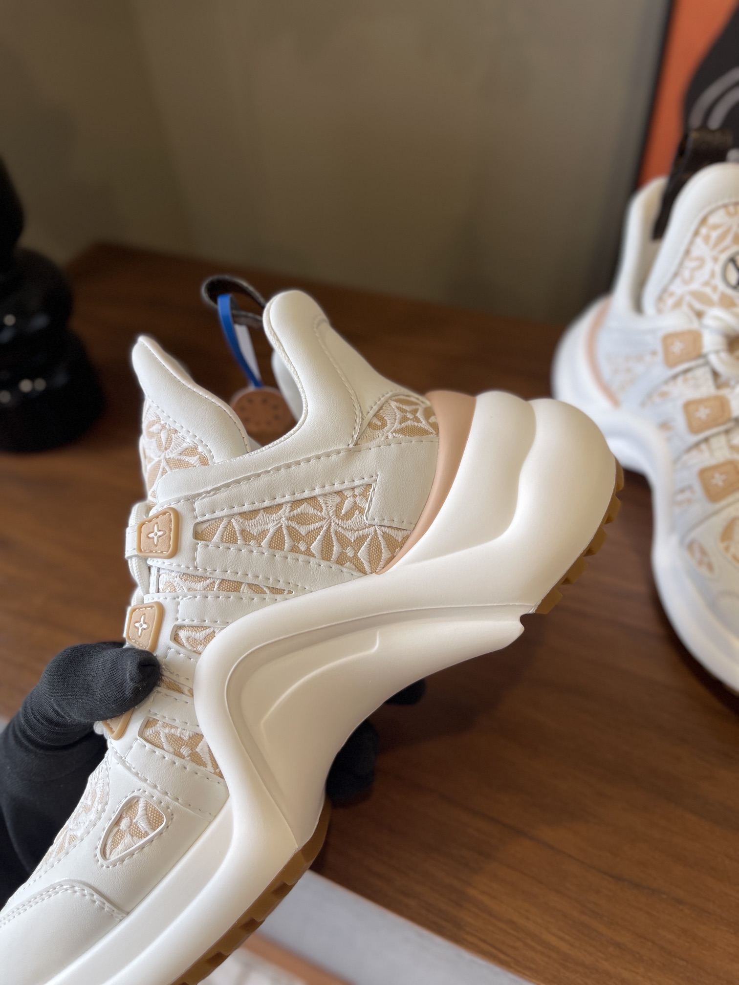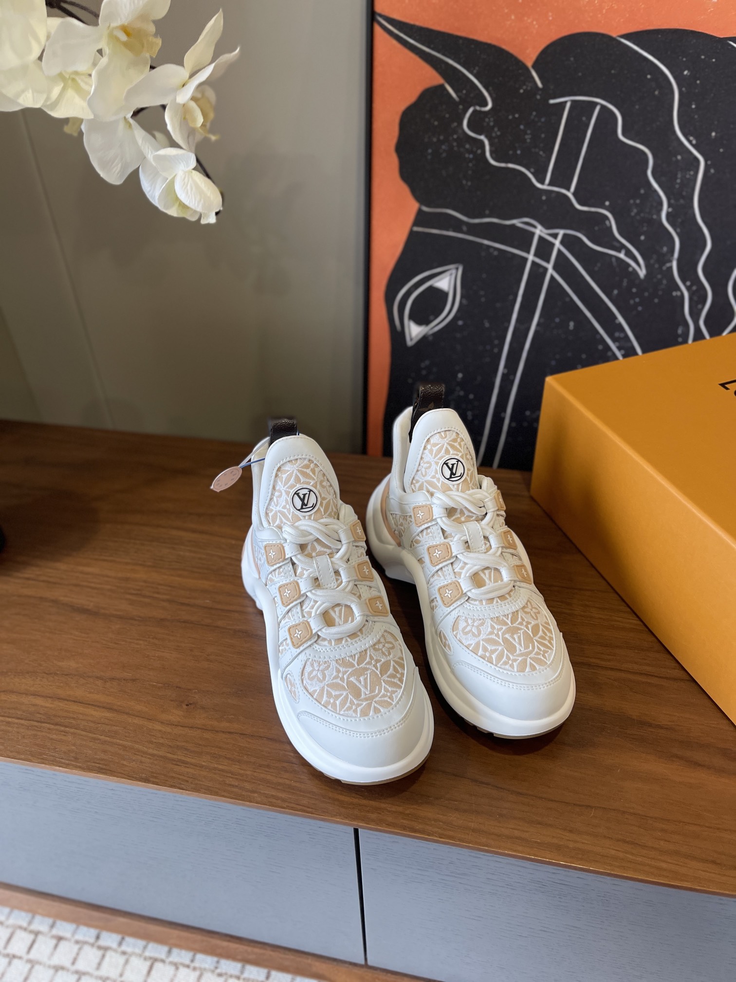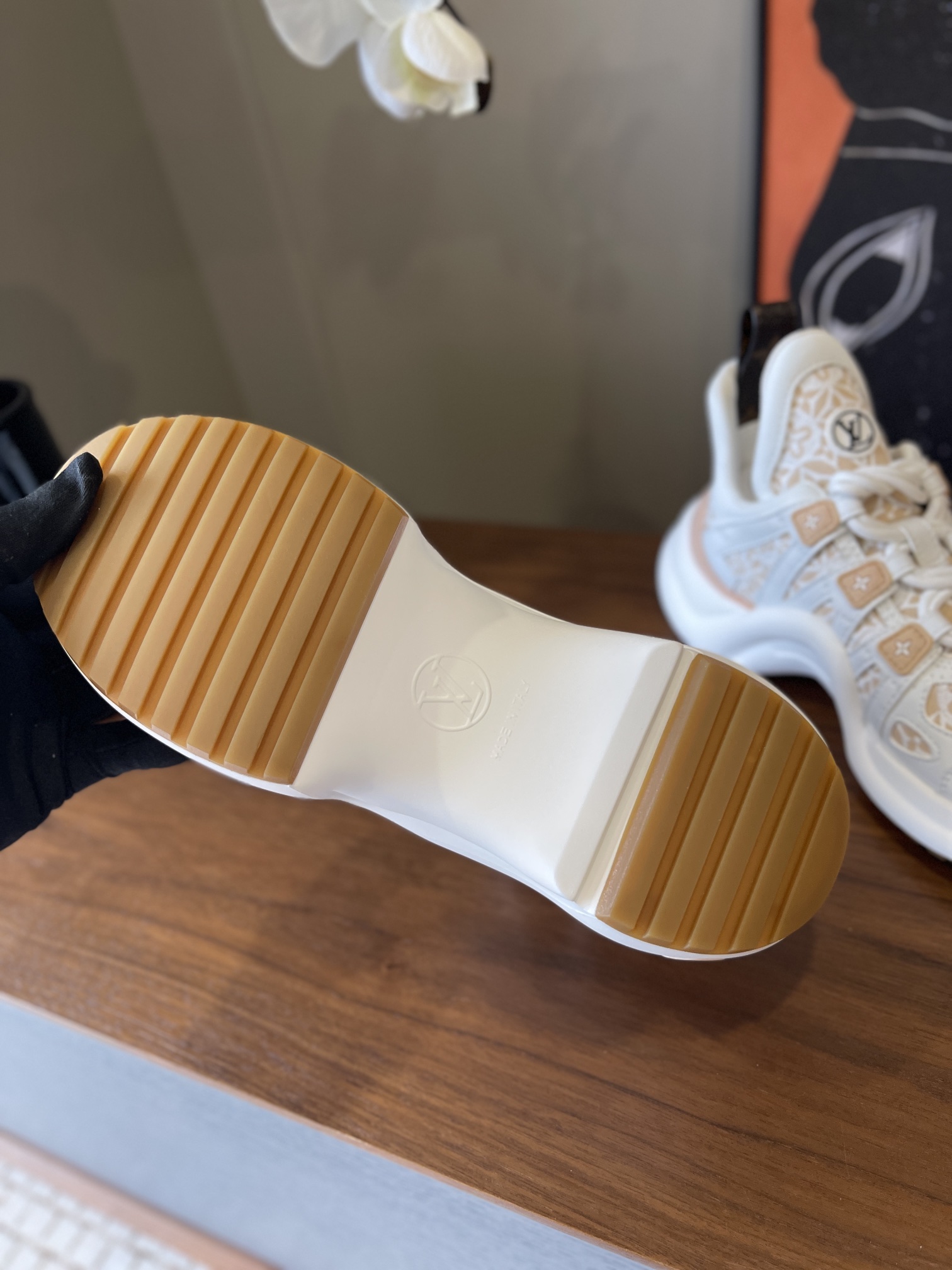 这款鞋子是AAAAA 1:1 质量 (非常棒). 使用了和原版一模一样的材料. 商标部分也保持了和路易威登/Louis Vuitton一样. 图片拍摄是实物鞋子拍摄, 您所收到的实物保证和我们图片一模一样.