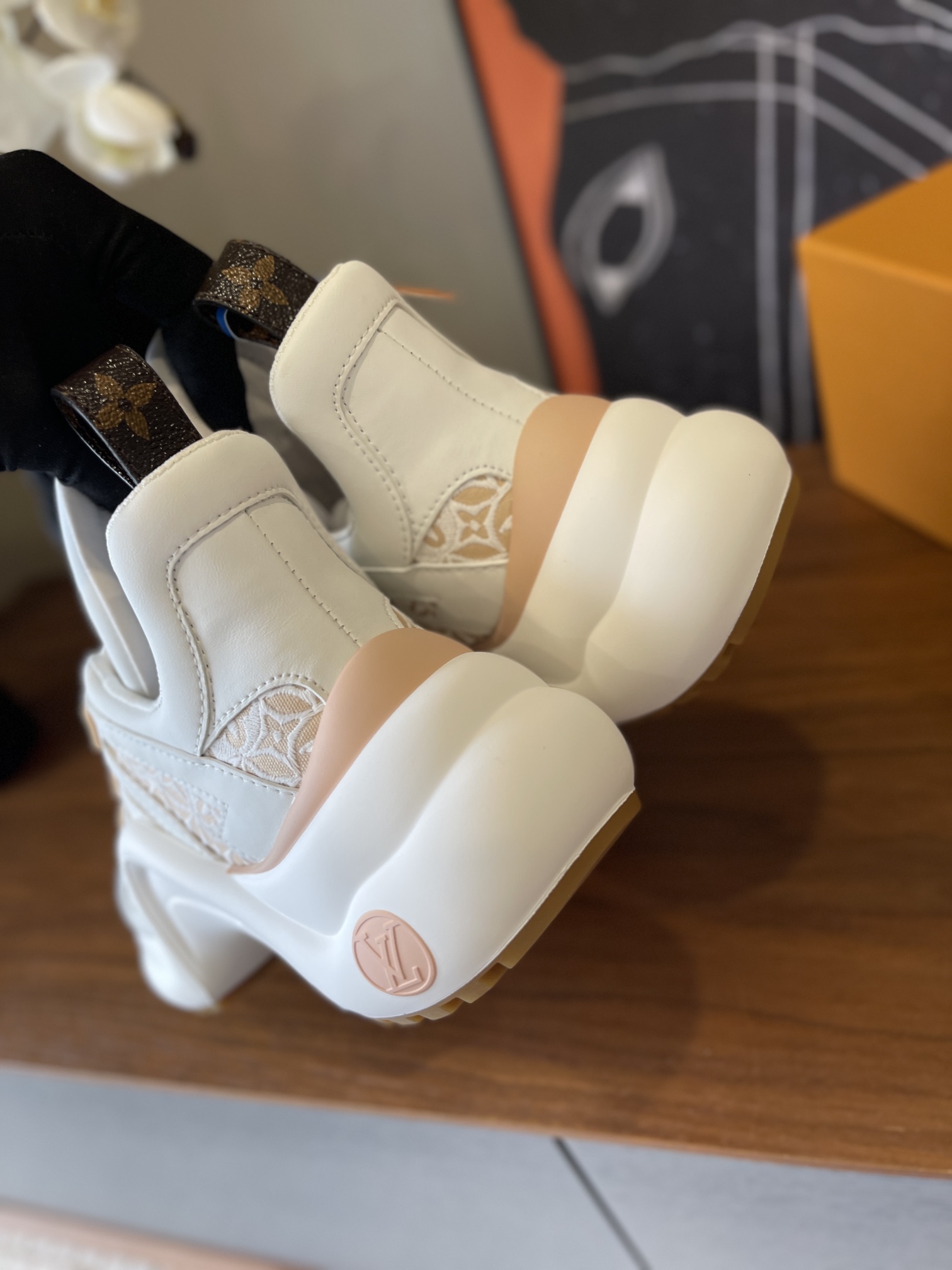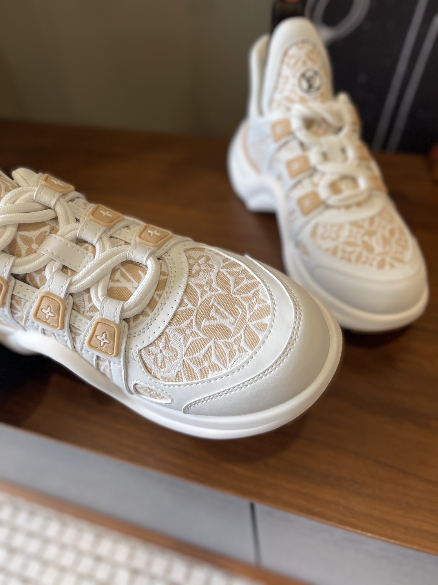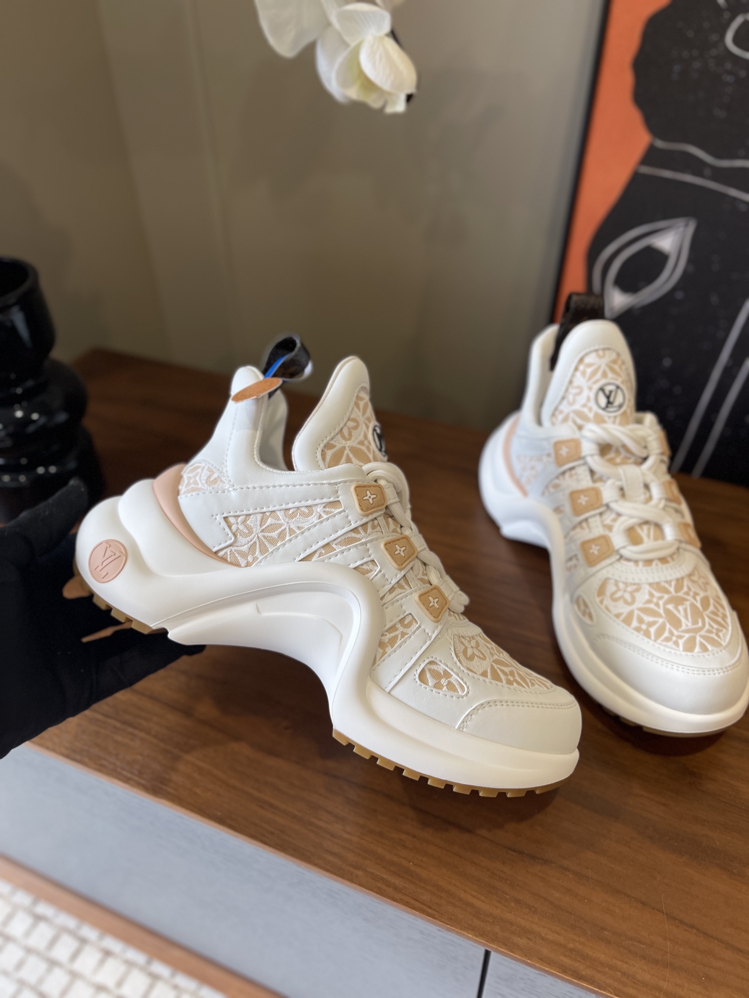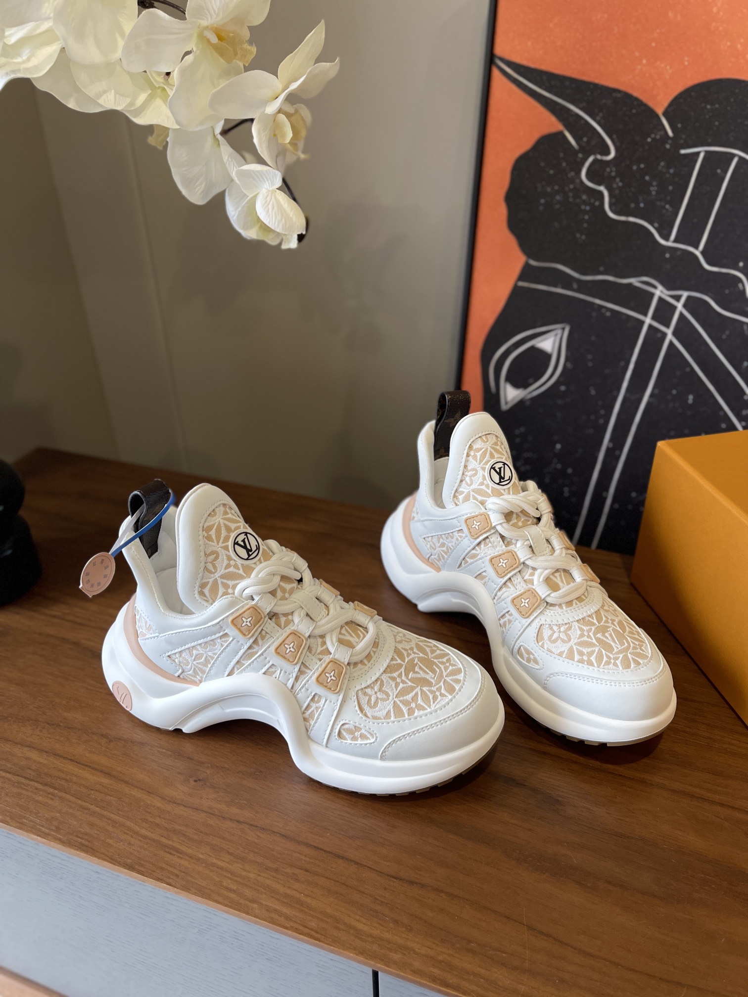 这款鞋子是AAAAA 1:1 质量 (非常棒). 使用了和原版一模一样的材料. 商标部分也保持了和路易威登/Louis Vuitton一样. 图片拍摄是实物鞋子拍摄, 您所收到的实物保证和我们图片一模一样.