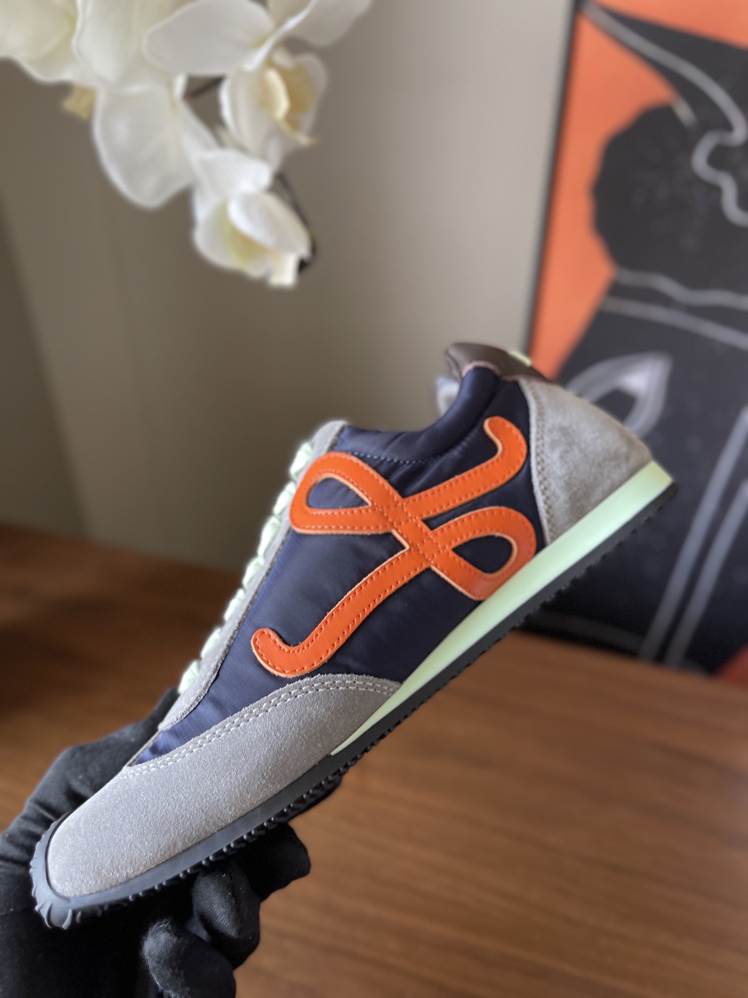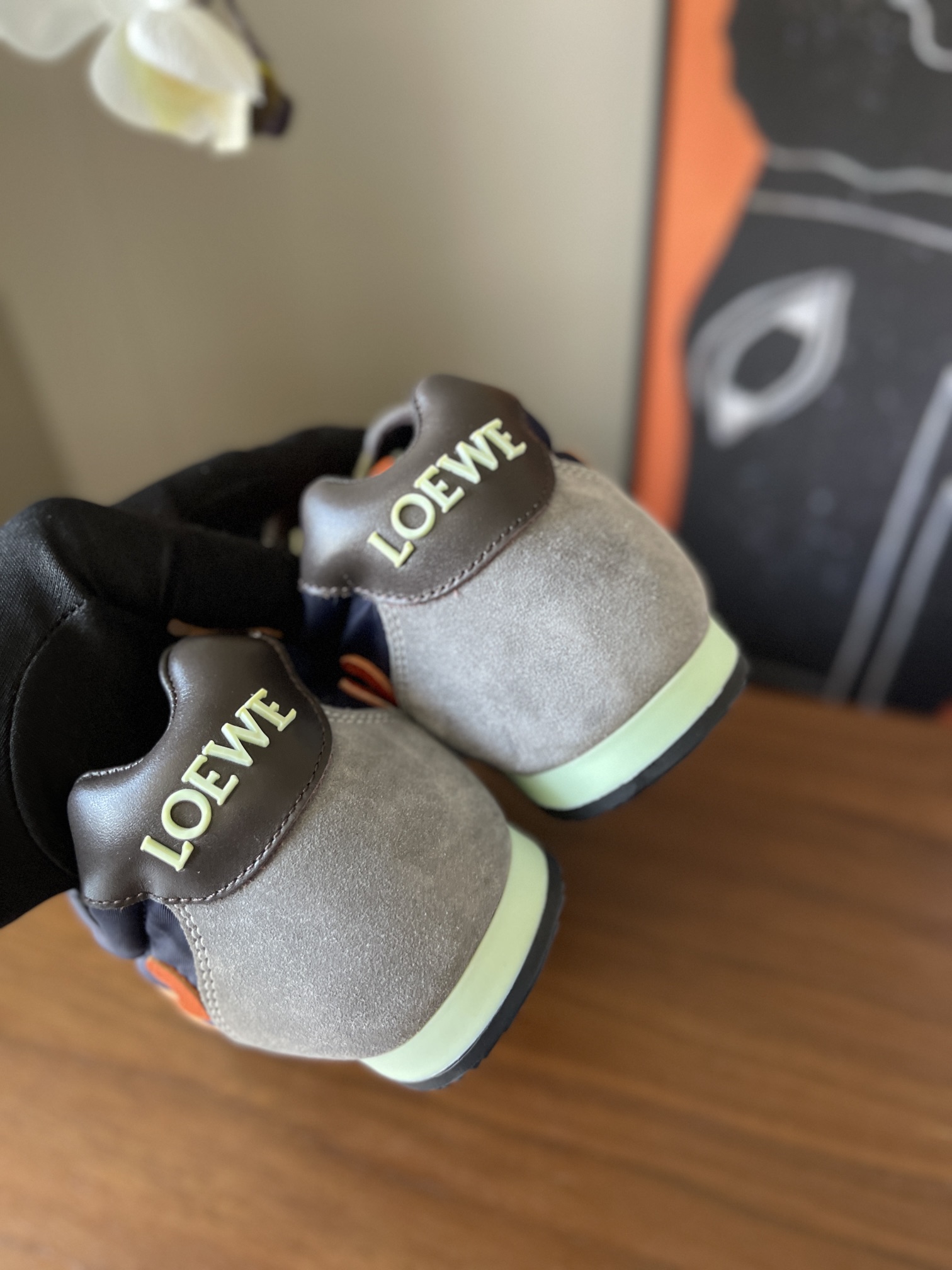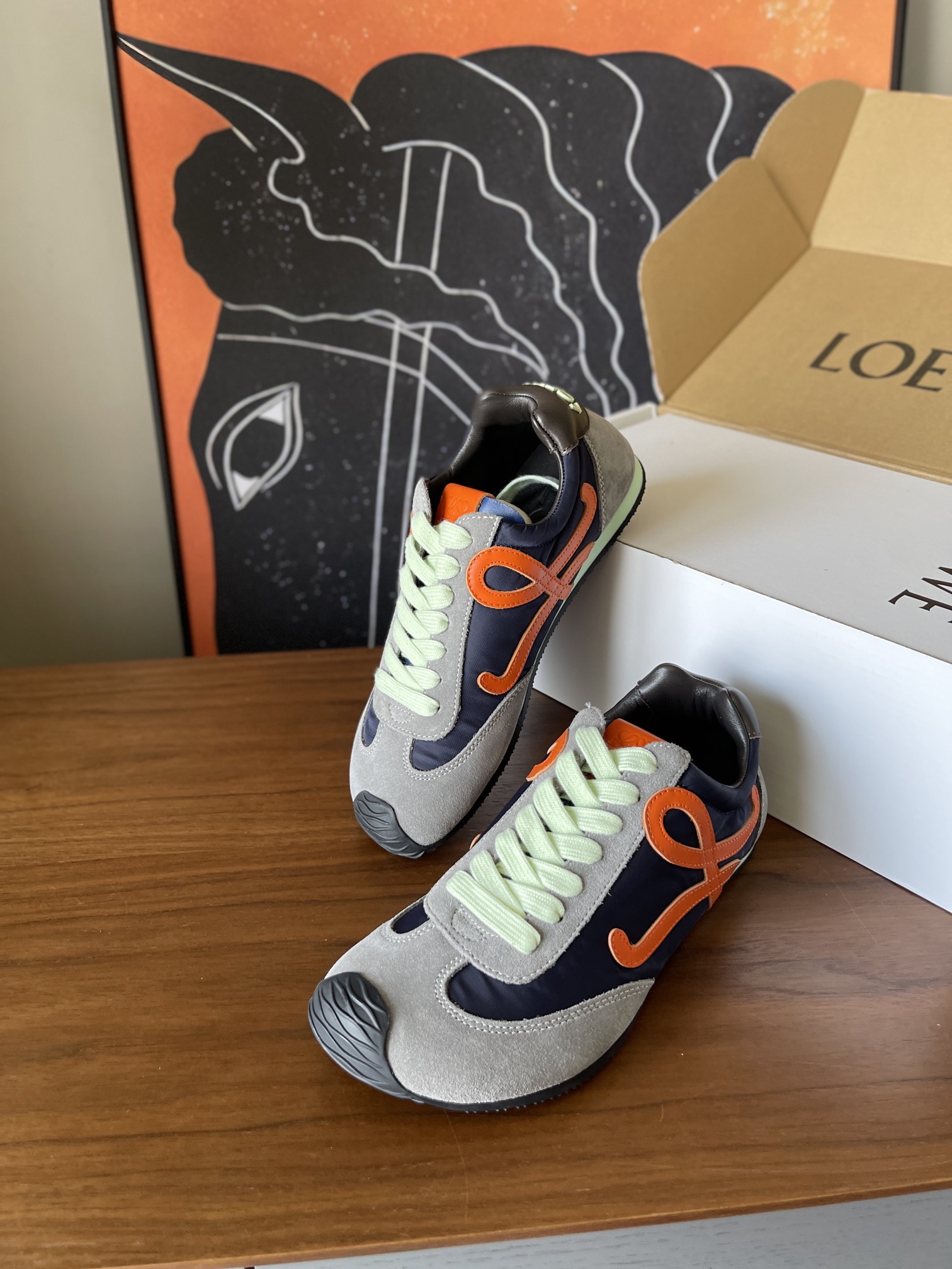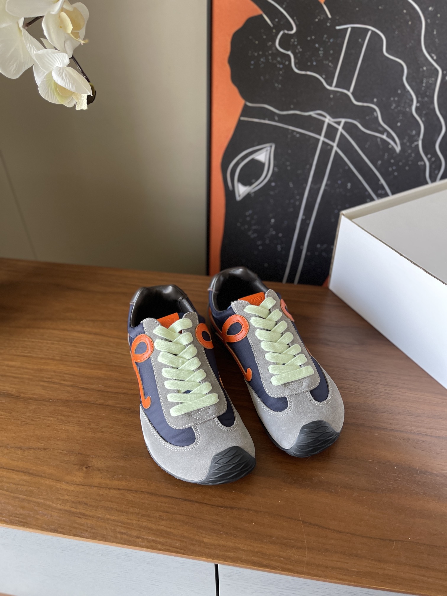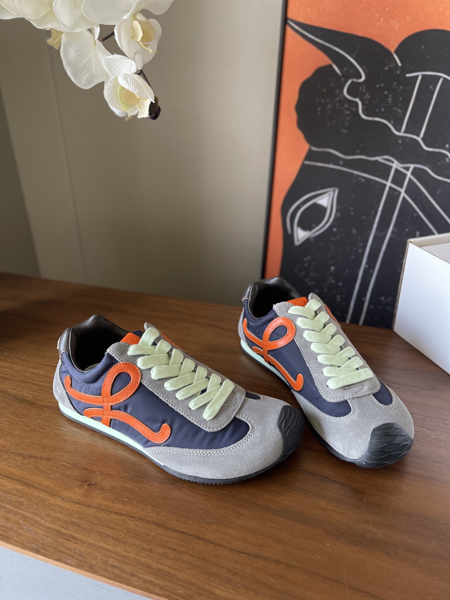 这款鞋子是AAAAA 1:1 质量 (非常棒). 使用了和原版一模一样的材料. 商标部分也保持了和罗意威/Loewe一样. 图片拍摄是实物鞋子拍摄, 您所收到的实物保证和我们图片一模一样.