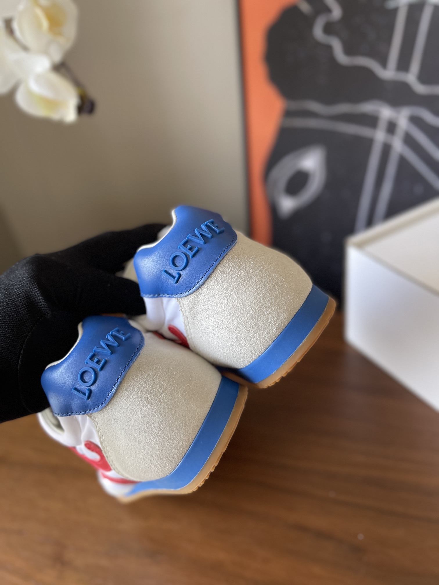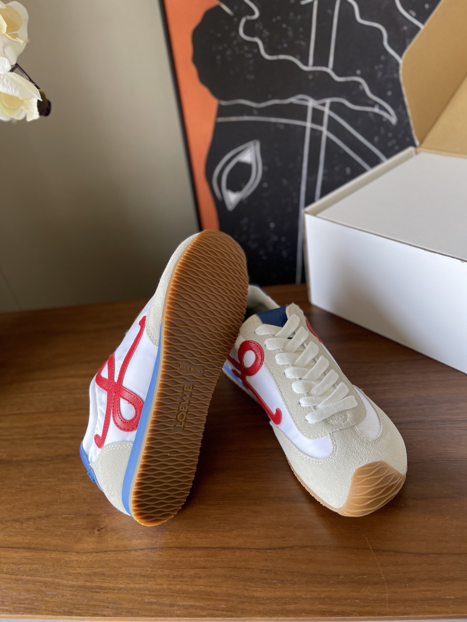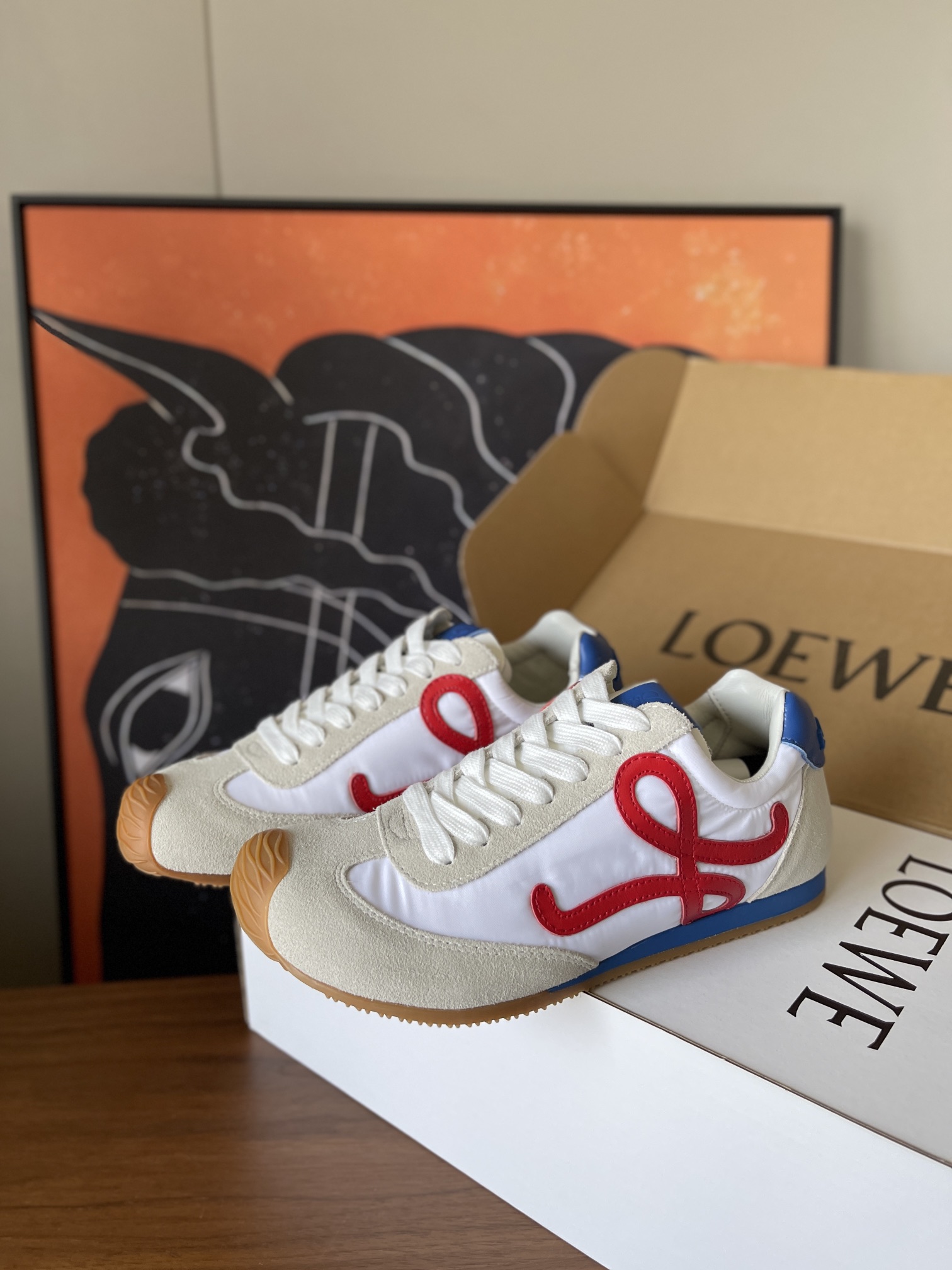 这款鞋子是AAAAA 1:1 质量 (非常棒). 使用了和原版一模一样的材料. 商标部分也保持了和罗意威/Loewe一样. 图片拍摄是实物鞋子拍摄, 您所收到的实物保证和我们图片一模一样.