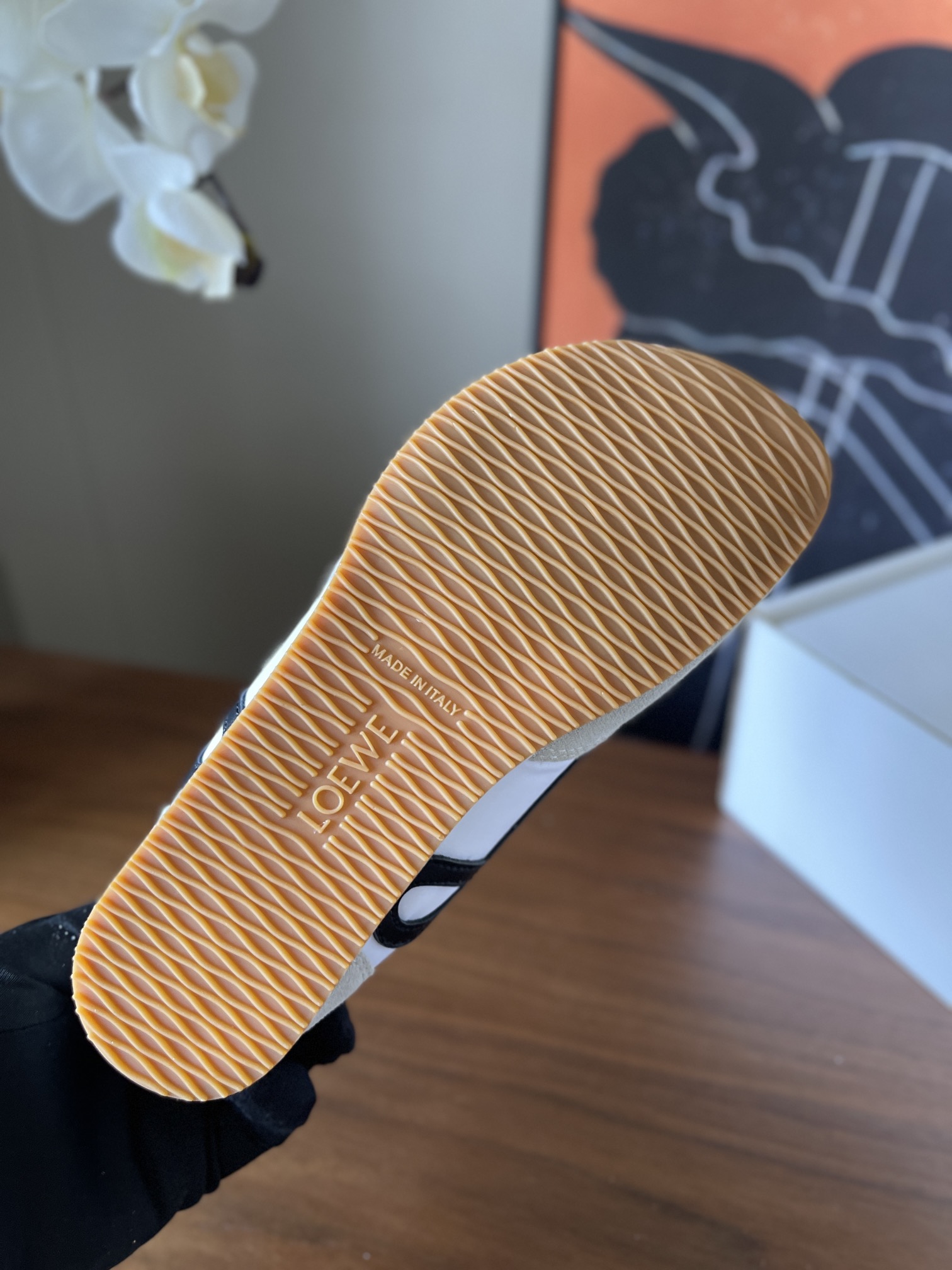 这款鞋子是AAAAA 1:1 质量 (非常棒). 使用了和原版一模一样的材料. 商标部分也保持了和罗意威/Loewe一样. 图片拍摄是实物鞋子拍摄, 您所收到的实物保证和我们图片一模一样.