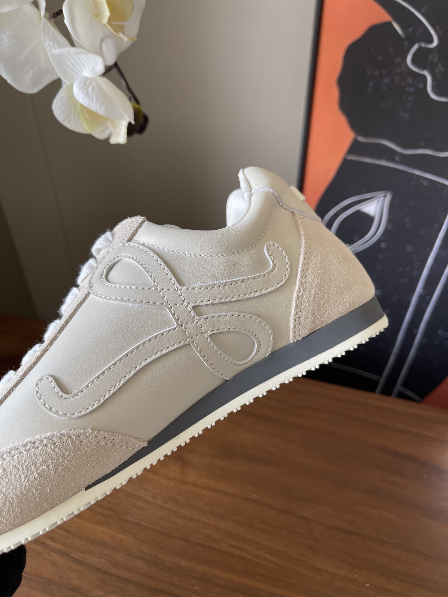 这款鞋子是AAAAA 1:1 质量 (非常棒). 使用了和原版一模一样的材料. 商标部分也保持了和罗意威/Loewe一样. 图片拍摄是实物鞋子拍摄, 您所收到的实物保证和我们图片一模一样.