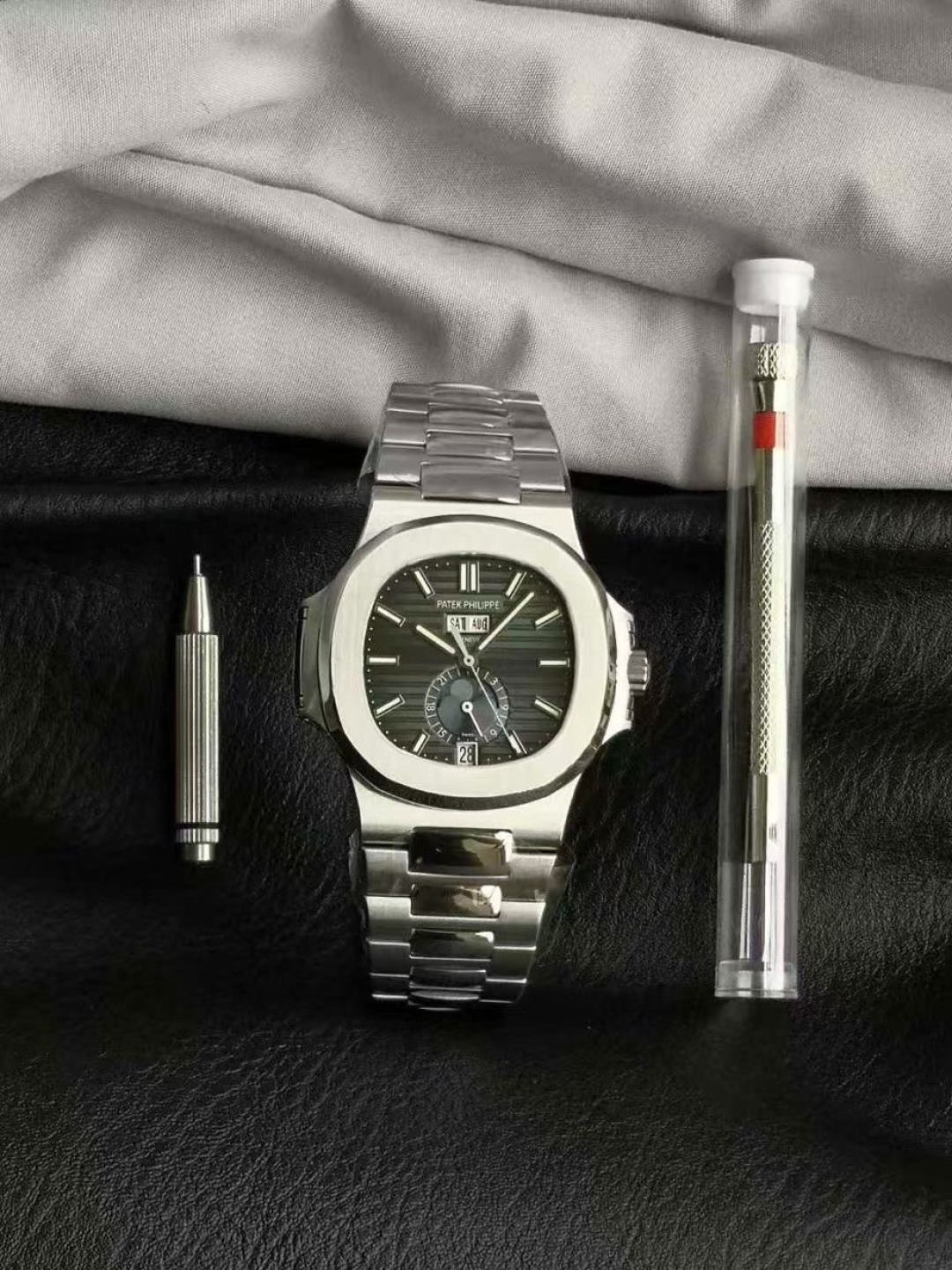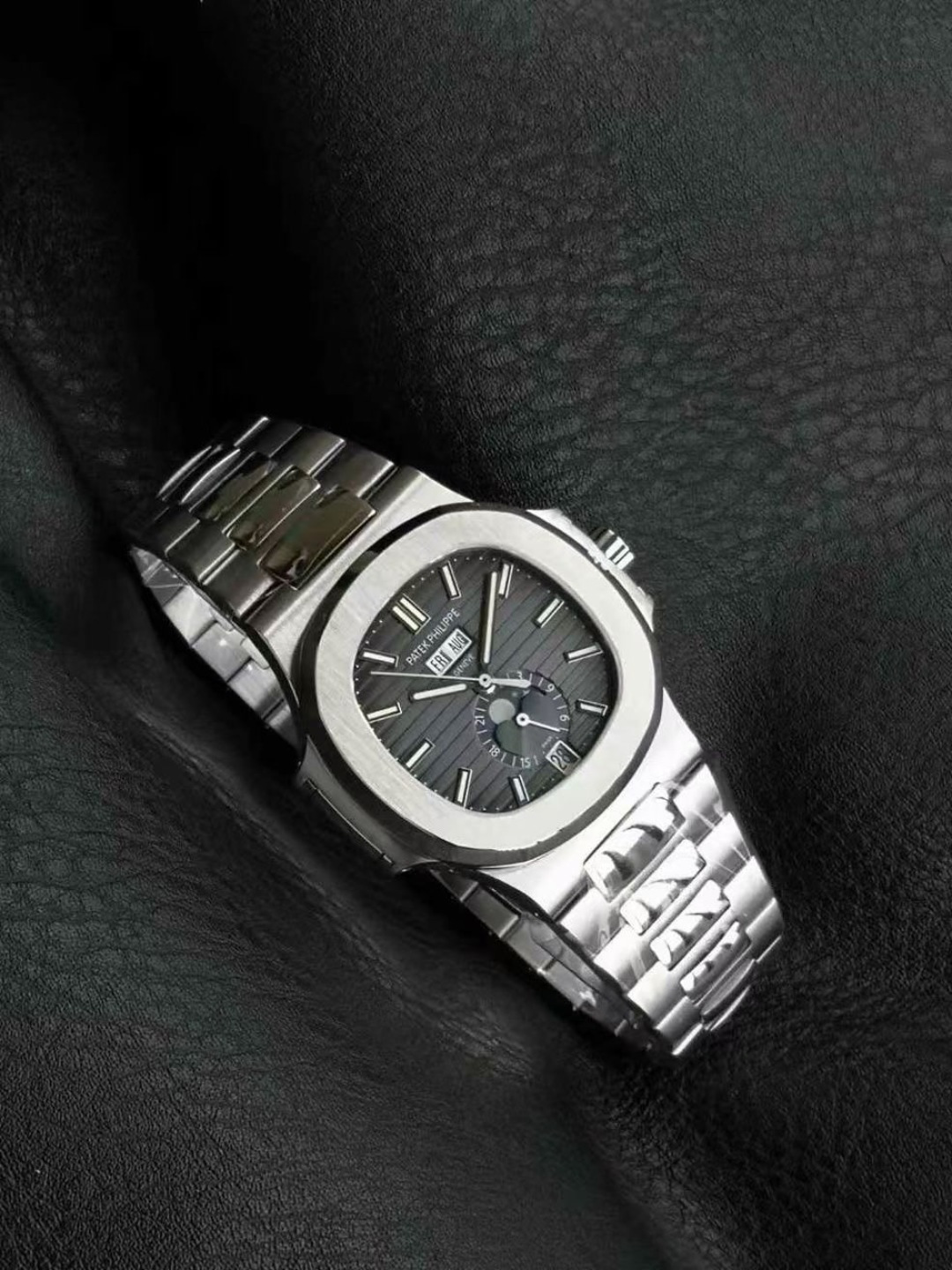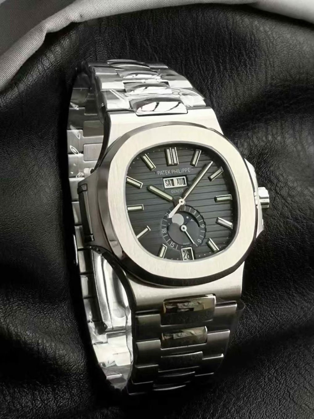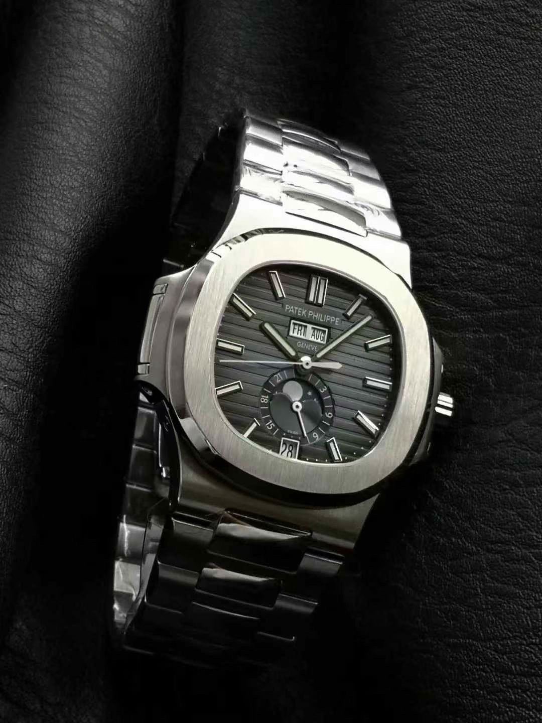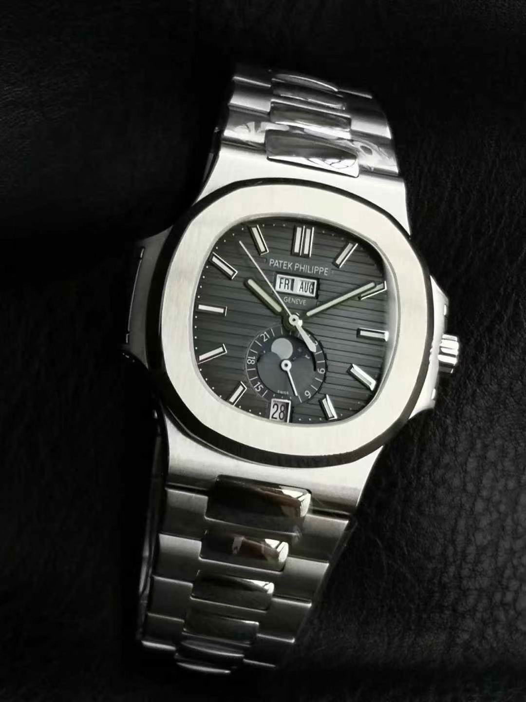 这款手表是AAAAA 1:1 质量 (非常棒). 使用了和原版一模一样的材料. 商标部分也保持了和百达翡丽/Patek Philippe一样. 图片拍摄是实物手表拍摄, 您所收到的实物保证和我们图片一模一样.