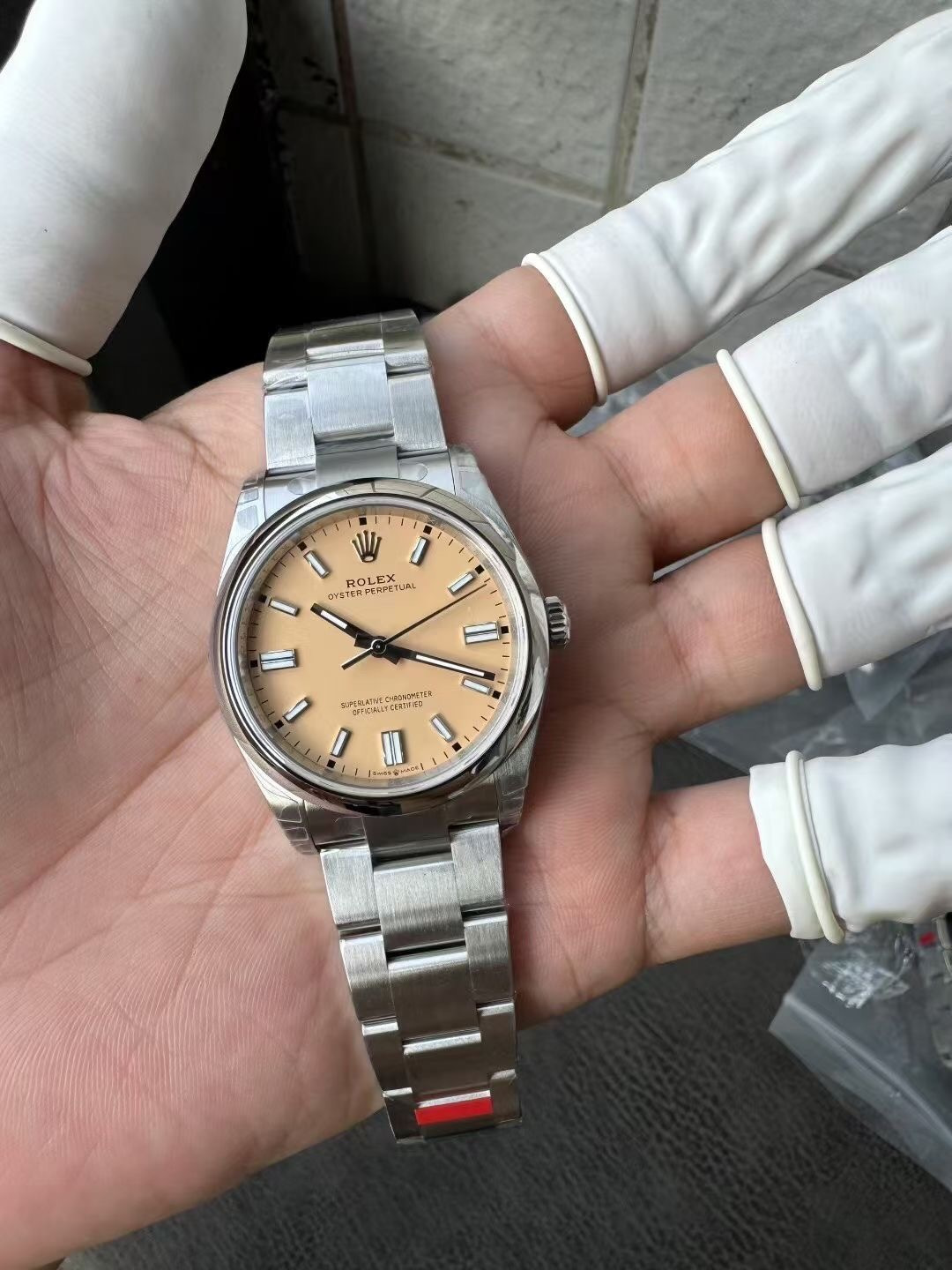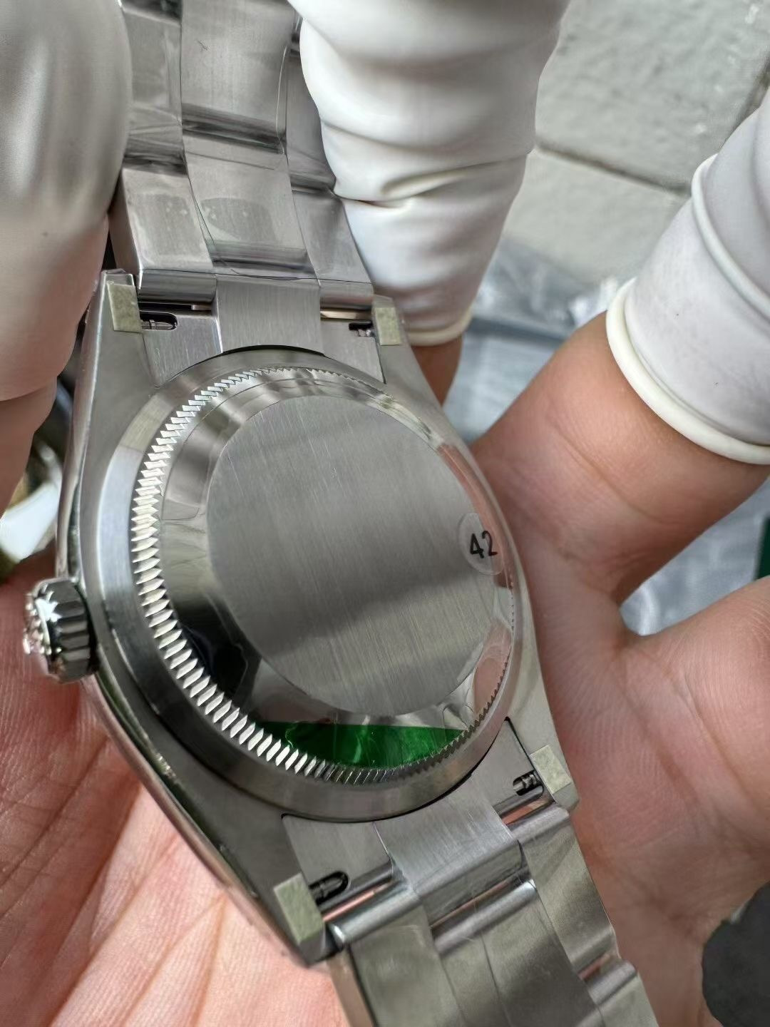 这款手表是AAAAA 1:1 质量 (非常棒). 使用了和原版一模一样的材料. 商标部分也保持了和劳力士/Rolex一样. 图片拍摄是实物手表拍摄, 您所收到的实物保证和我们图片一模一样.