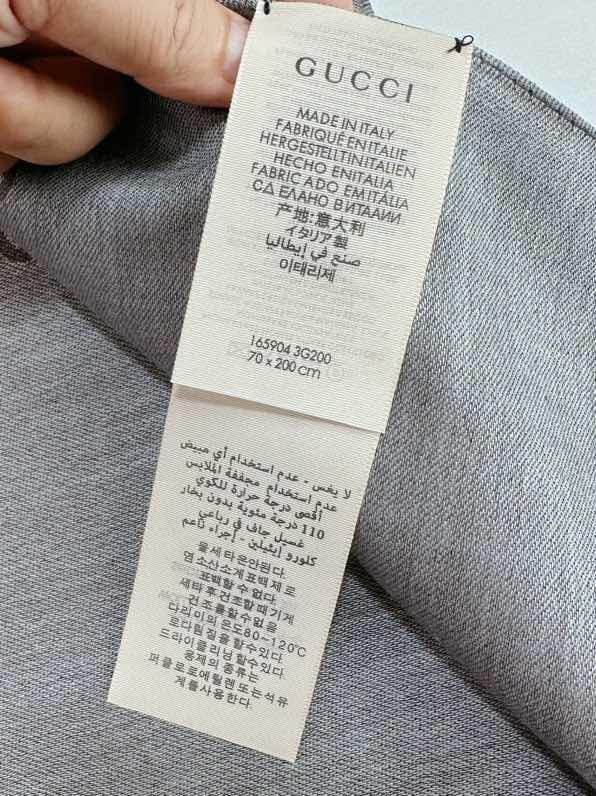 这款围巾是AAAAA 1:1 质量 (非常棒). 使用了和原版一模一样的材料. 商标部分也保持了和古奇/Gucci一样. 图片拍摄是实物围巾拍摄, 您所收到的实物保证和我们图片一模一样.