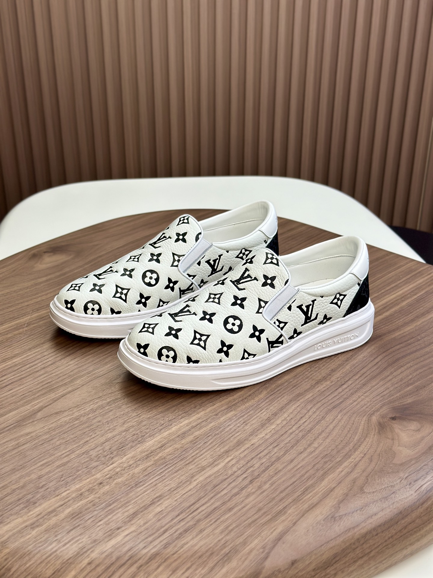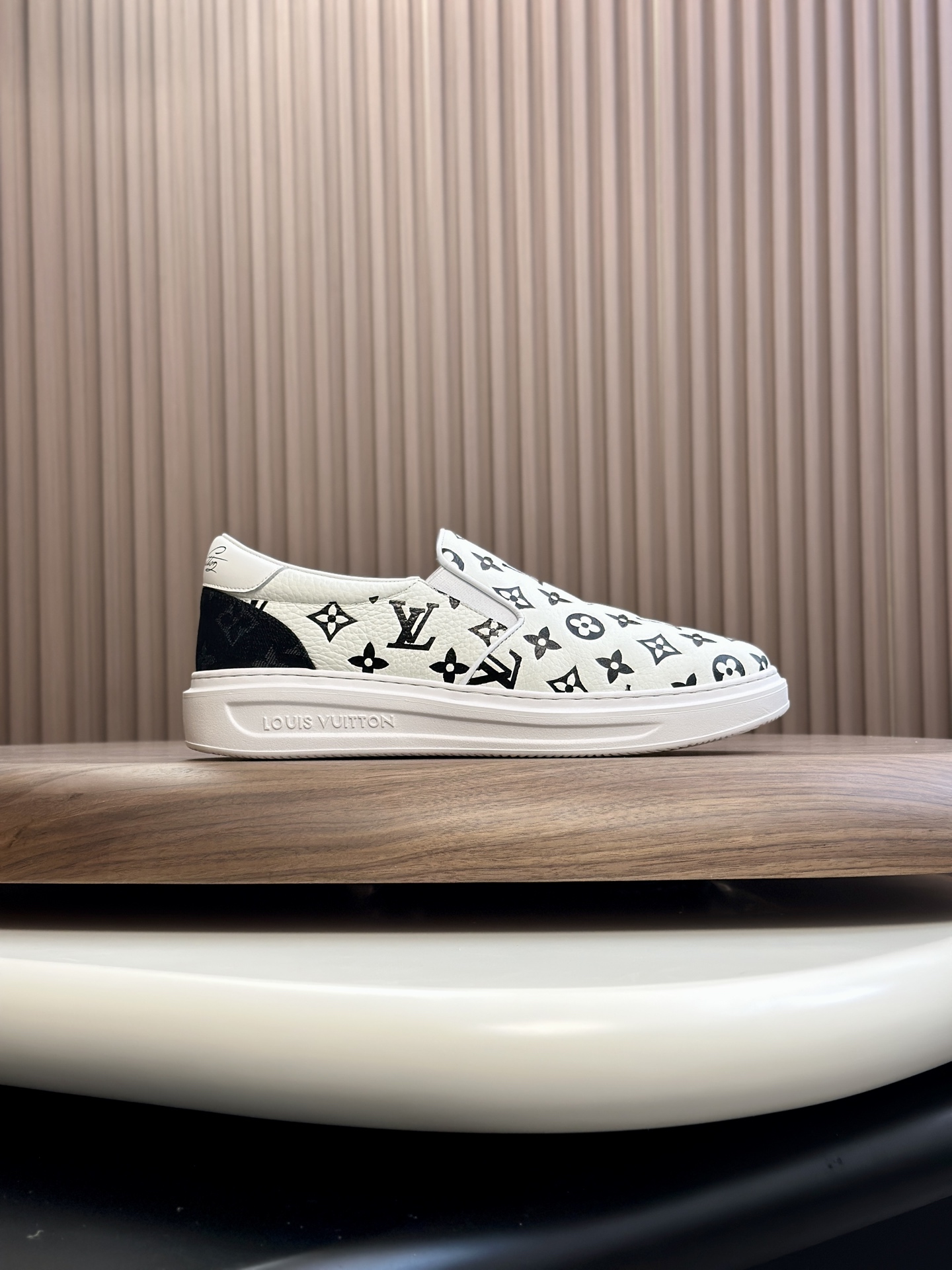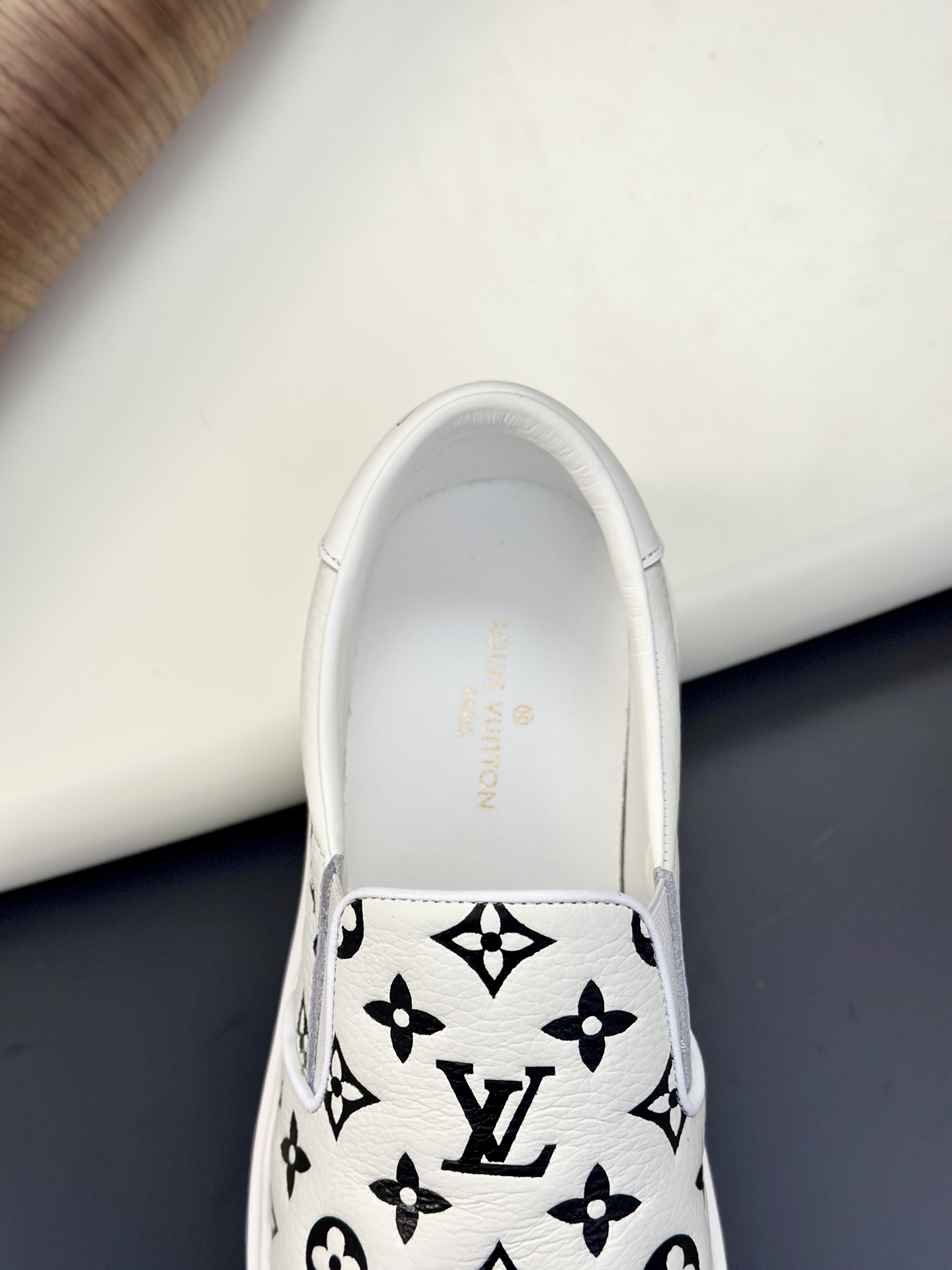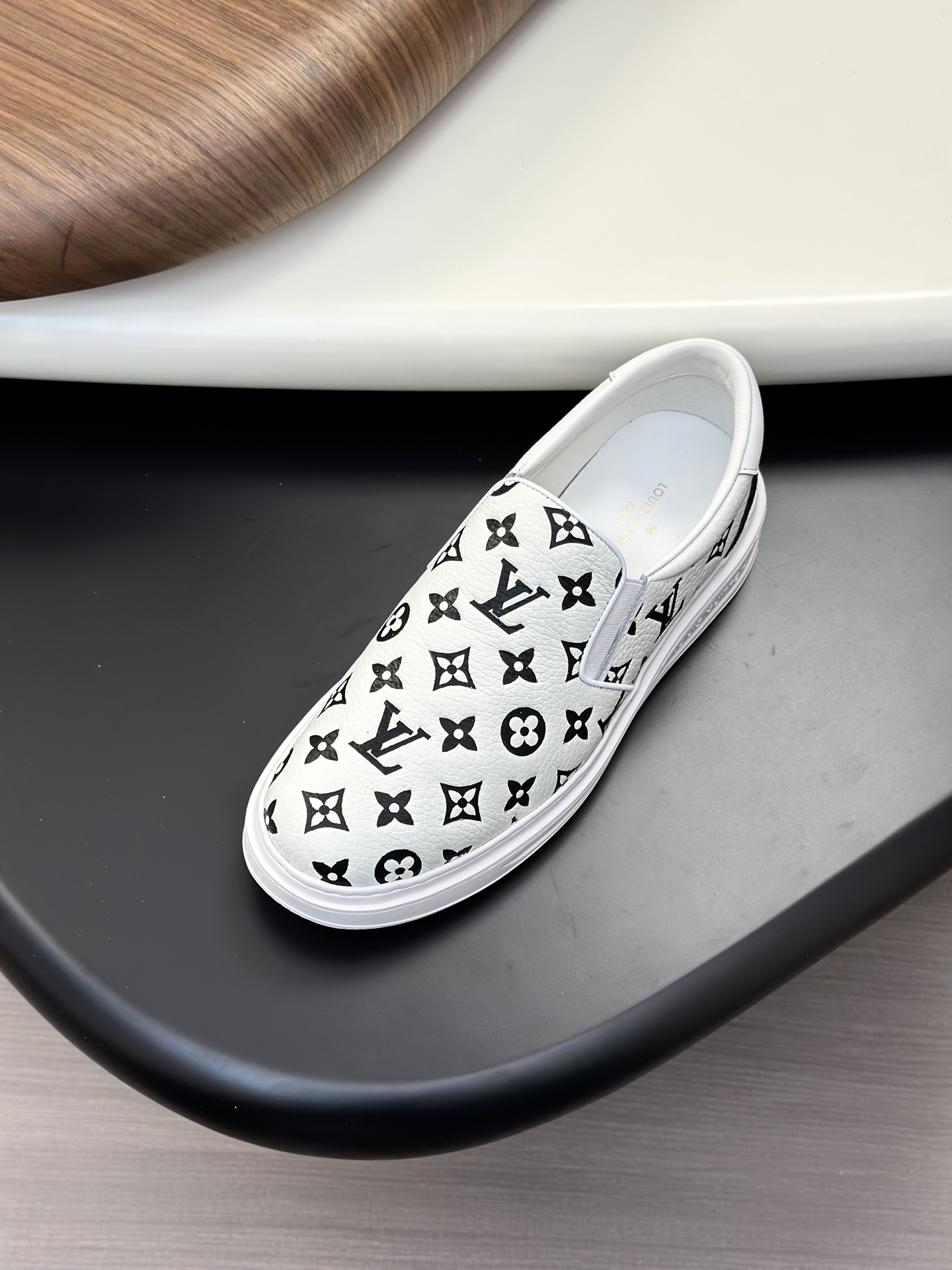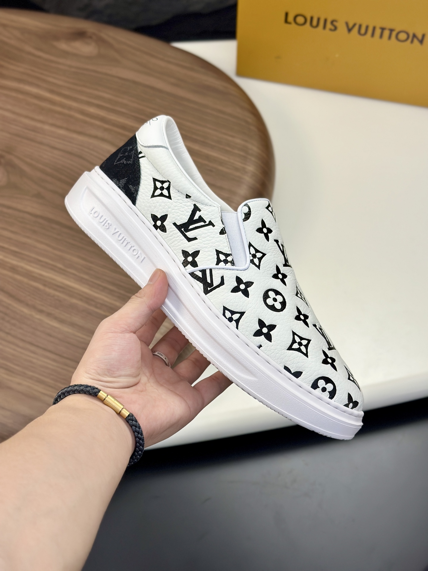 这款鞋子是AAAAA 1:1 质量 (非常棒). 使用了和原版一模一样的材料. 商标部分也保持了和路易威登/Louis Vuitton一样. 图片拍摄是实物鞋子拍摄, 您所收到的实物保证和我们图片一模一样.