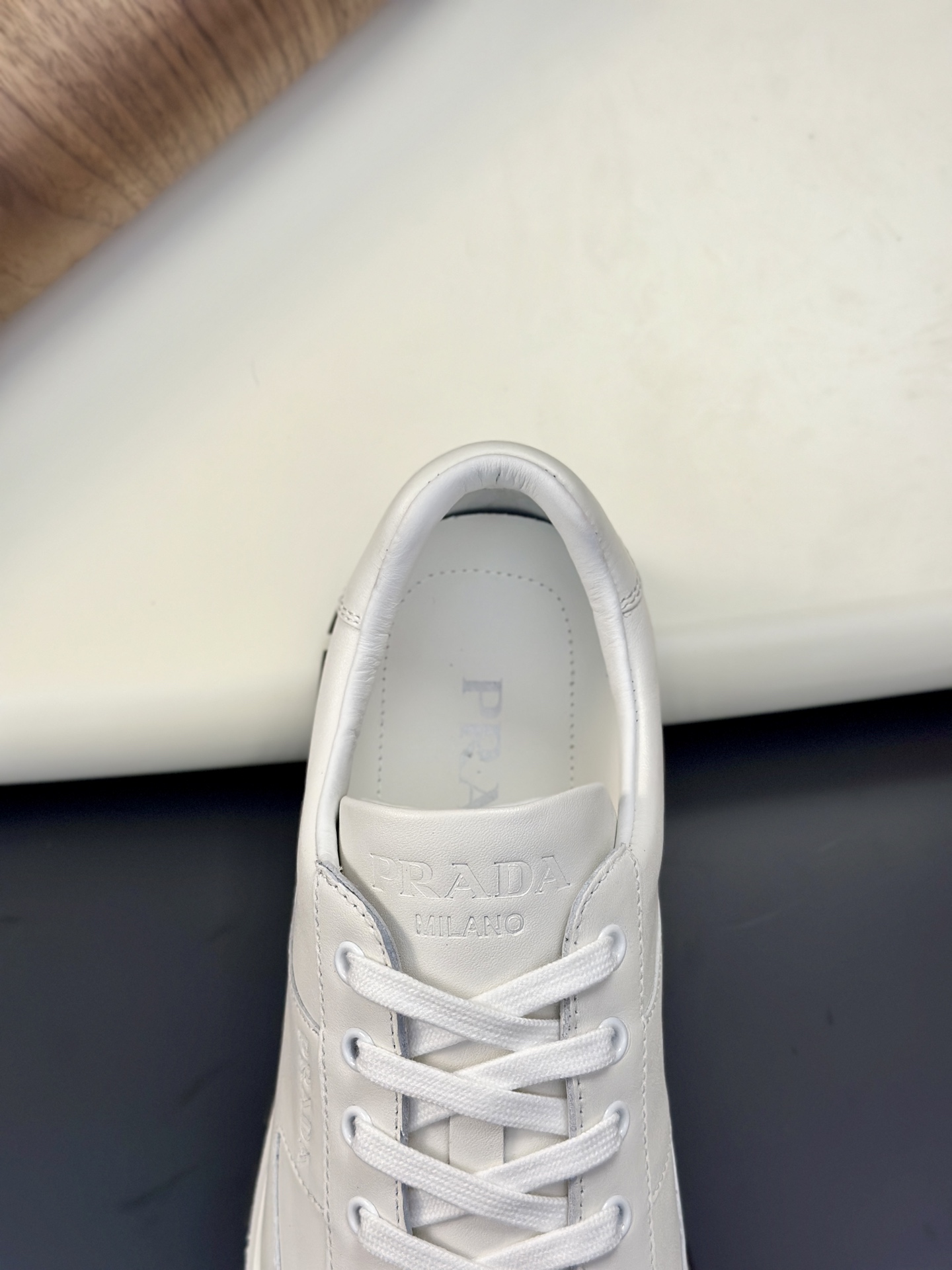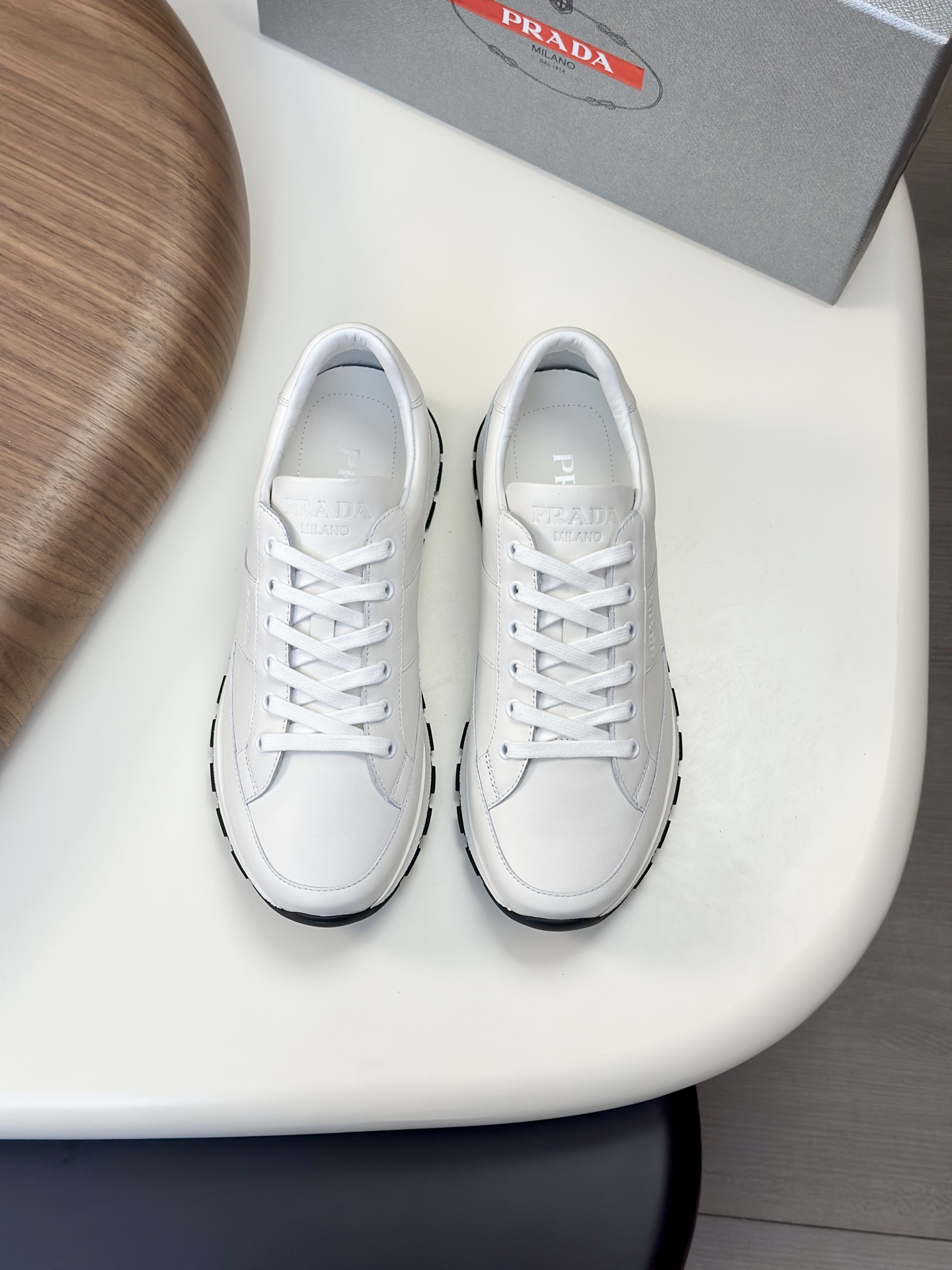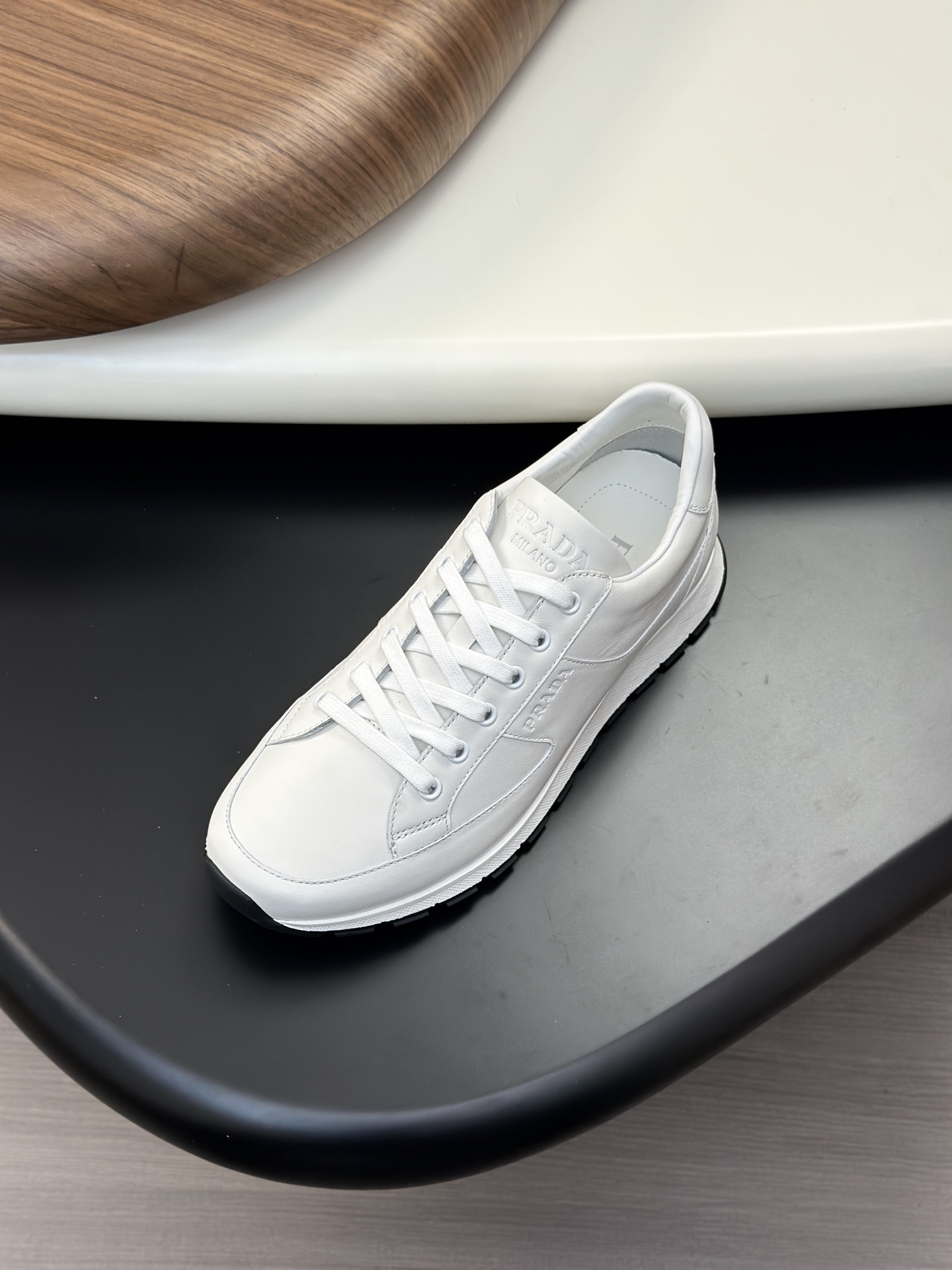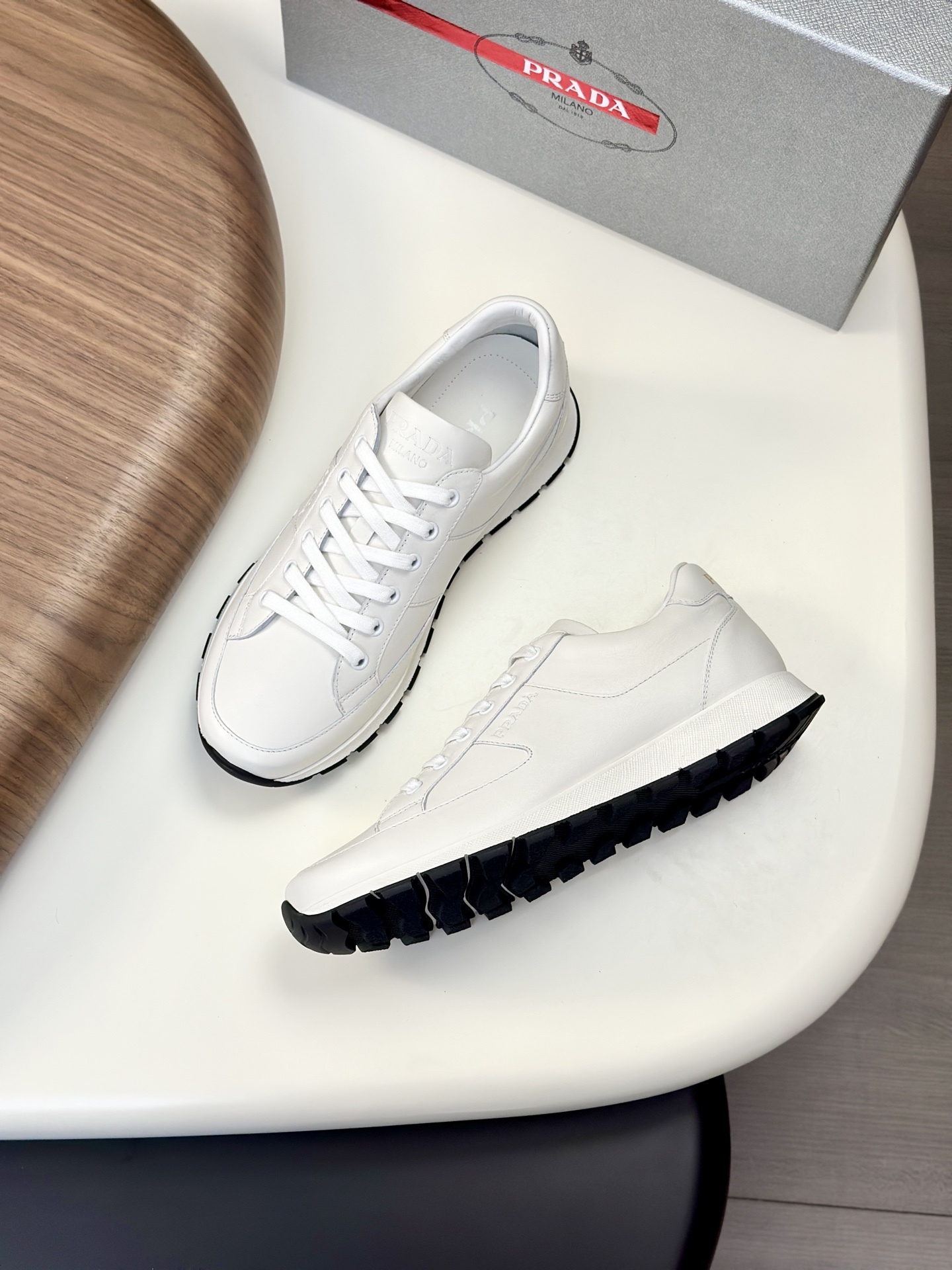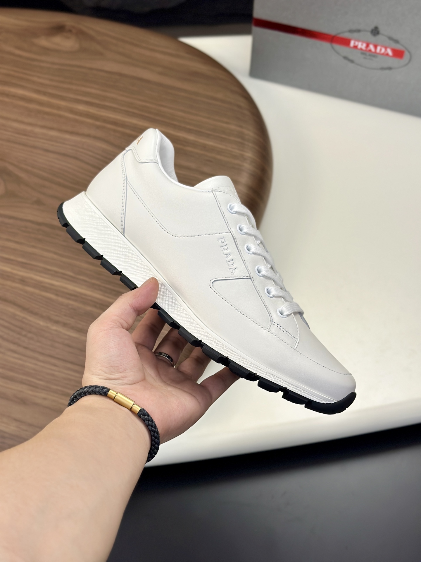 这款鞋子是AAAAA 1:1 质量 (非常棒). 使用了和原版一模一样的材料. 商标部分也保持了和普拉达/Prada一样. 图片拍摄是实物鞋子拍摄, 您所收到的实物保证和我们图片一模一样.