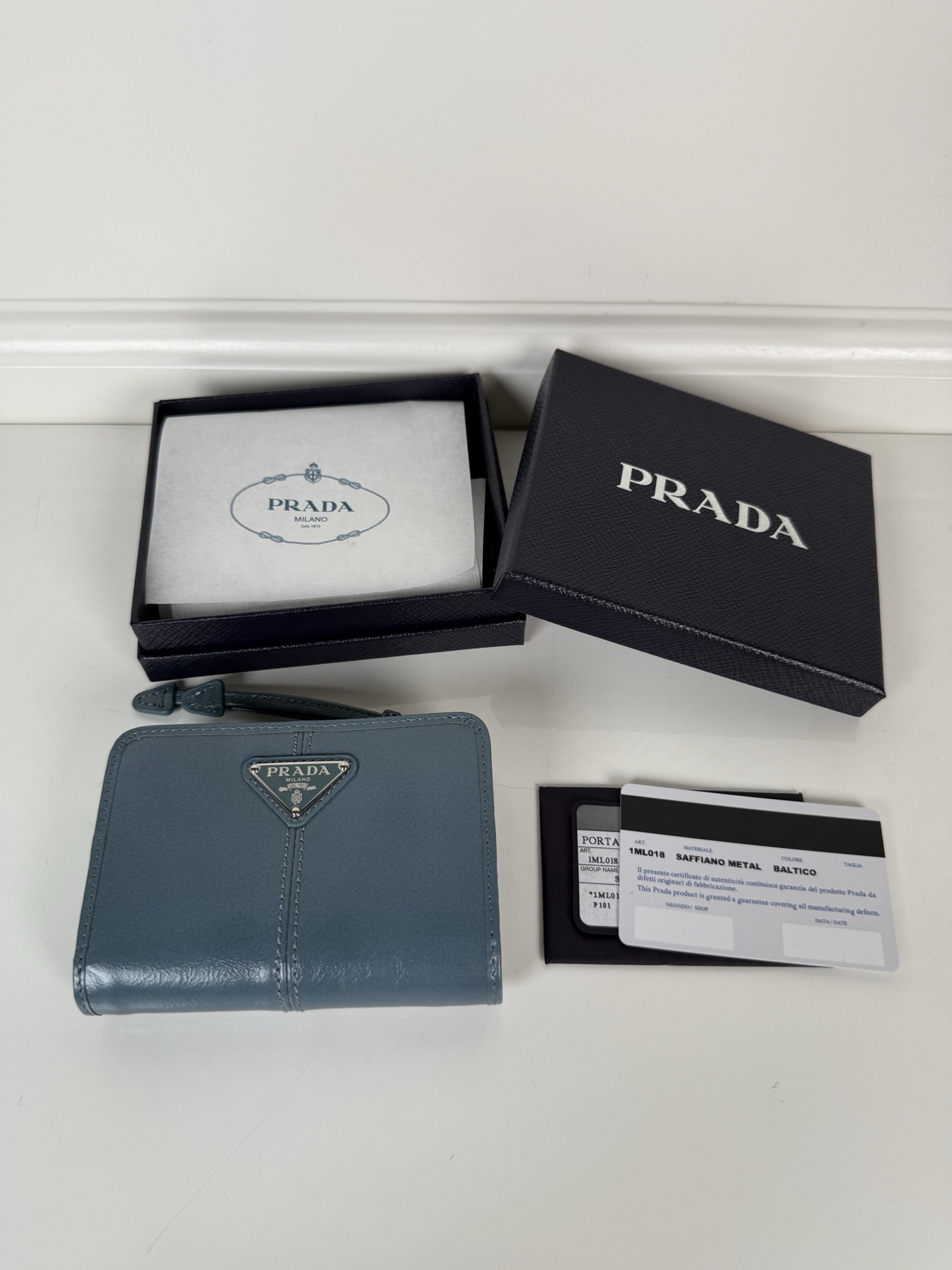 这款钱包是AAAAA 1:1 质量 (非常棒). 使用了和原版一模一样的材料. 商标部分也保持了和普拉达/Prada一样. 图片拍摄是实物钱包拍摄, 您所收到的实物保证和我们图片一模一样.