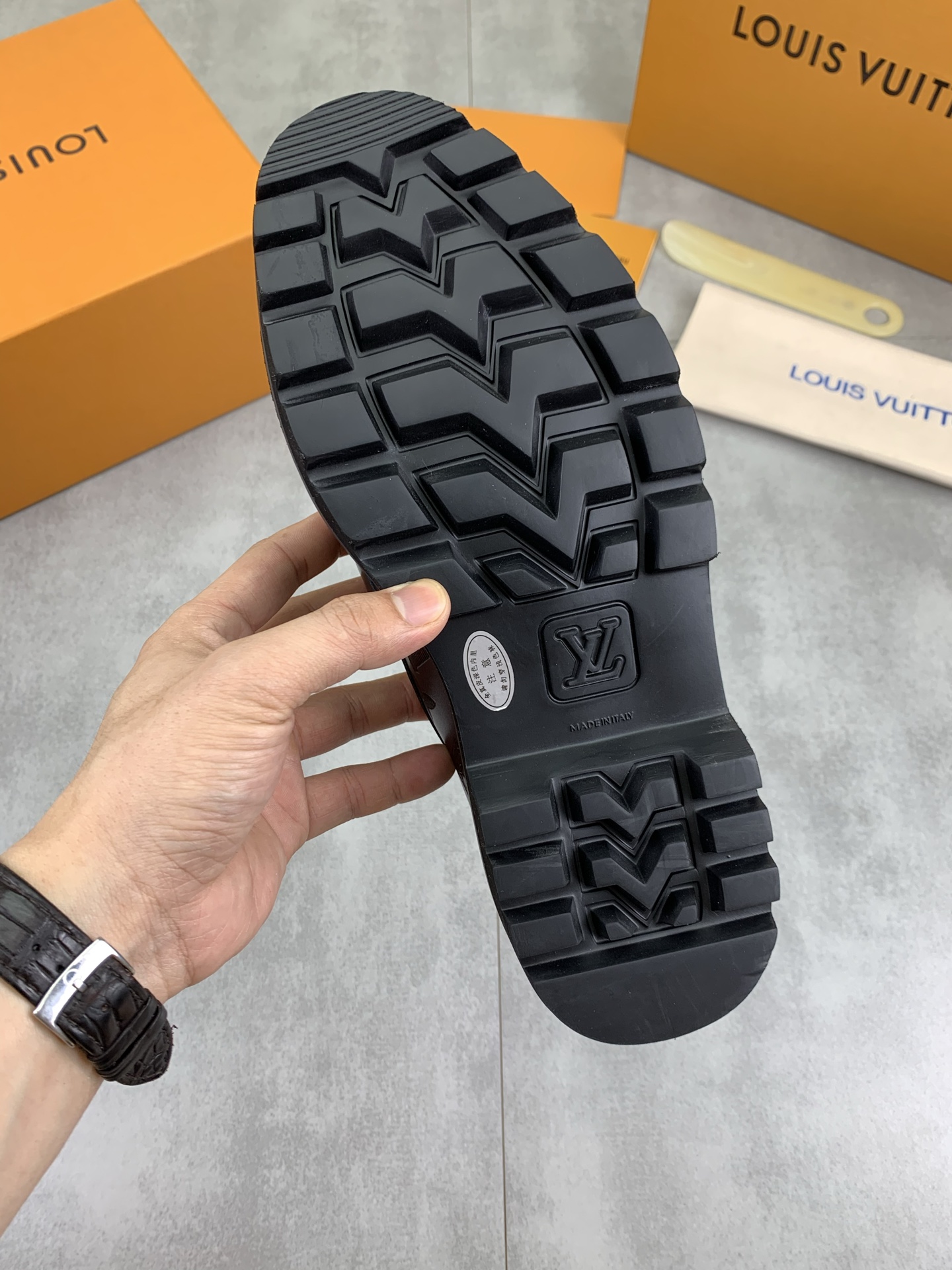 这款鞋子是AAAAA 1:1 质量 (非常棒). 使用了和原版一模一样的材料. 商标部分也保持了和路易威登/Louis Vuitton一样. 图片拍摄是实物鞋子拍摄, 您所收到的实物保证和我们图片一模一样.