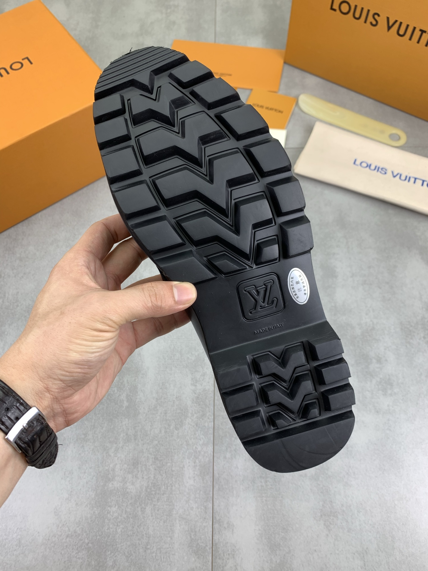 这款鞋子是AAAAA 1:1 质量 (非常棒). 使用了和原版一模一样的材料. 商标部分也保持了和路易威登/Louis Vuitton一样. 图片拍摄是实物鞋子拍摄, 您所收到的实物保证和我们图片一模一样.