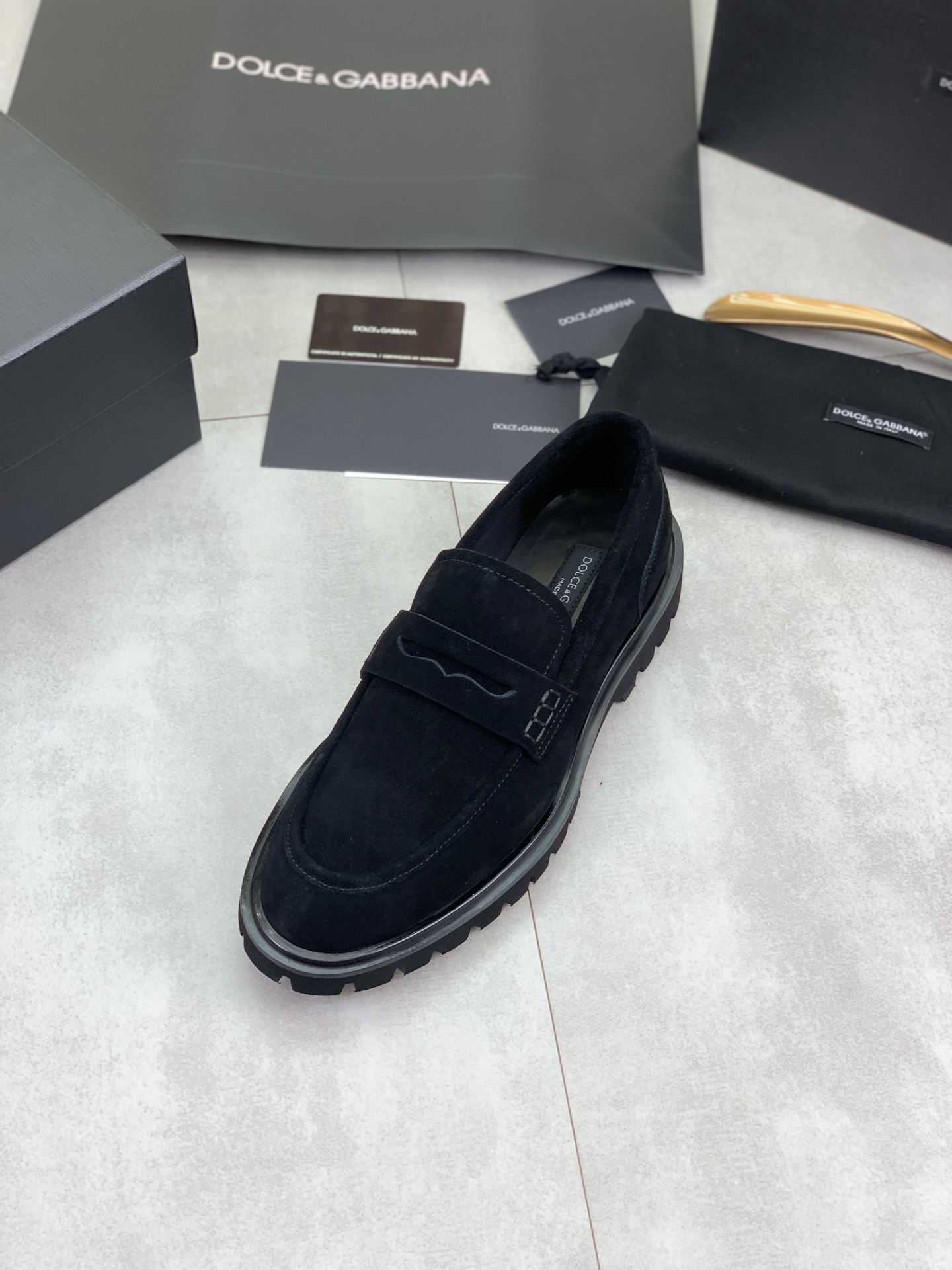 这款鞋子是AAAAA 1:1 质量 (非常棒). 使用了和原版一模一样的材料. 商标部分也保持了和杜嘉班纳/Dolce&Gabbana一样. 图片拍摄是实物鞋子拍摄, 您所收到的实物保证和我们图片一模一样.