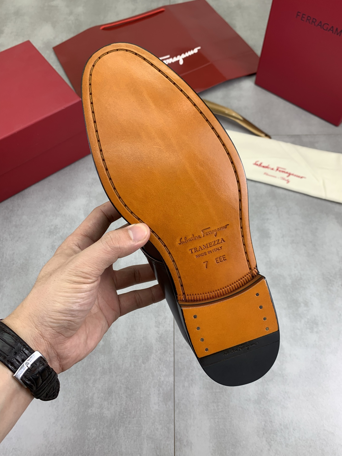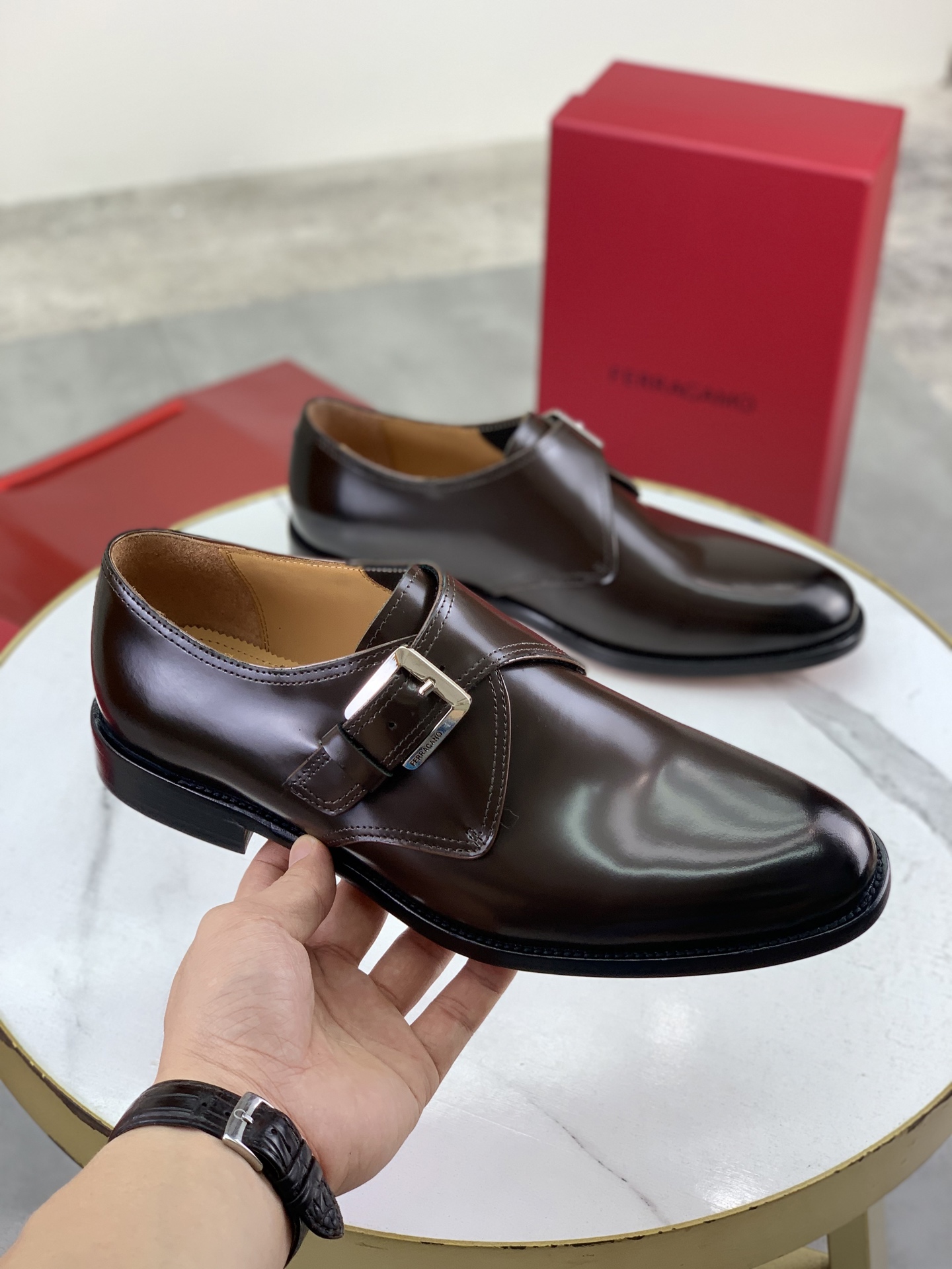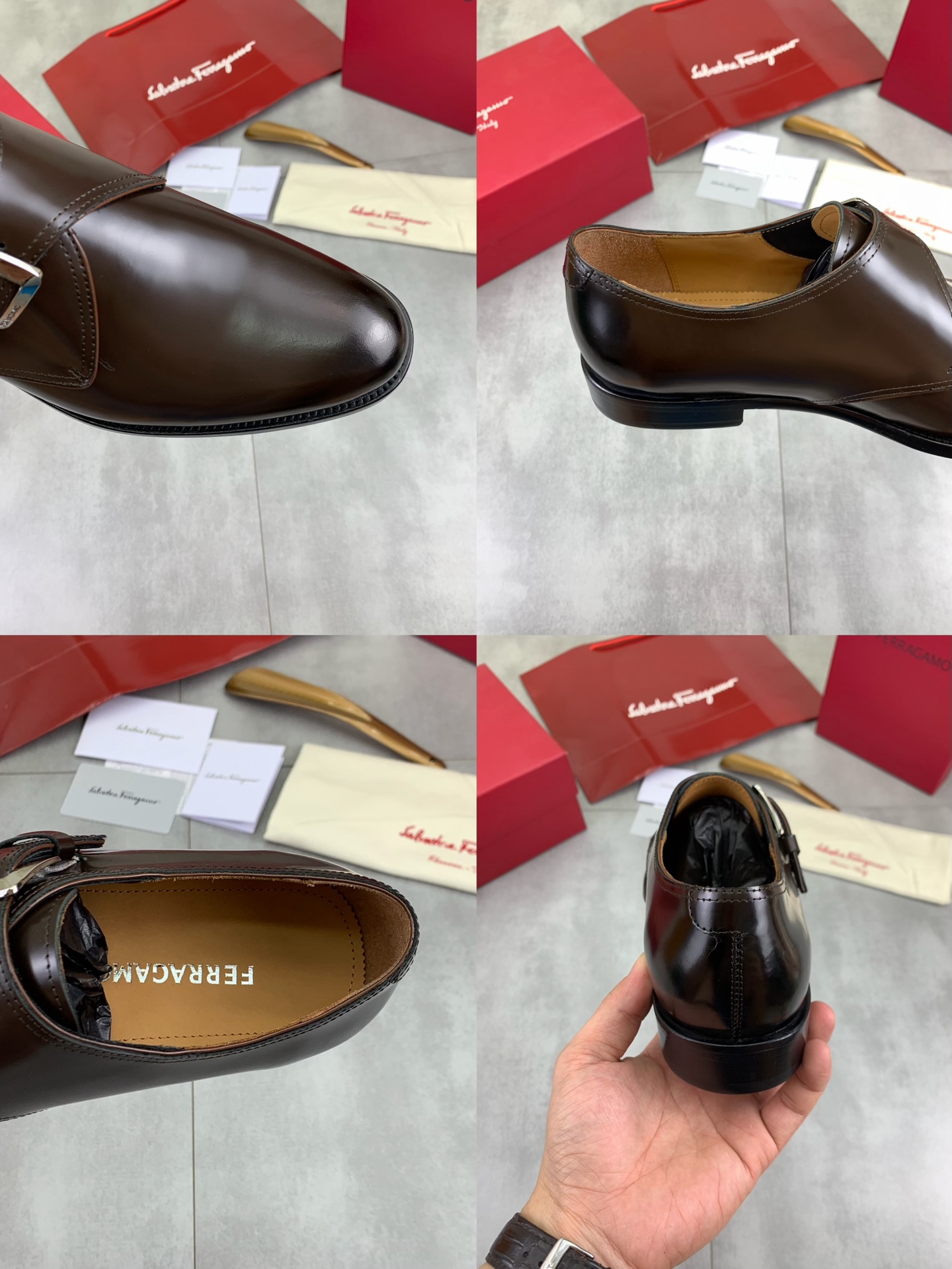 这款鞋子是AAAAA 1:1 质量 (非常棒). 使用了和原版一模一样的材料. 商标部分也保持了和菲拉格慕/Salvatore Ferragamo一样. 图片拍摄是实物鞋子拍摄, 您所收到的实物保证和我们图片一模一样.
