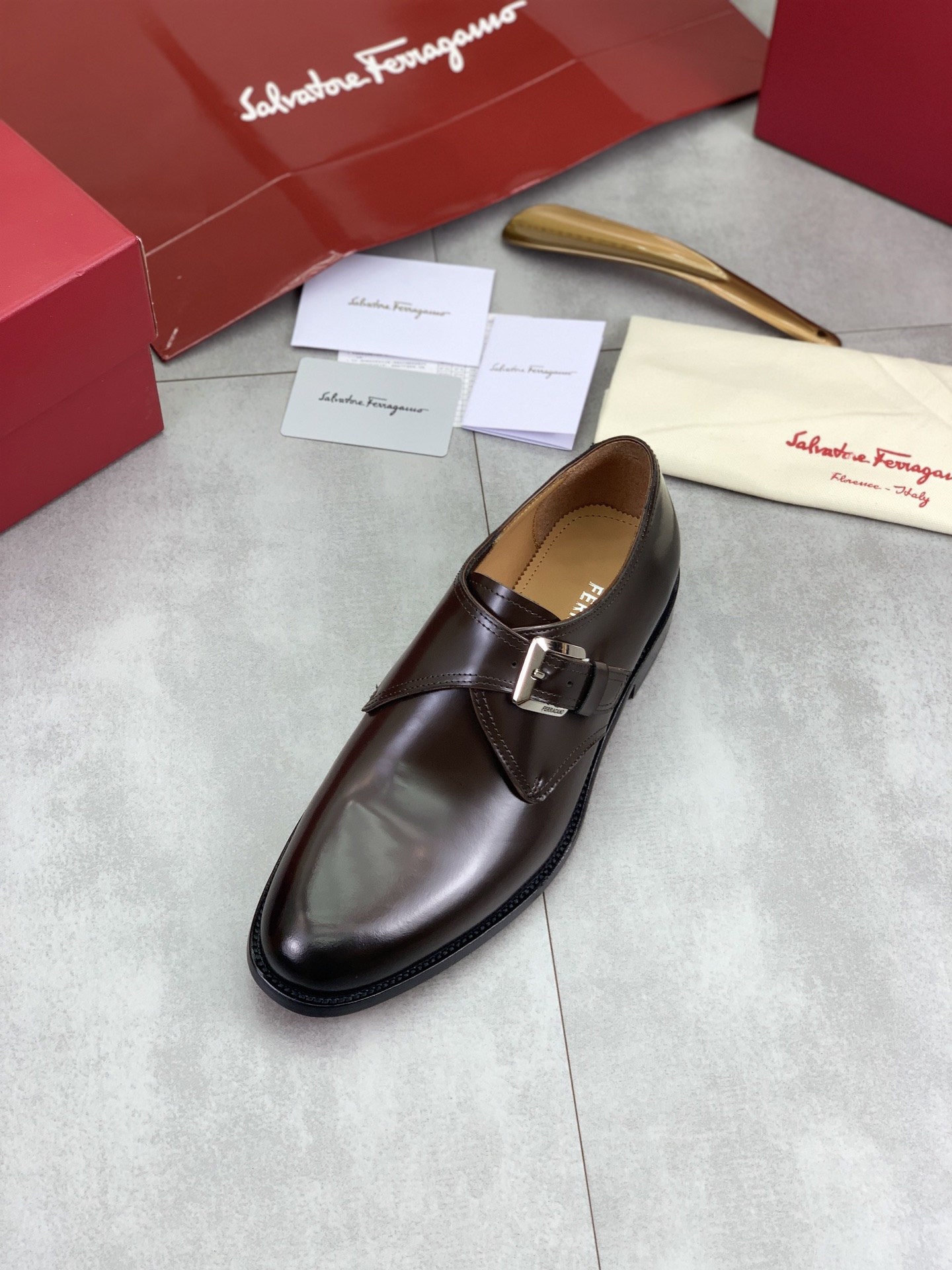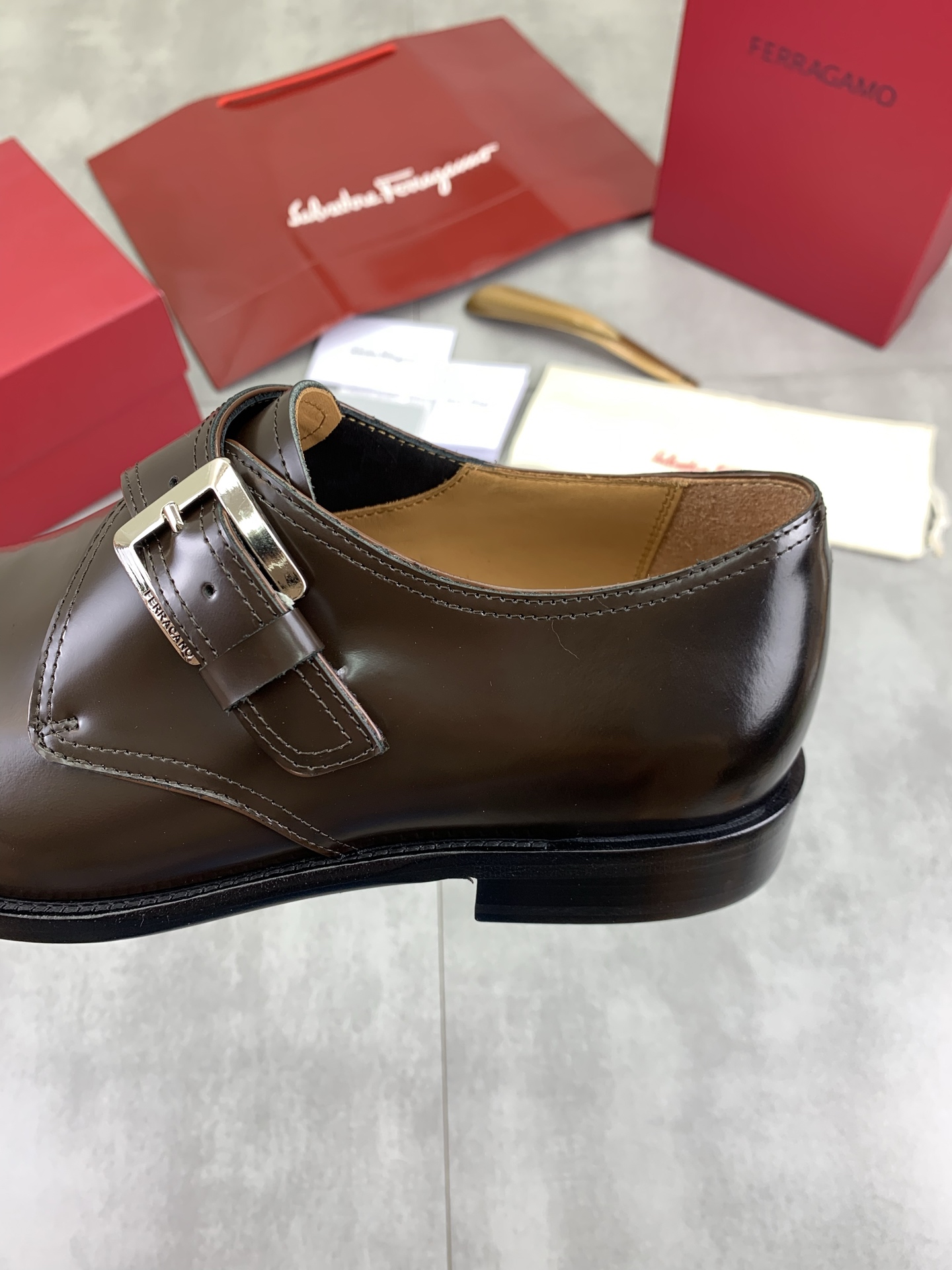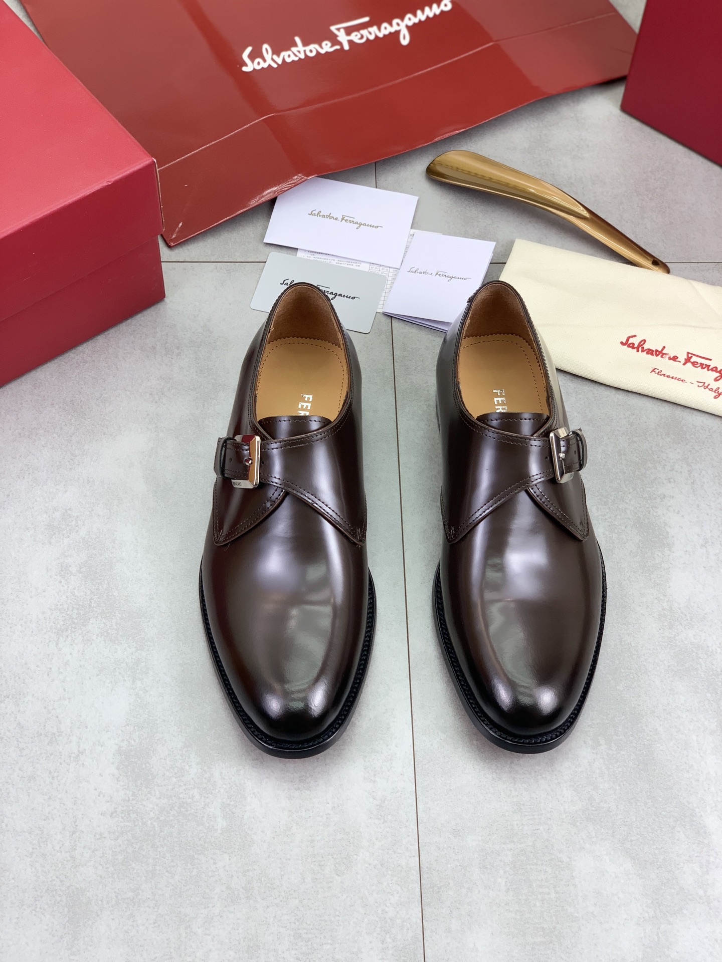 这款鞋子是AAAAA 1:1 质量 (非常棒). 使用了和原版一模一样的材料. 商标部分也保持了和菲拉格慕/Salvatore Ferragamo一样. 图片拍摄是实物鞋子拍摄, 您所收到的实物保证和我们图片一模一样.