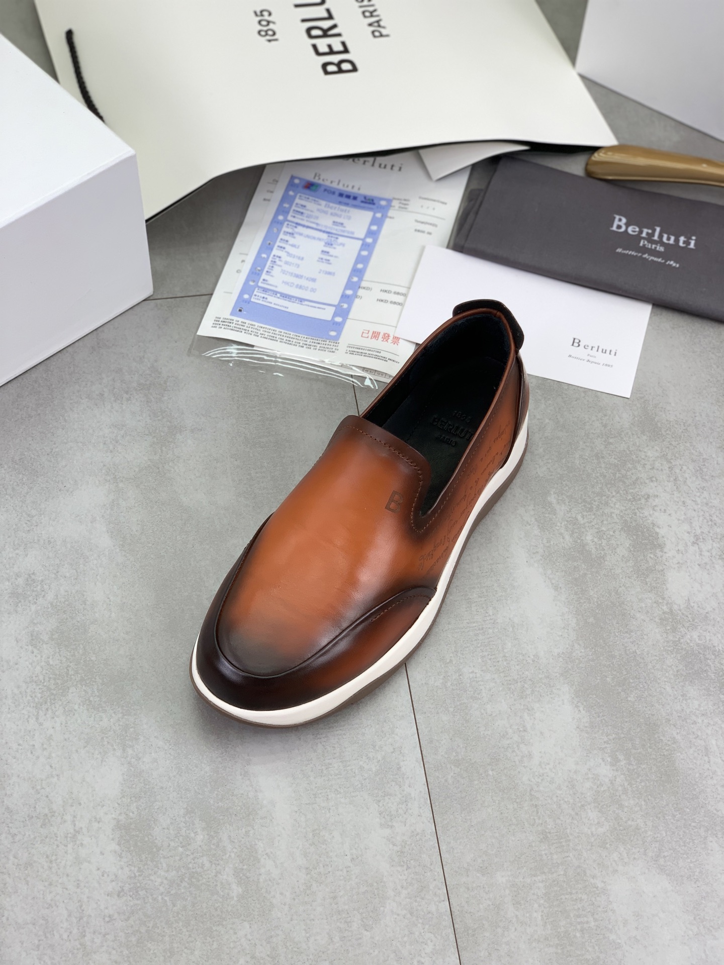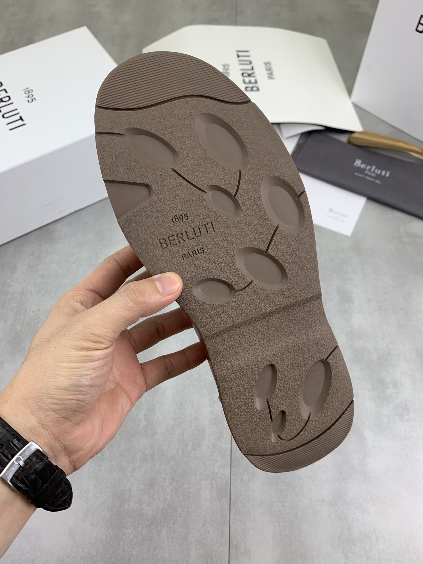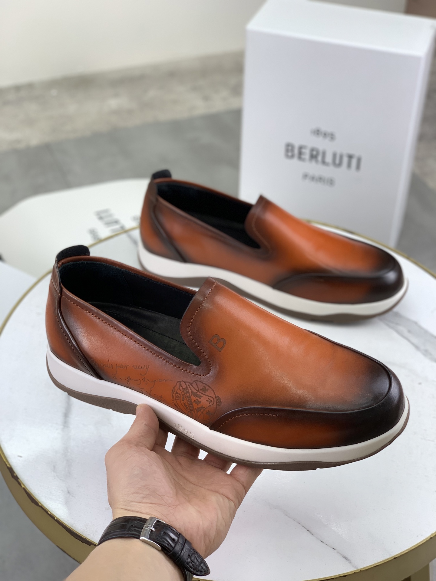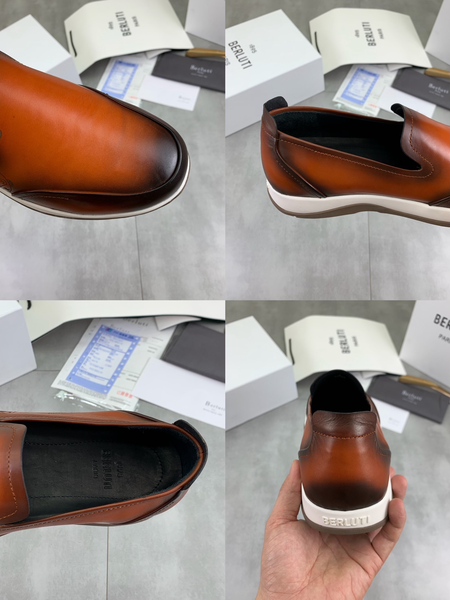 这款鞋子是AAAAA 1:1 质量 (非常棒). 使用了和原版一模一样的材料. 商标部分也保持了和Berluti一样. 图片拍摄是实物鞋子拍摄, 您所收到的实物保证和我们图片一模一样.