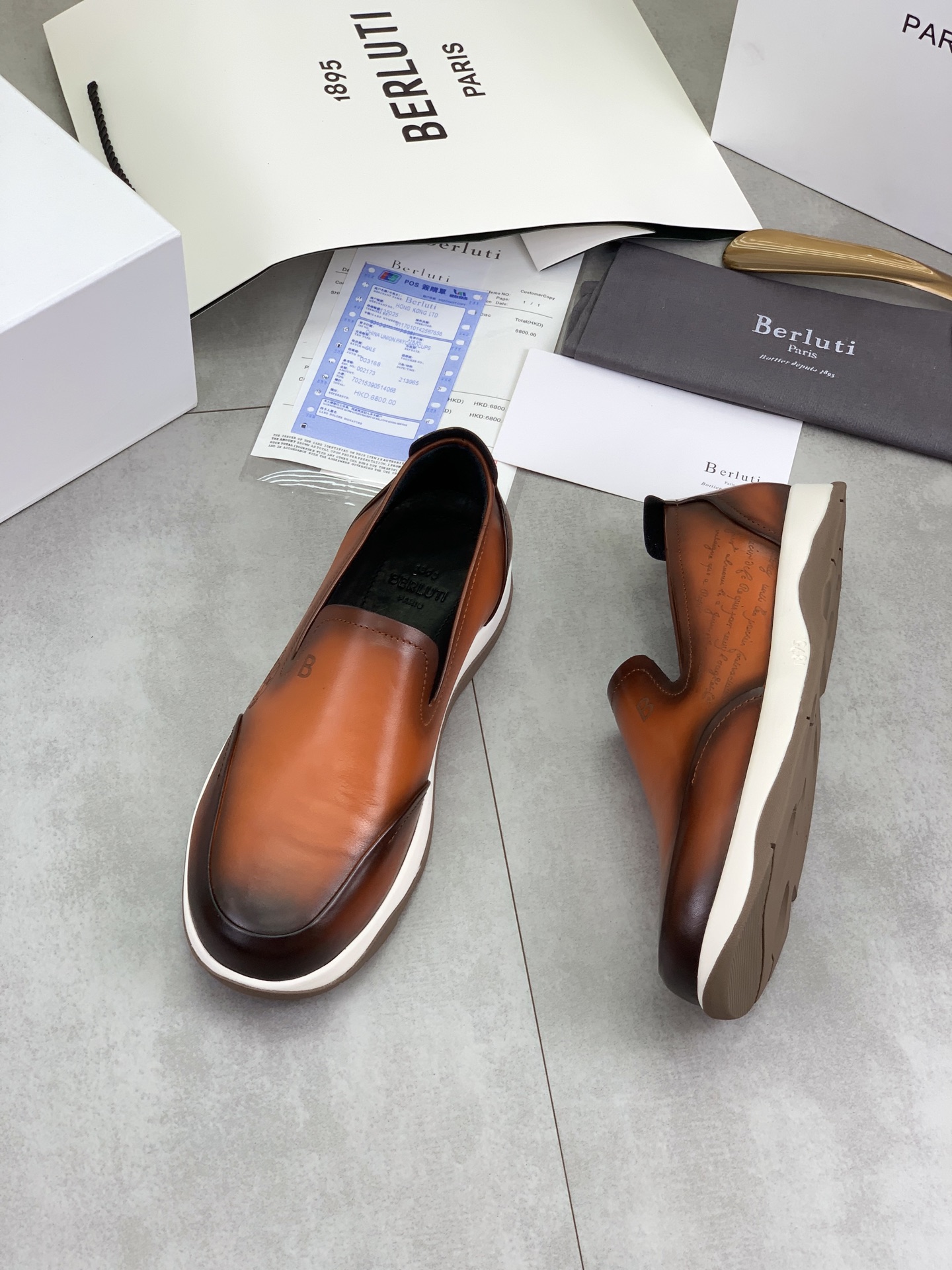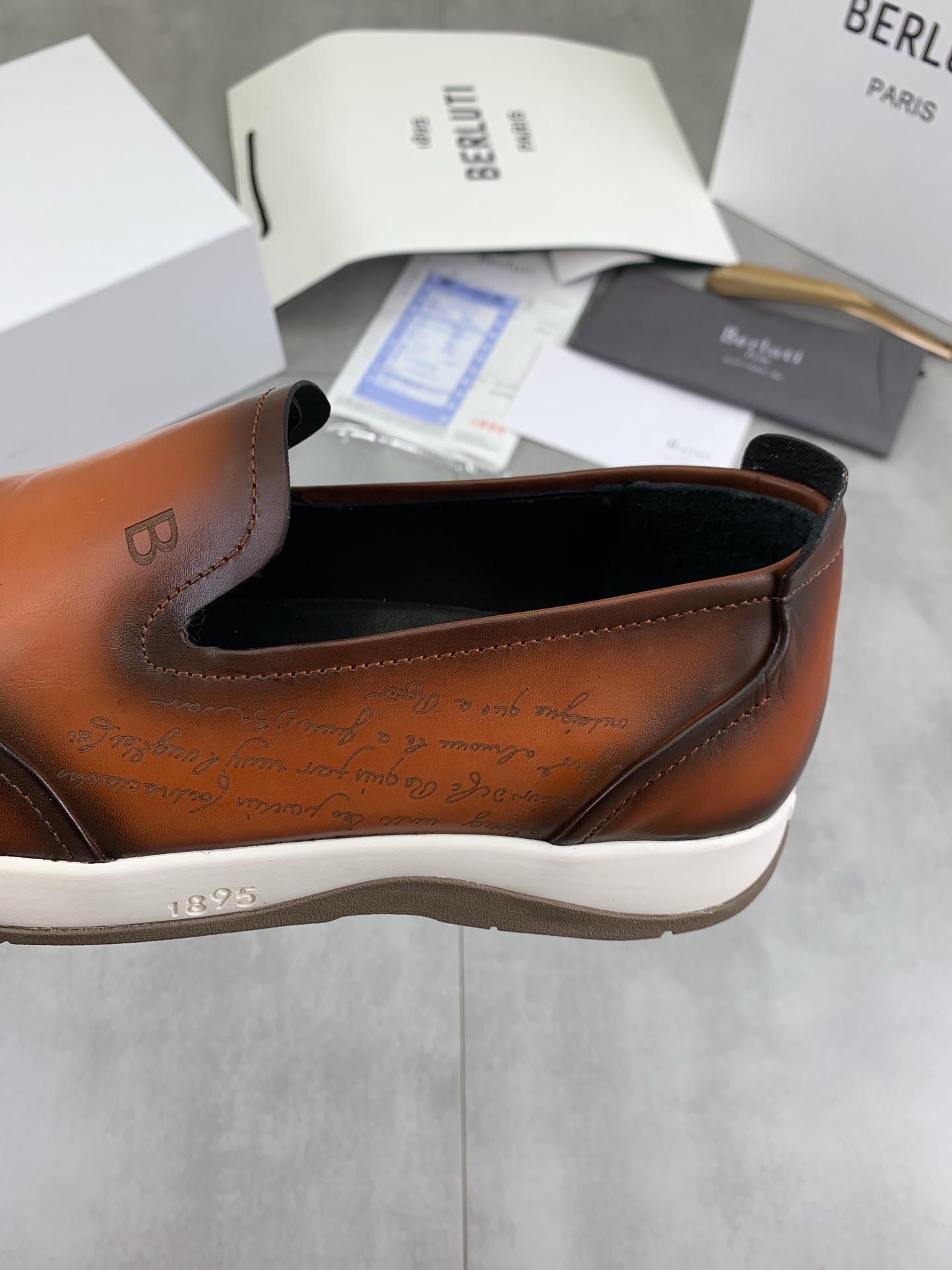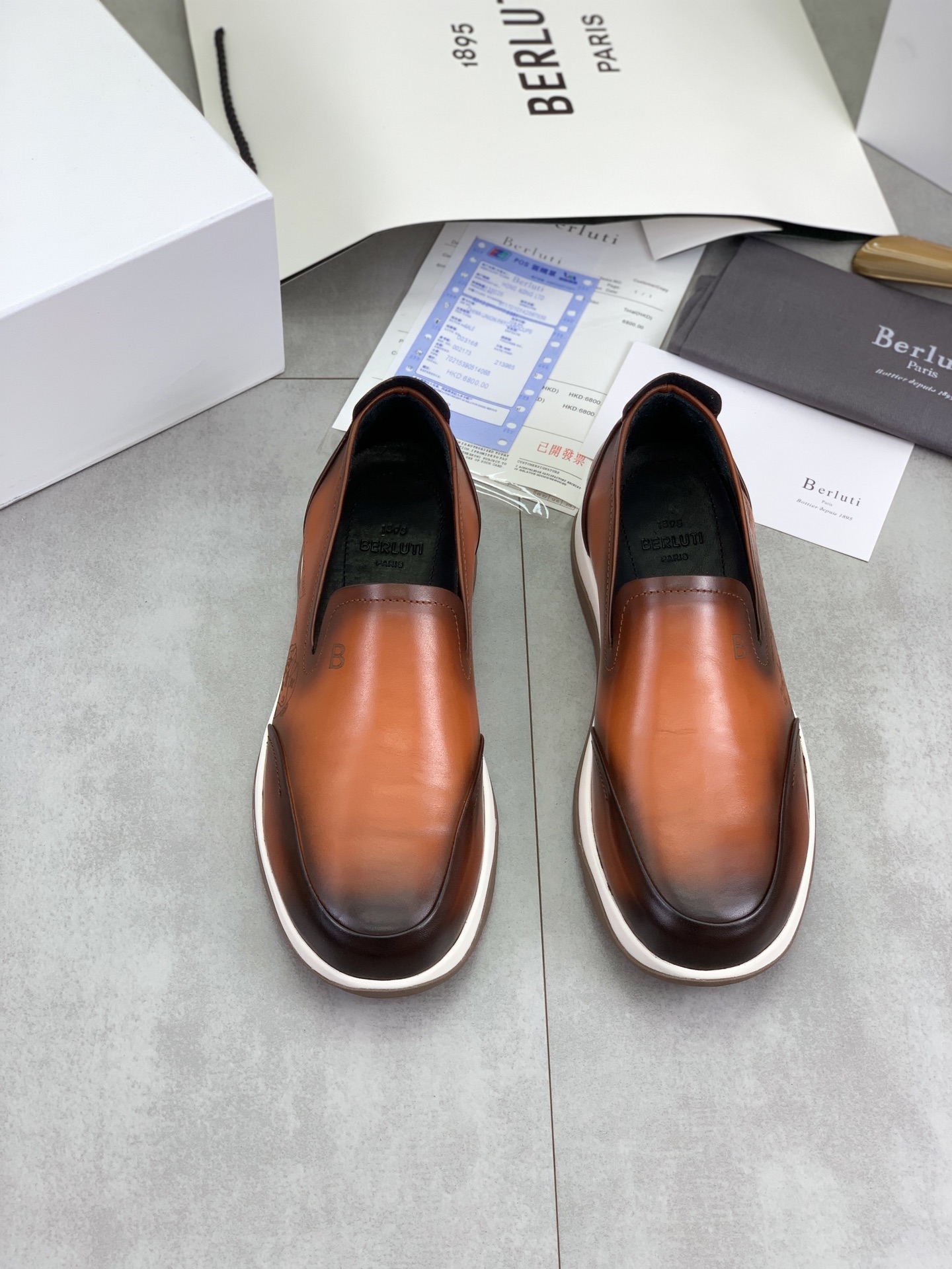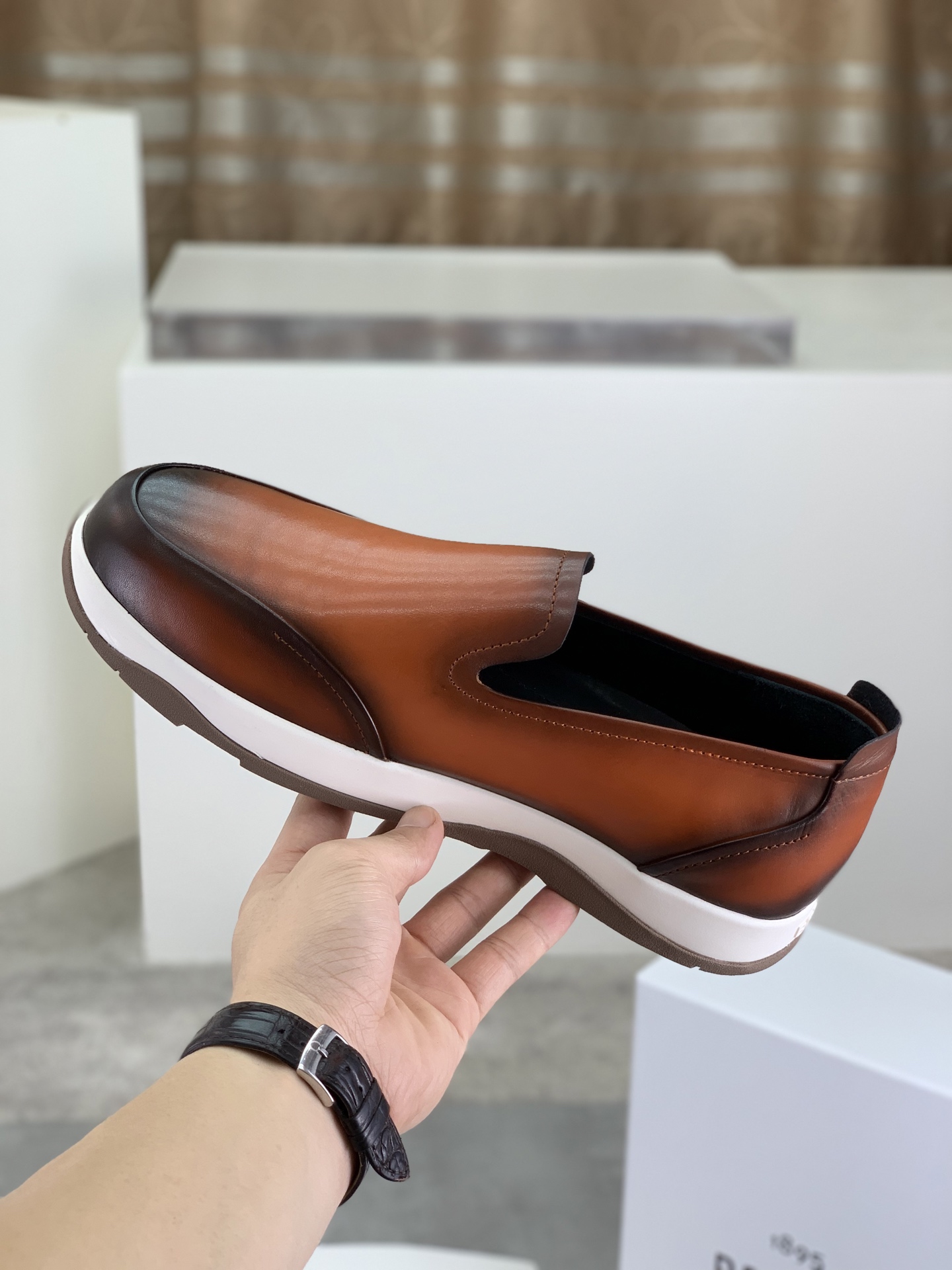 这款鞋子是AAAAA 1:1 质量 (非常棒). 使用了和原版一模一样的材料. 商标部分也保持了和Berluti一样. 图片拍摄是实物鞋子拍摄, 您所收到的实物保证和我们图片一模一样.