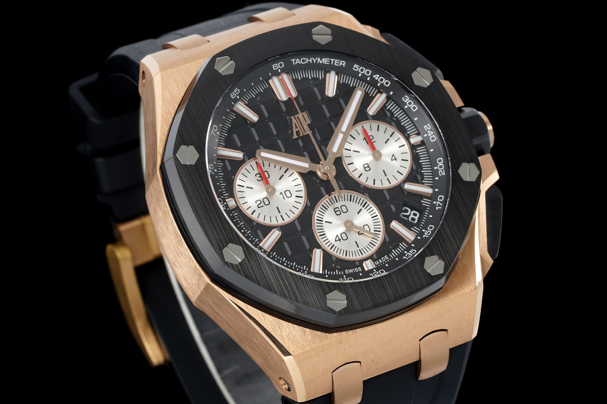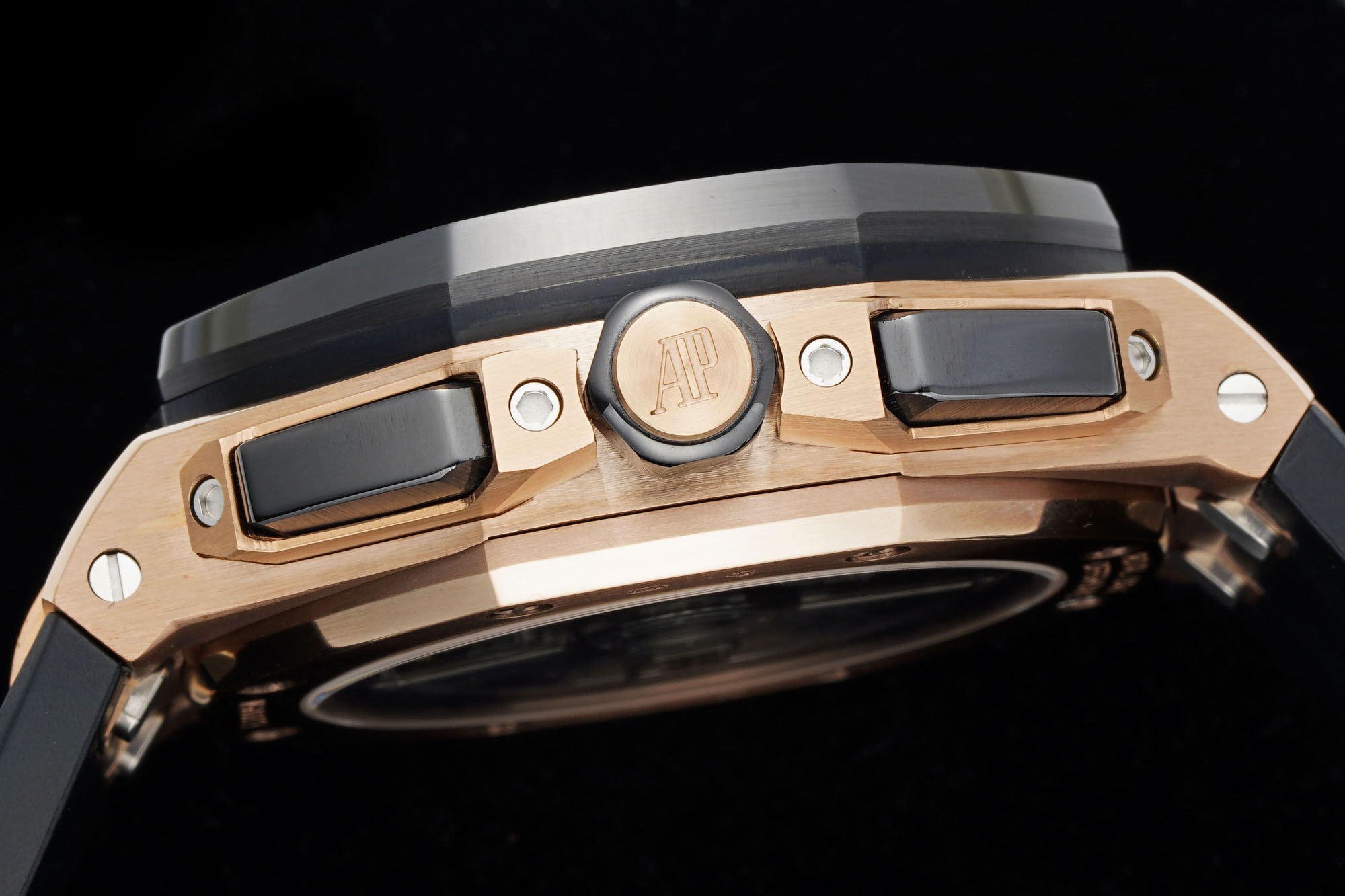 这款手表是AAAAA 1:1 质量 (非常棒). 使用了和原版一模一样的材料. 商标部分也保持了和爱彼/Audemars Piguet一样. 图片拍摄是实物手表拍摄, 您所收到的实物保证和我们图片一模一样.