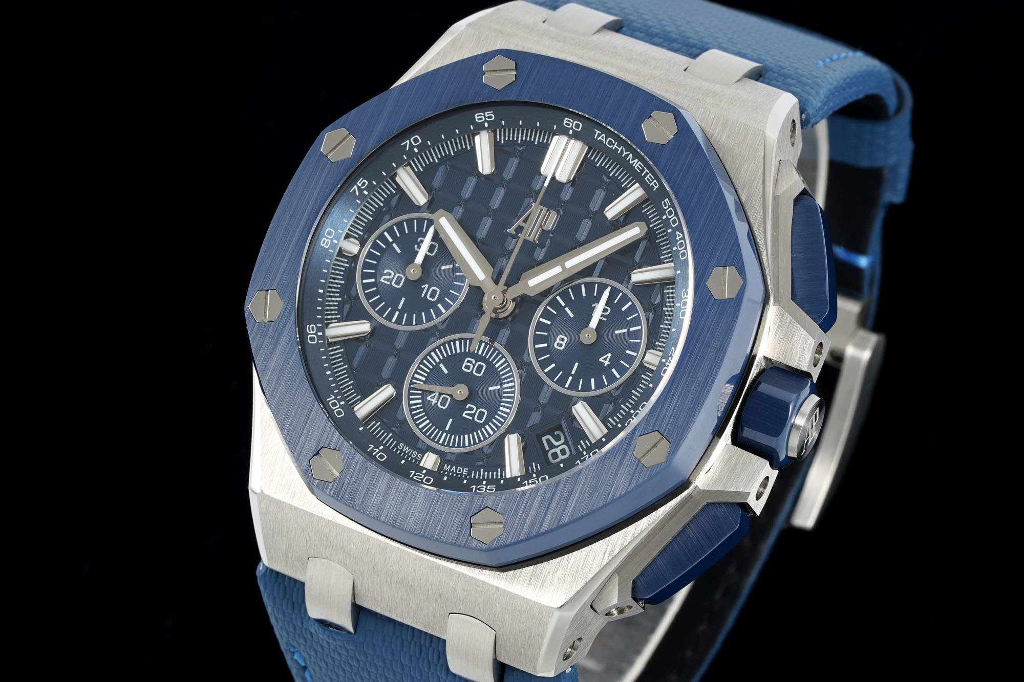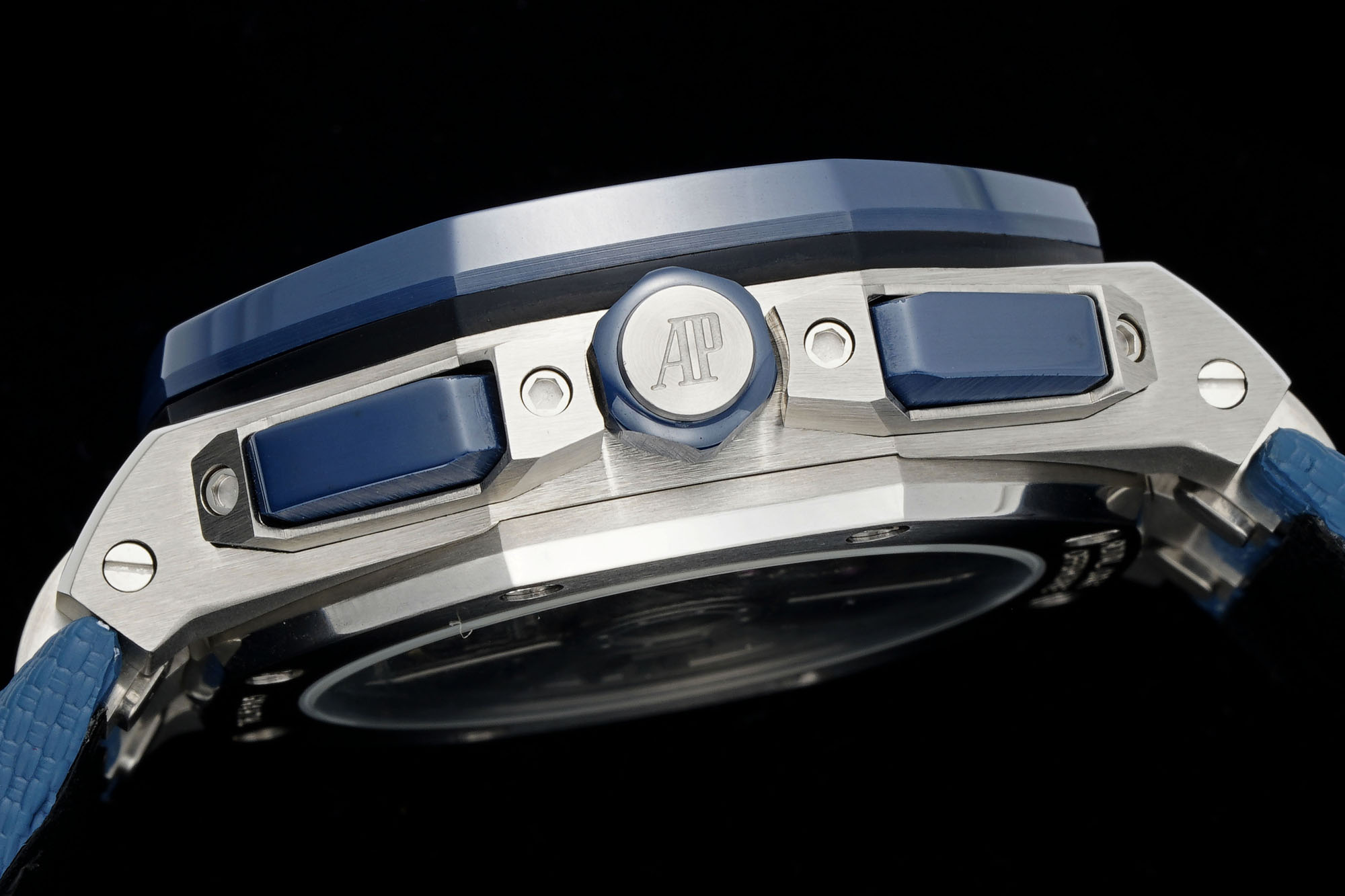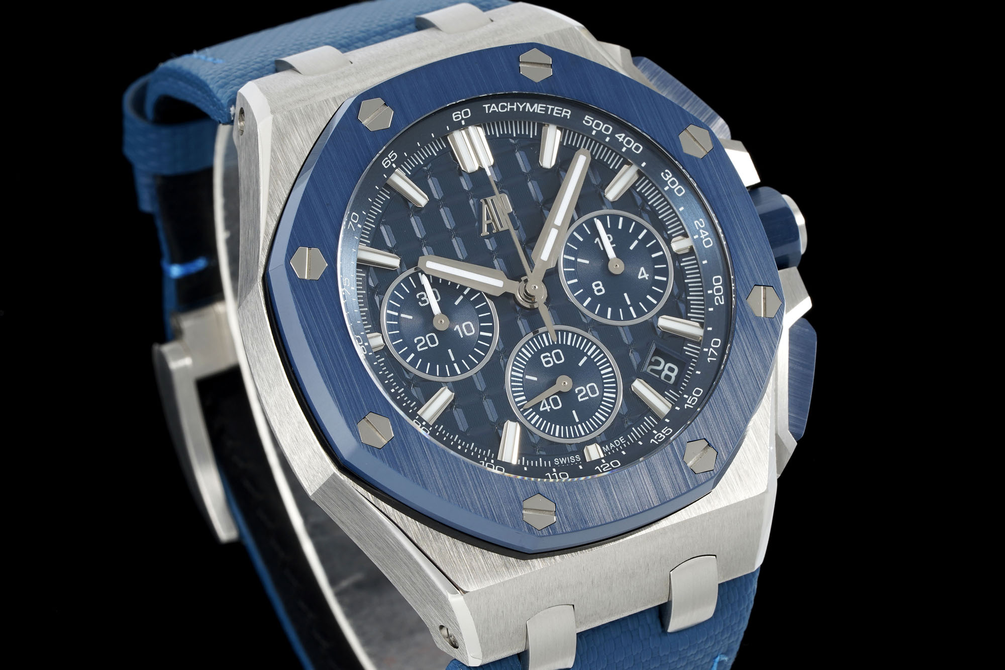 这款手表是AAAAA 1:1 质量 (非常棒). 使用了和原版一模一样的材料. 商标部分也保持了和爱彼/Audemars Piguet一样. 图片拍摄是实物手表拍摄, 您所收到的实物保证和我们图片一模一样.