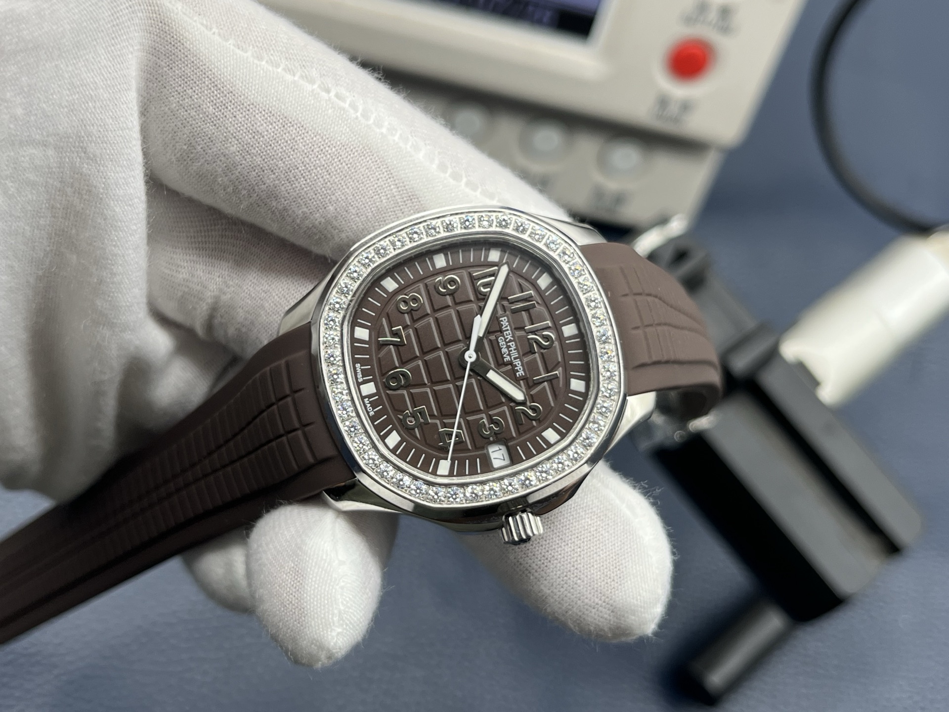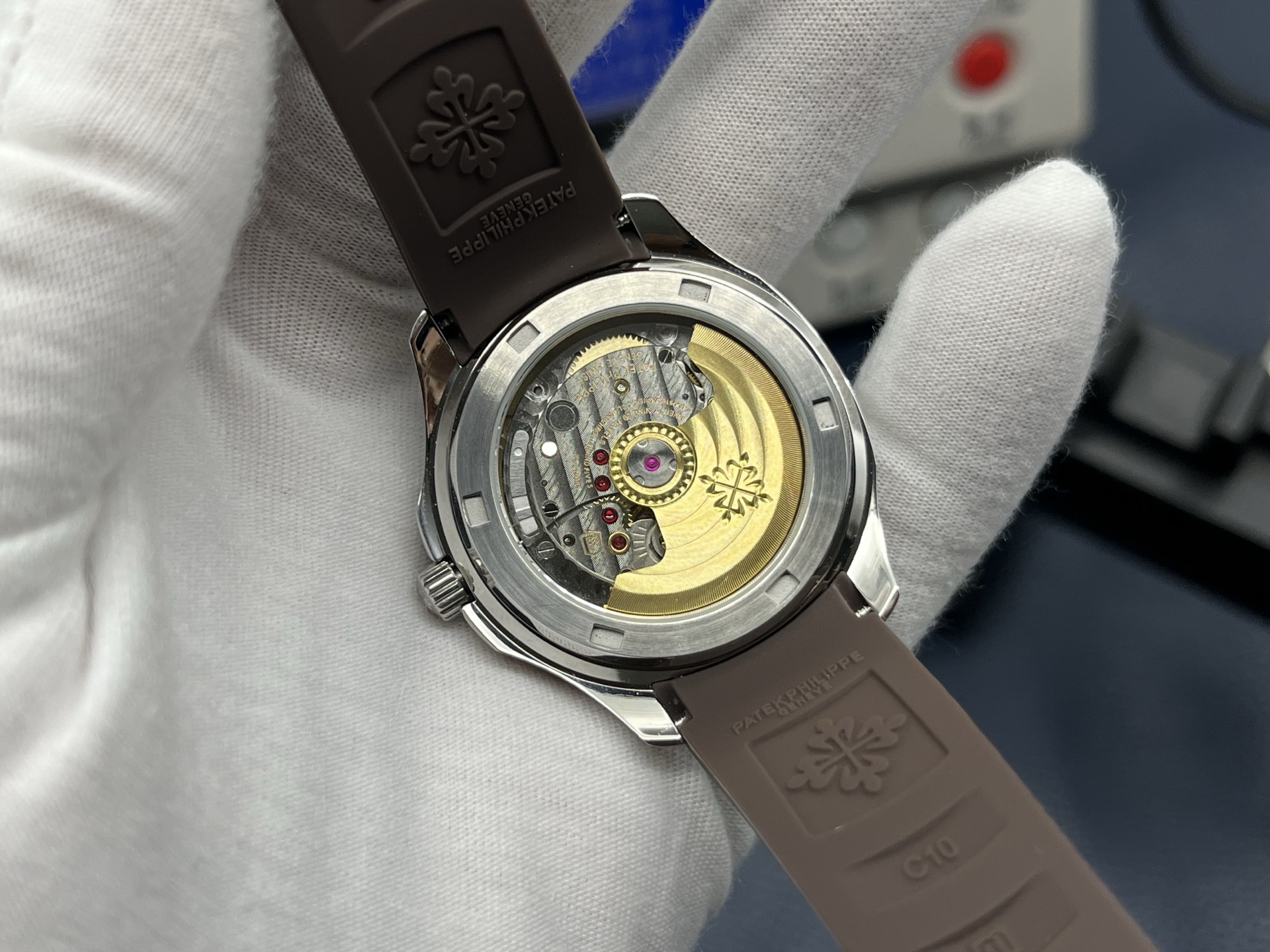 这款手表是AAAAA 1:1 质量 (非常棒). 使用了和原版一模一样的材料. 商标部分也保持了和百达翡丽/Patek Philippe一样. 图片拍摄是实物手表拍摄, 您所收到的实物保证和我们图片一模一样.