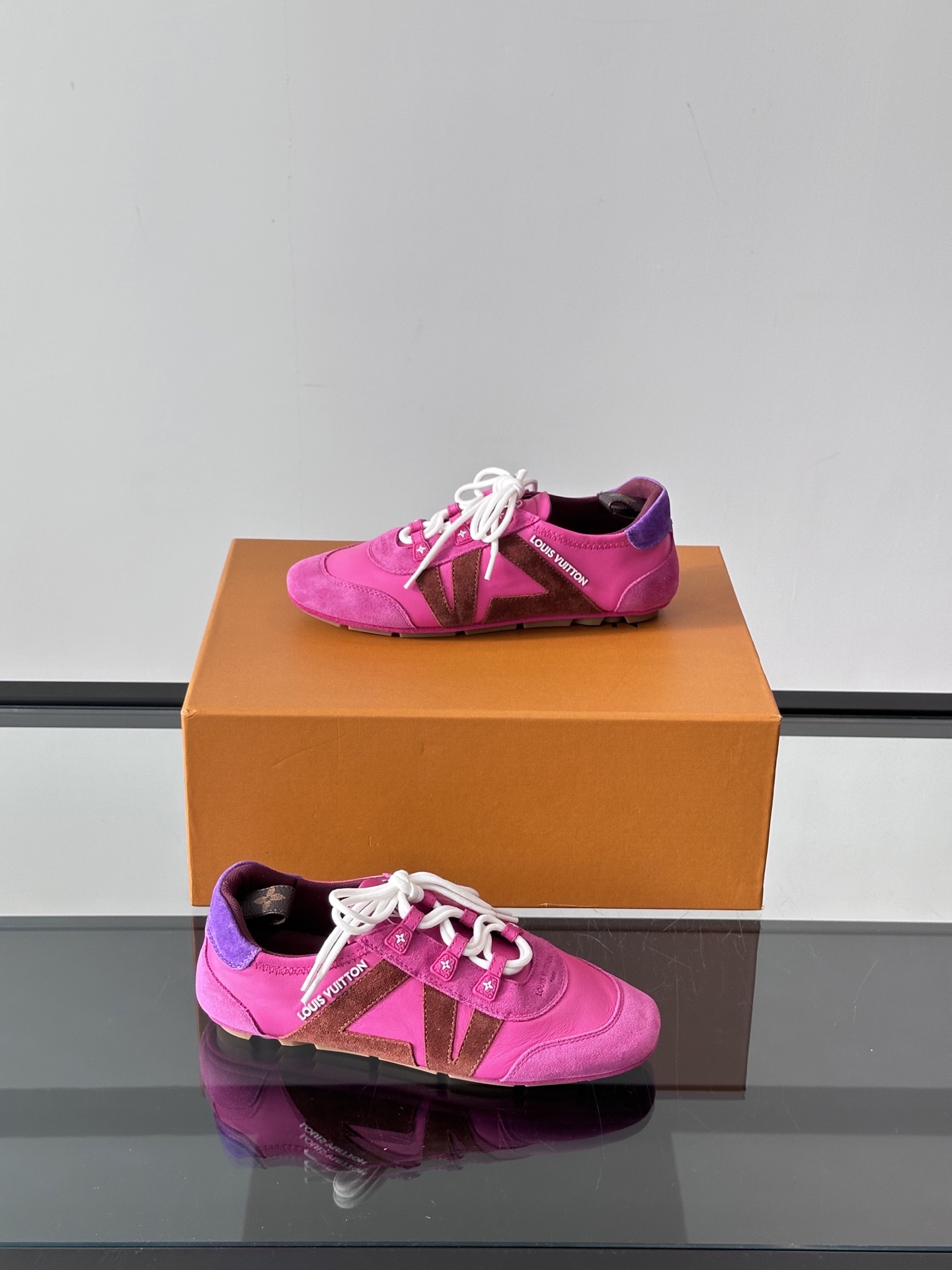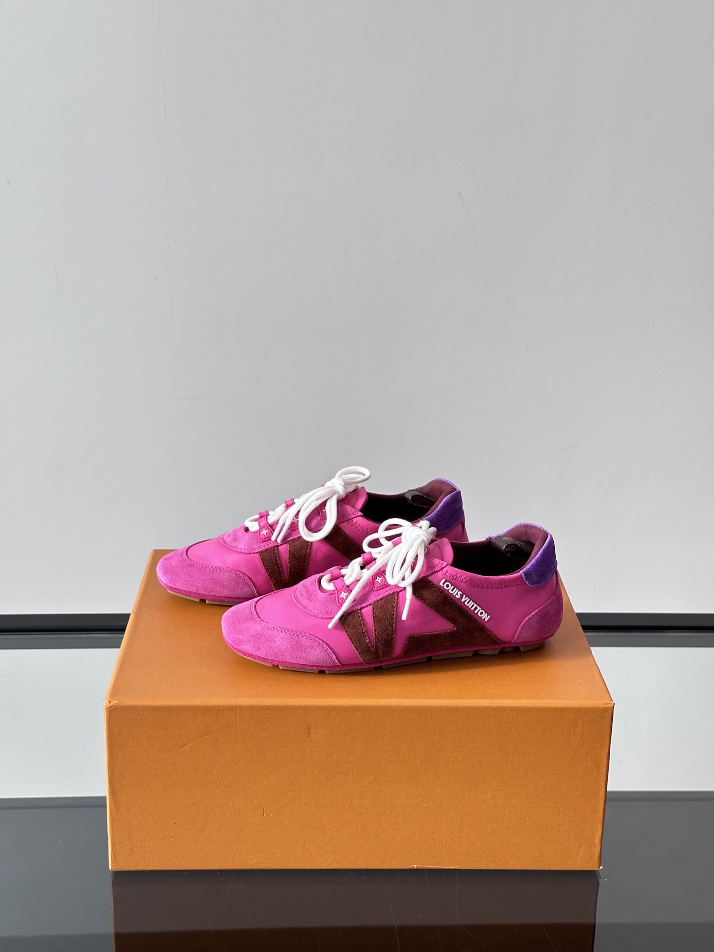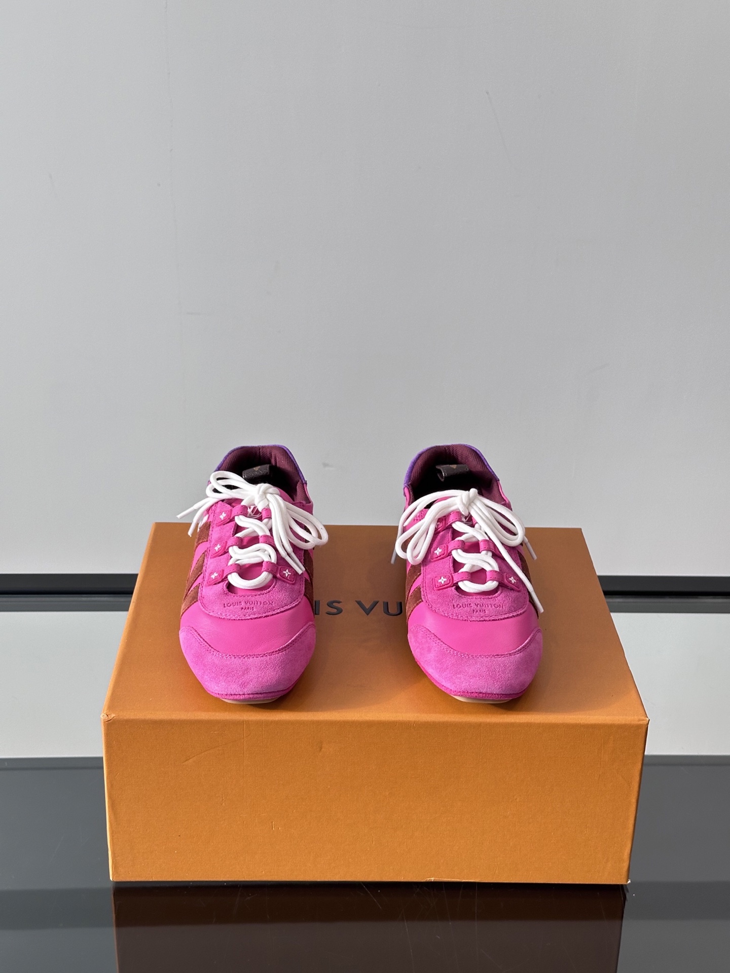 这款鞋子是AAAAA 1:1 质量 (非常棒). 使用了和原版一模一样的材料. 商标部分也保持了和路易威登/Louis Vuitton一样. 图片拍摄是实物鞋子拍摄, 您所收到的实物保证和我们图片一模一样.