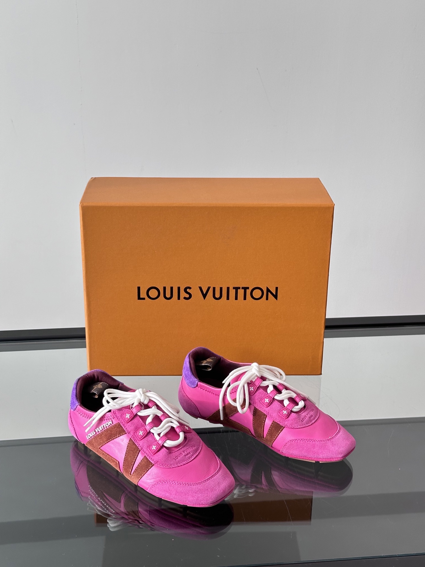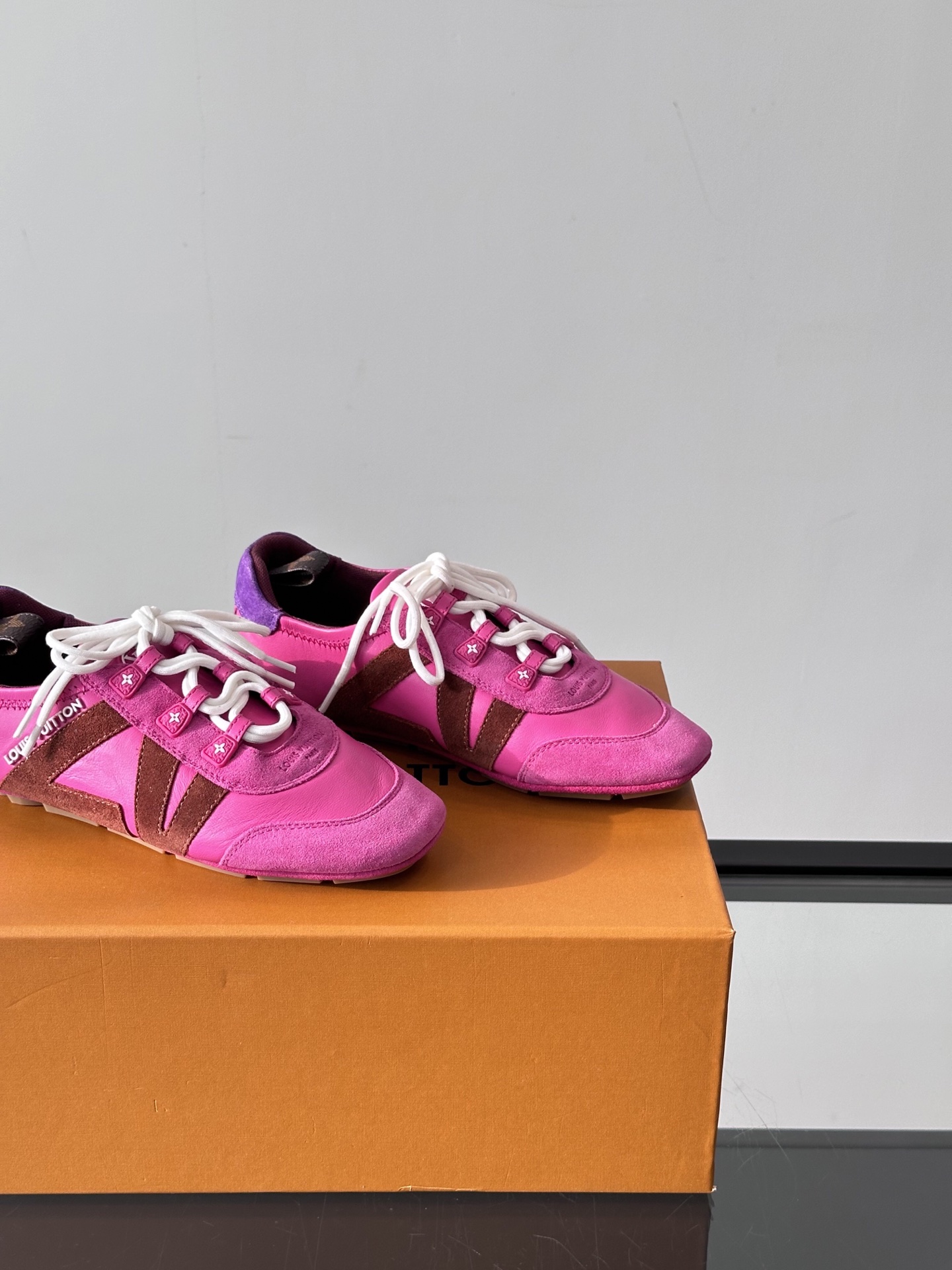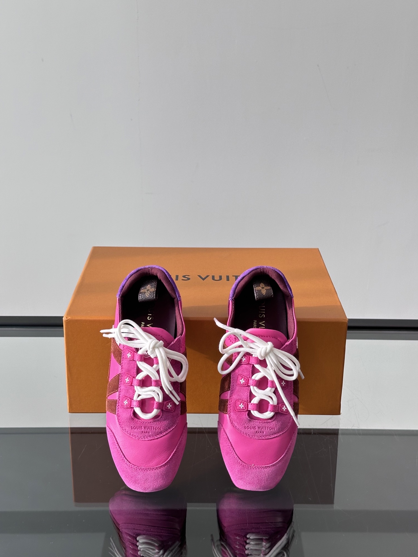 这款鞋子是AAAAA 1:1 质量 (非常棒). 使用了和原版一模一样的材料. 商标部分也保持了和路易威登/Louis Vuitton一样. 图片拍摄是实物鞋子拍摄, 您所收到的实物保证和我们图片一模一样.